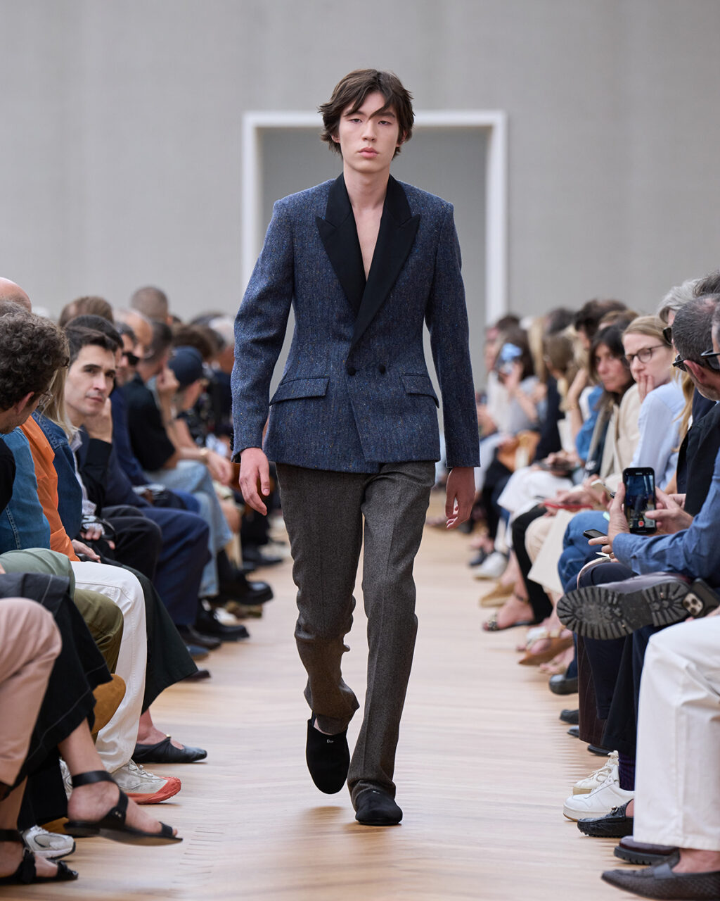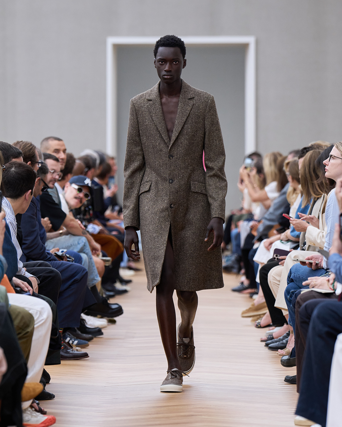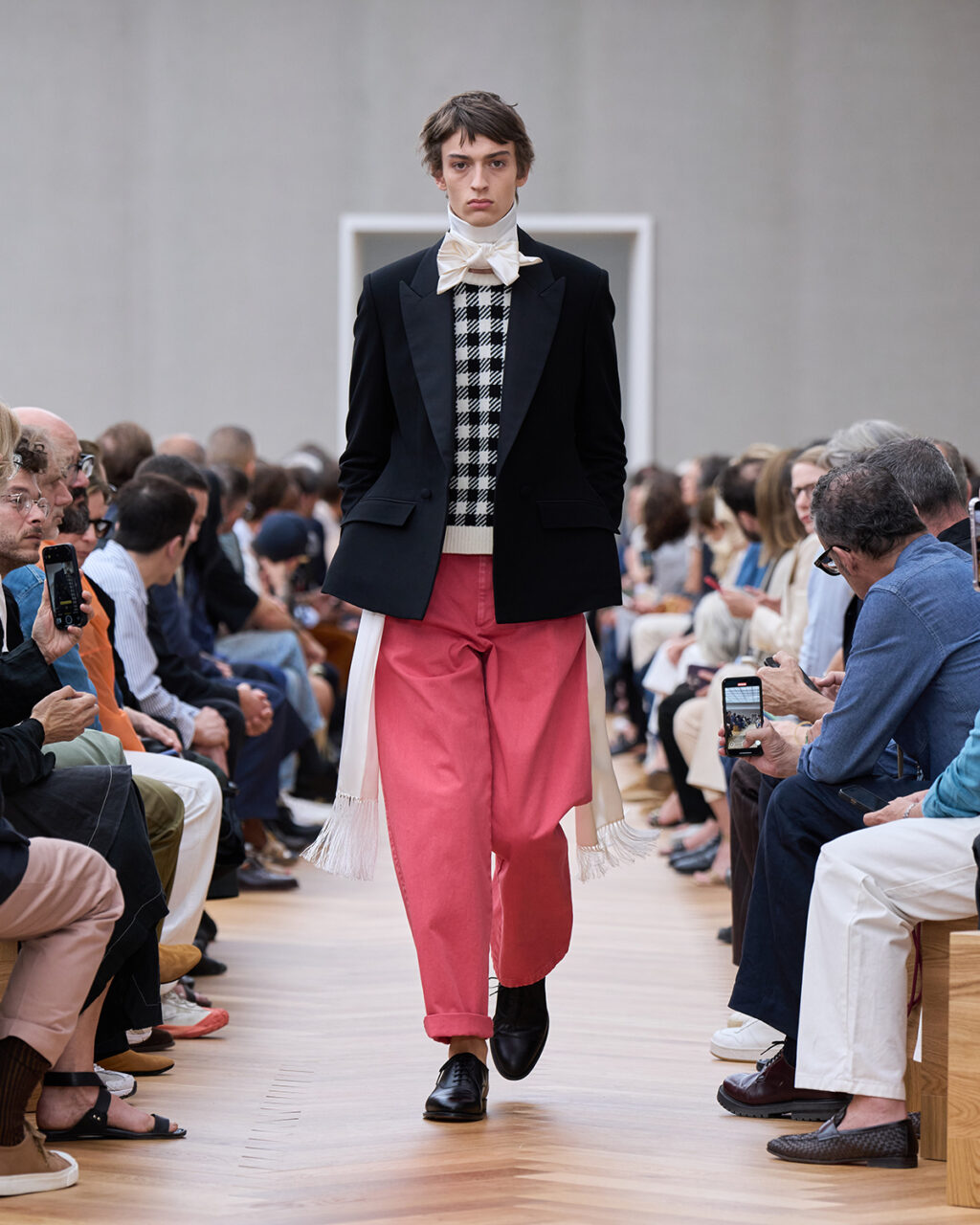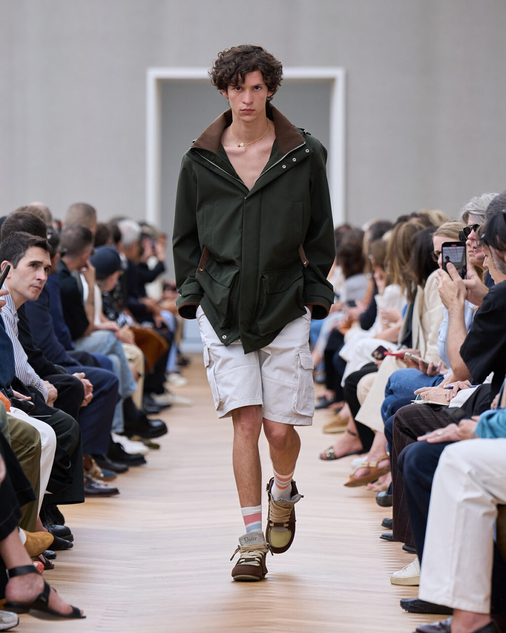着飾ることにおける喜びに立ち返り、再構築されたフォーマルでは、ツイードの「バー」ジャケットにタキシードのコードが加えられ、Christian Dior(クリスチャン・ディオール)が考案したクチュールのシルエットがカーゴショーツとして生まれ変わっている。
