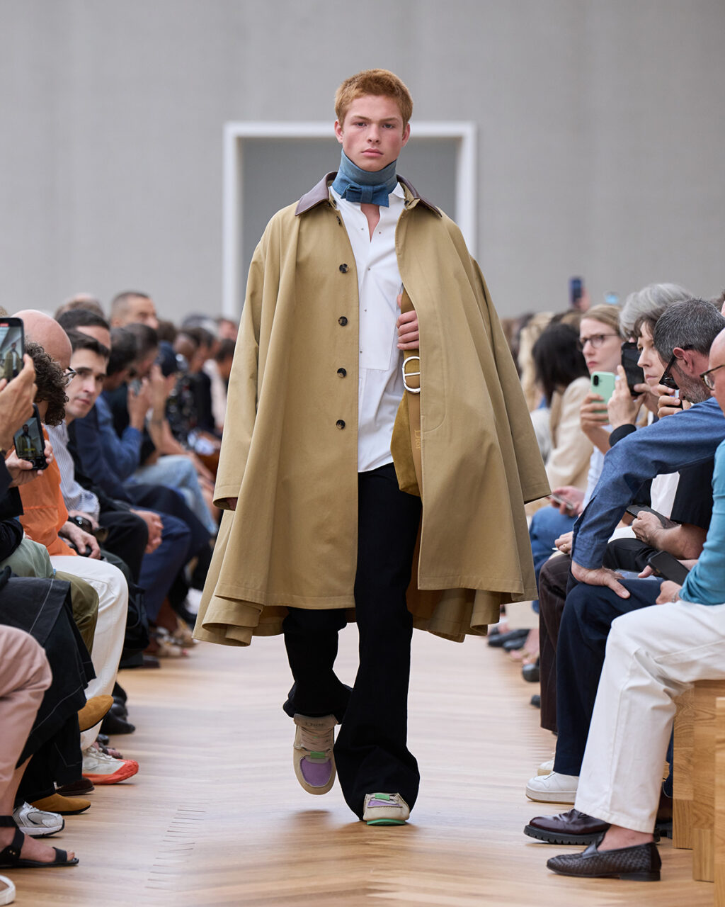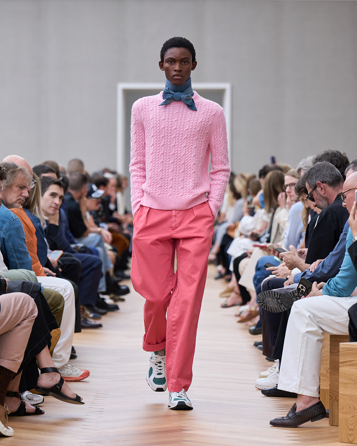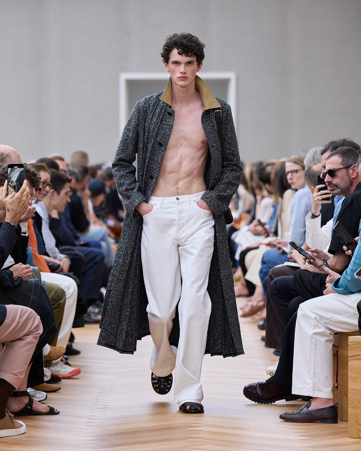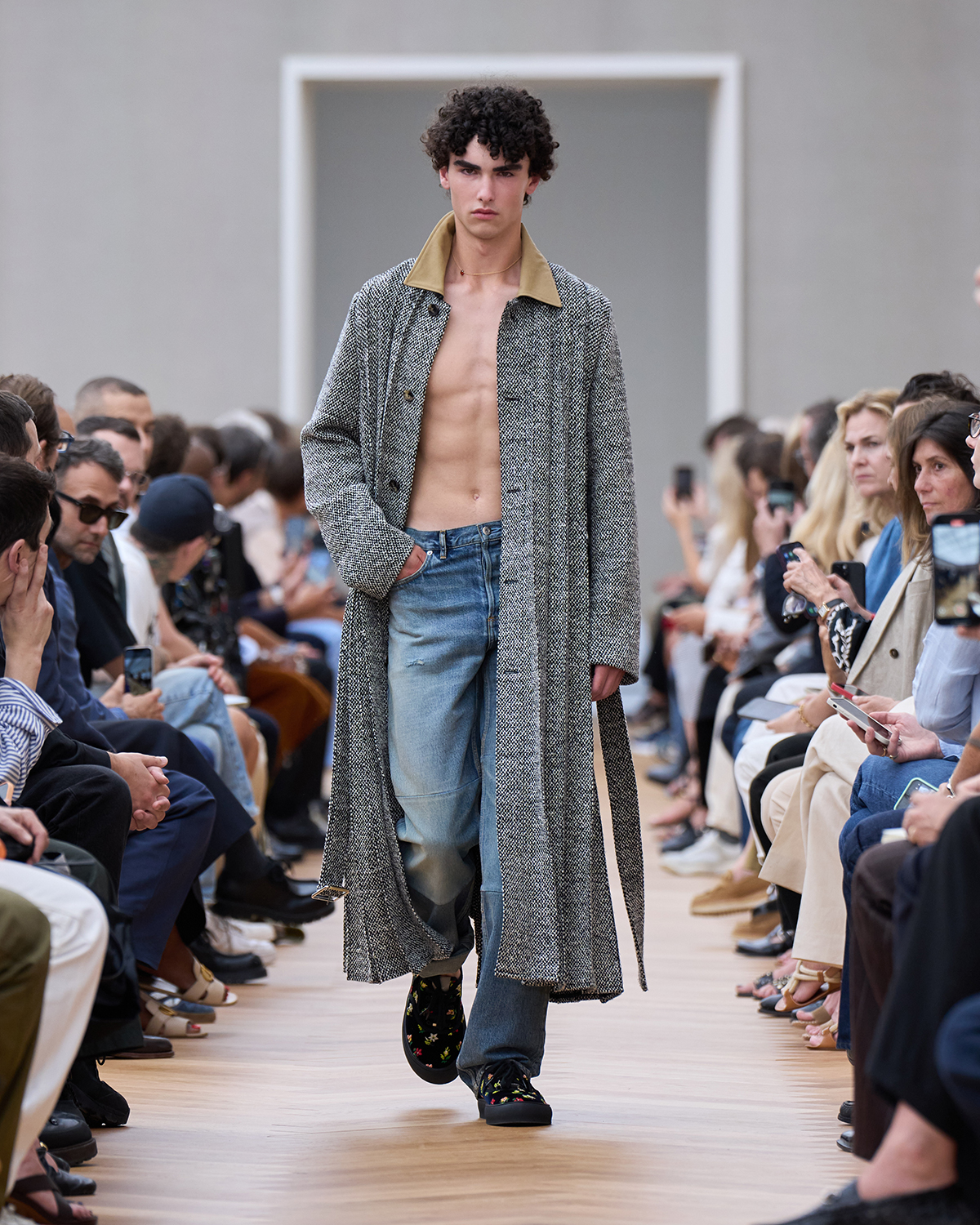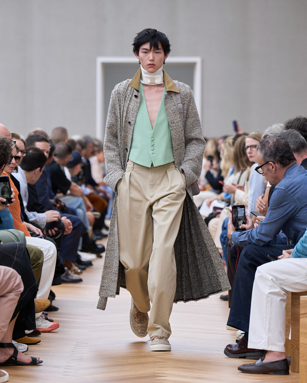 着飾ることにおける喜びに立ち返り、再構築されたフォーマルでは、ツイードの「バー」ジャケットにタキシードのコードが加えられ、Christian Dior(クリスチャン・ディオール)が考案したクチュールのシルエットがカーゴショーツとして生まれ変わっている。