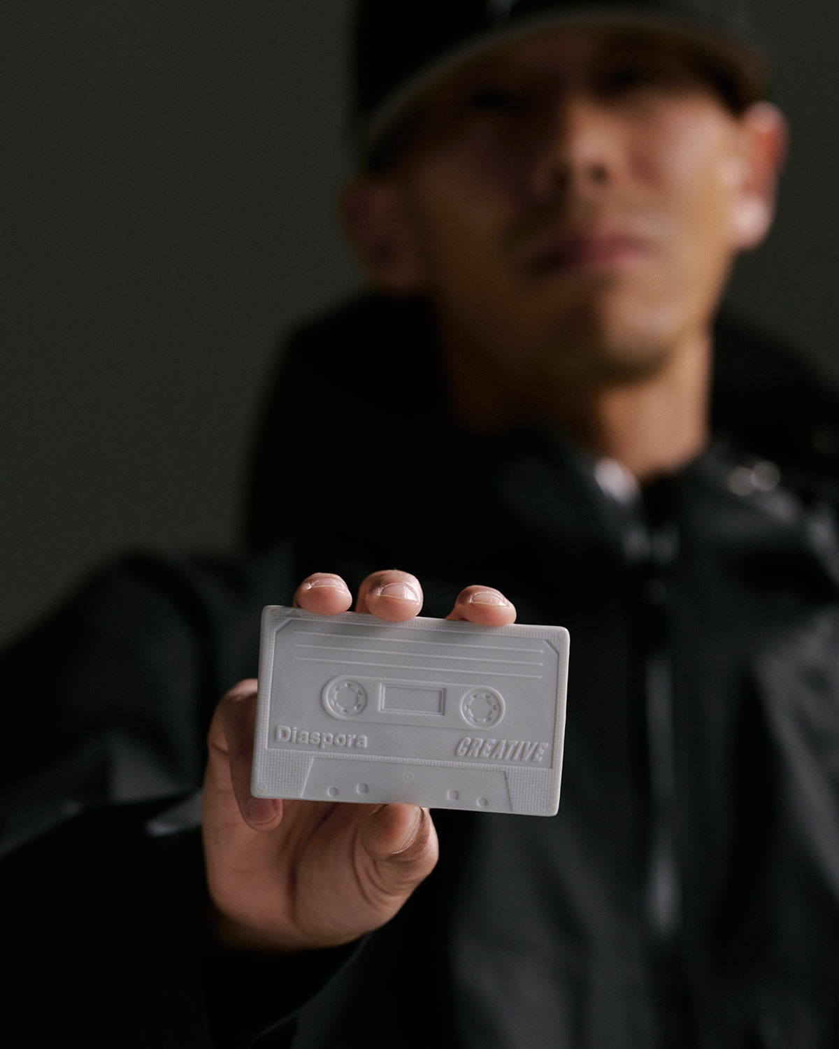 Diaspora skateboardsのルーツでもある信州の伝統⼯芸・木曽漆器(漆塗り) の模様をカモフラージュに見立てた3レイヤーのセットアップとパーカー、前回も好評を博した八幡屋礒五郎とのトリプルコラボレーションによる七味唐からし、カセットテープを象ったセラミックトレーなどが登場する。