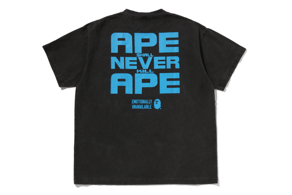 いずれも販売は、A BATHING APE®の各直営店およびオンラインストア、EMOTIONALLY UNAVALABLEの正規取扱店にて実施予定。
