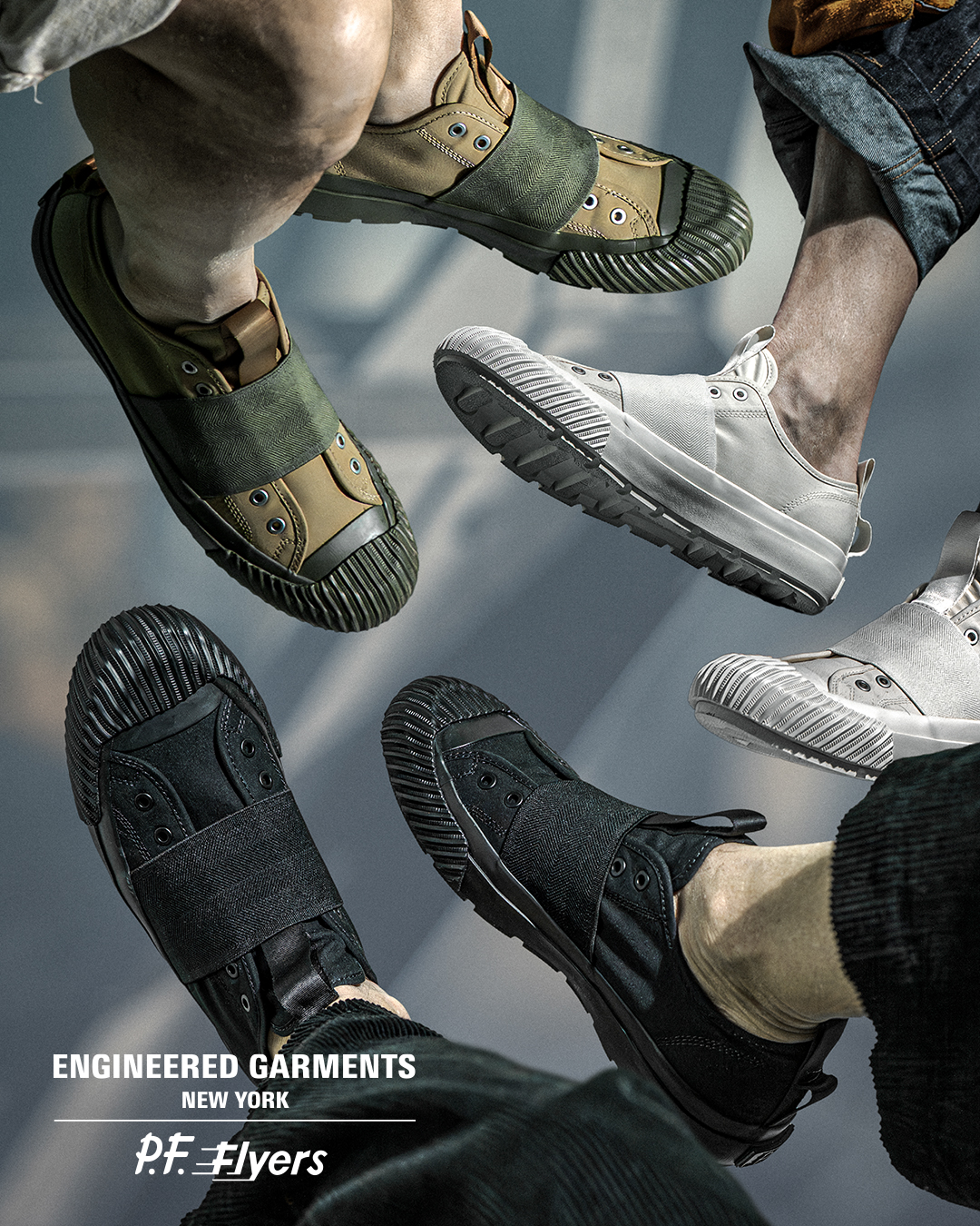 ENGINEERED GARMENTS(エンジニアド ガーメンツ)とPF Flyers(ピー・エフ・フライヤーズ)によるコラボレーションシューズが新たにリリースされた。