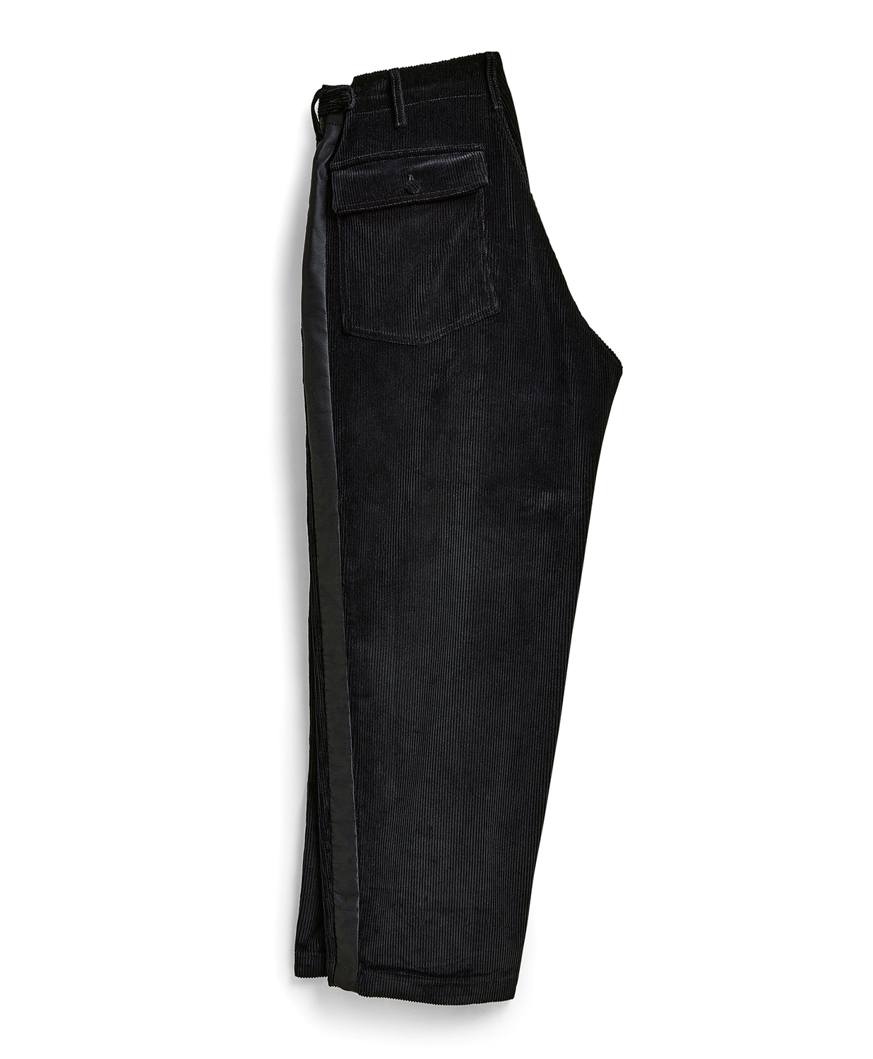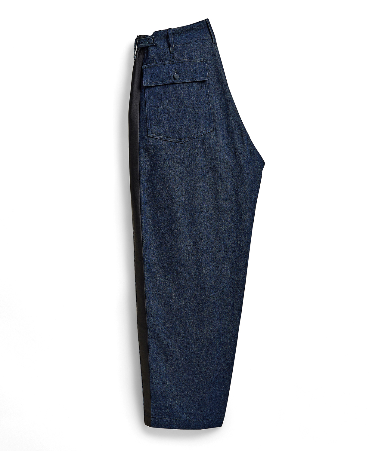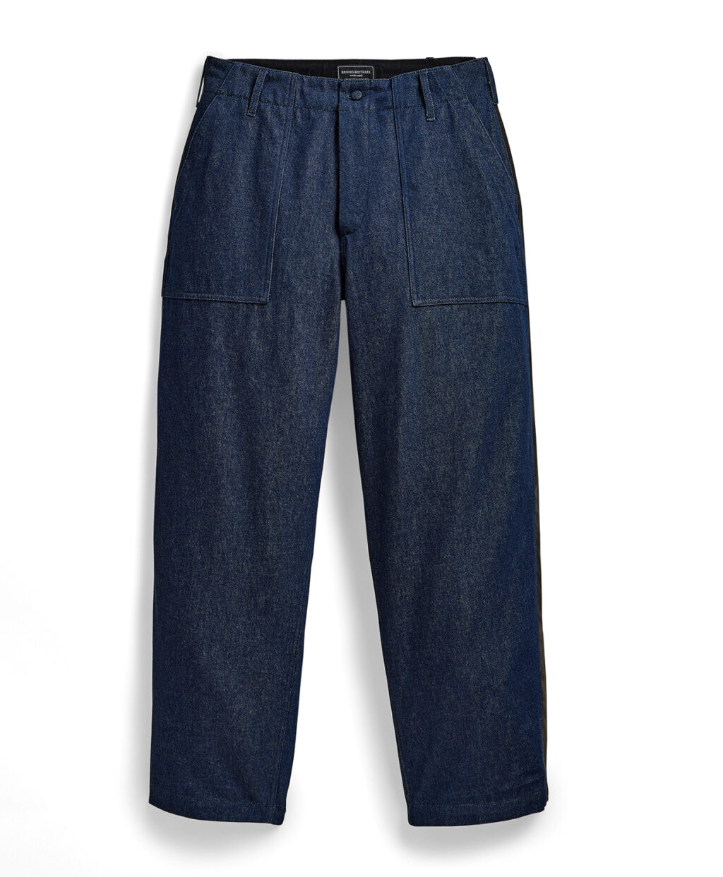 サテンのピークドラペルを配したオーバーサイズのタキシードジャケット、ENGINEERED GARMENTSのシグネチャーである『FATIGUE PANT』をベースとしたパンツ、計3種類のシャツなどが登場する。