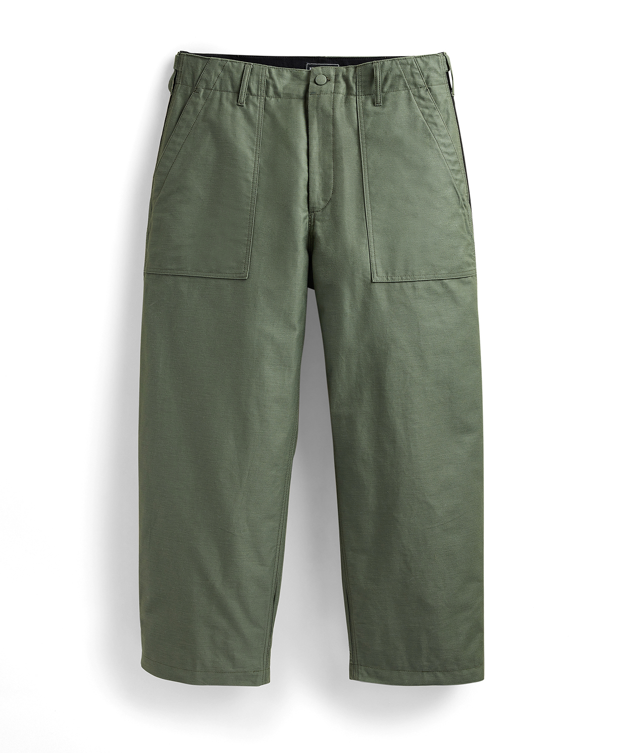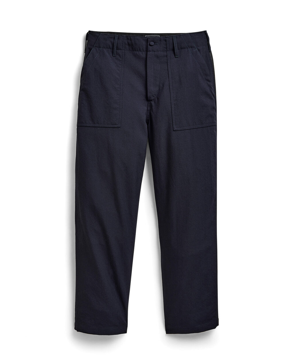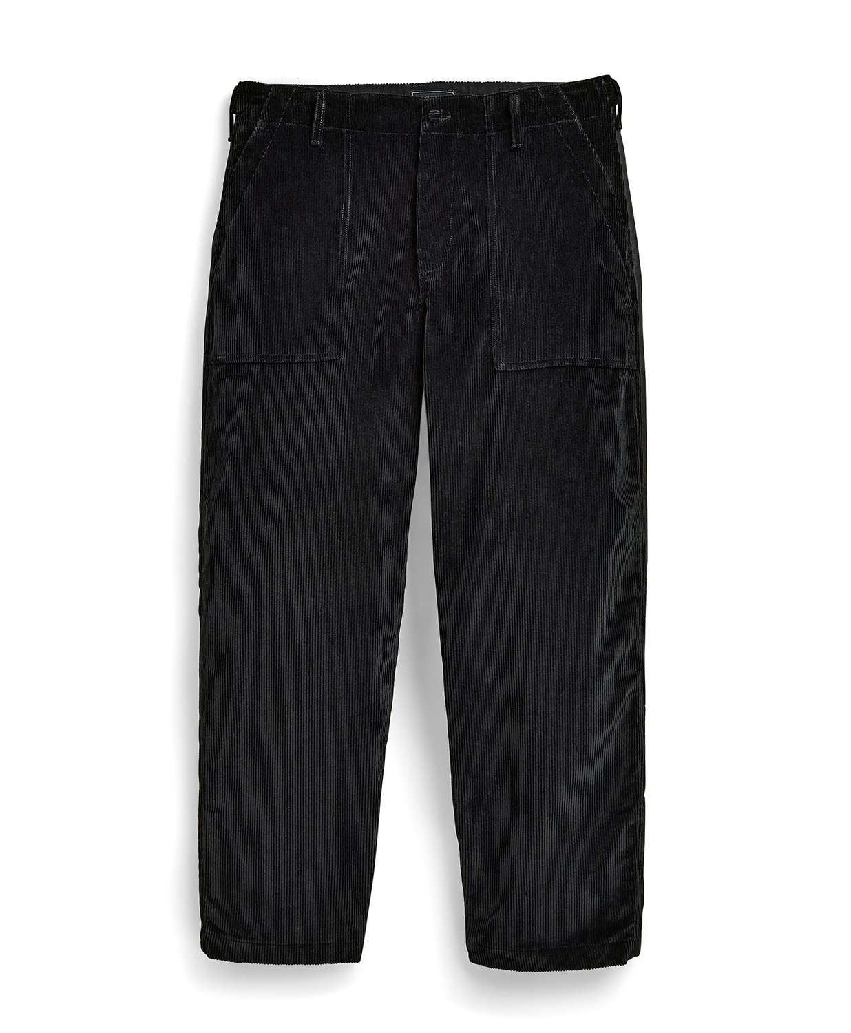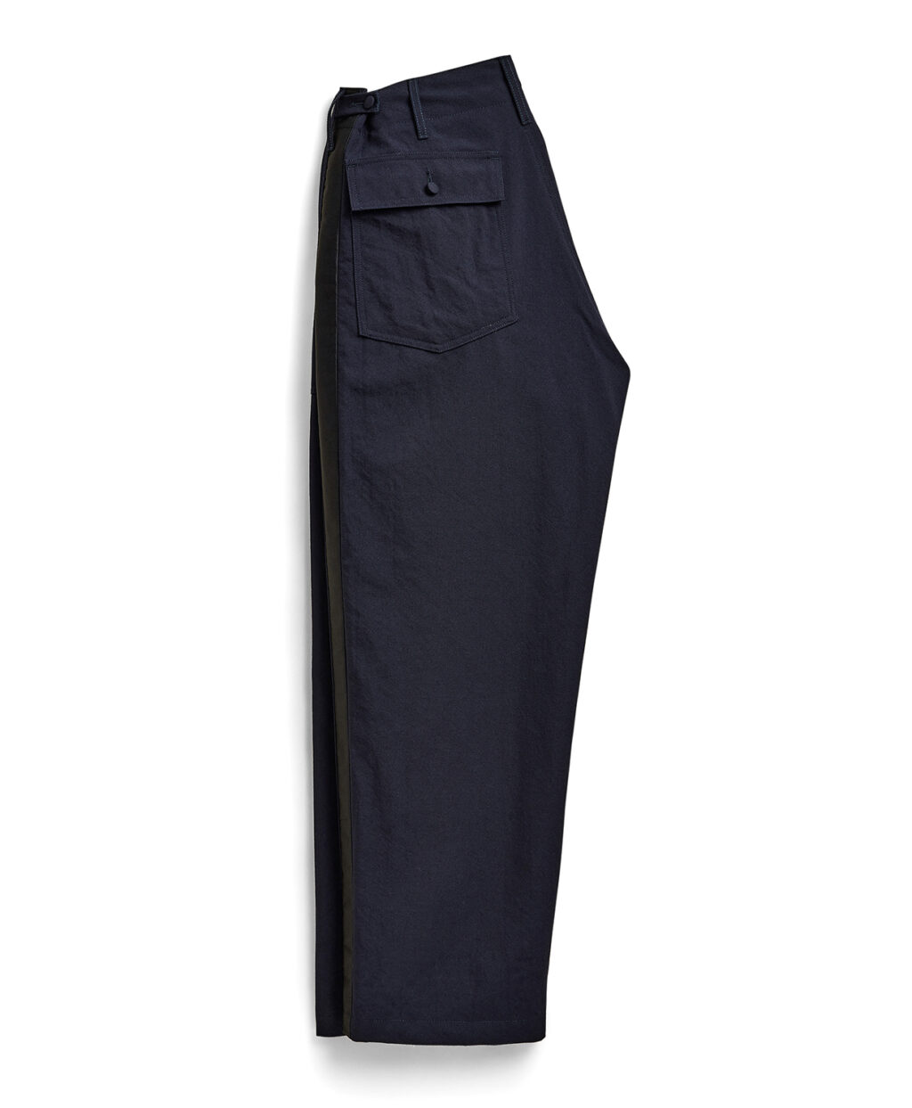 サテンのピークドラペルを配したオーバーサイズのタキシードジャケット、ENGINEERED GARMENTSのシグネチャーである『FATIGUE PANT』をベースとしたパンツ、計3種類のシャツなどが登場する。