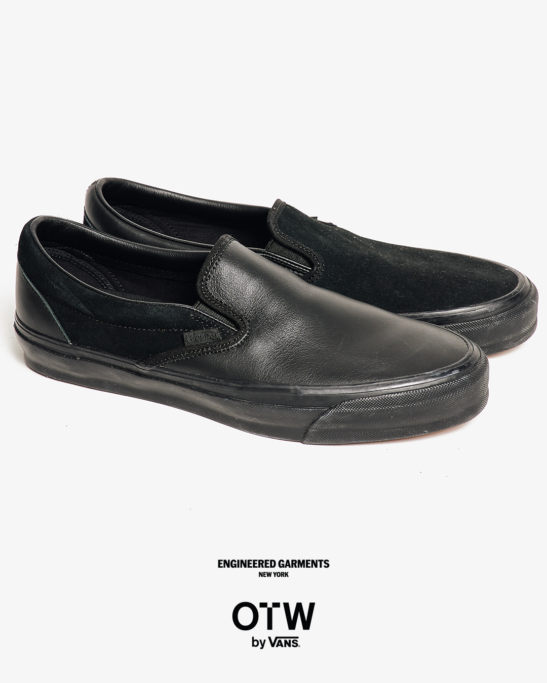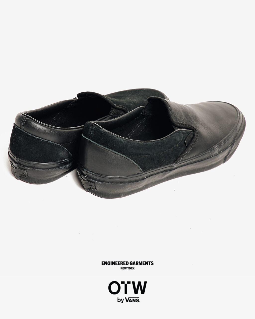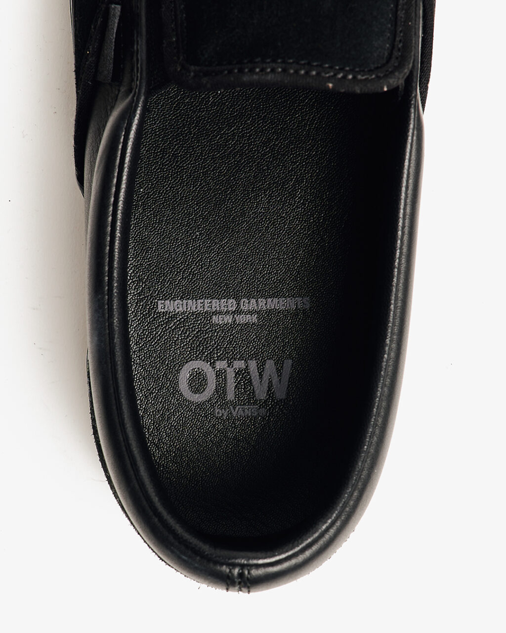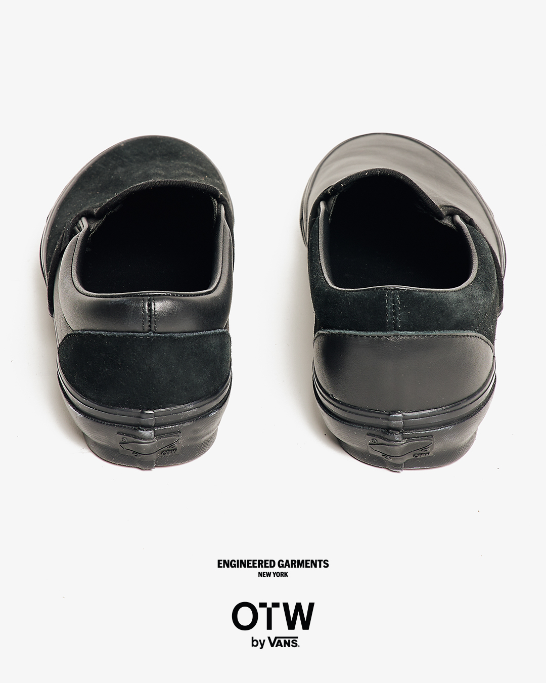 今回は、ブラックとホワイトのカラーに焦点を当て全体の色味を合わせつつ、織りラベルやヒールパッチなどの細部で、さりげないトーンの違いを表現。