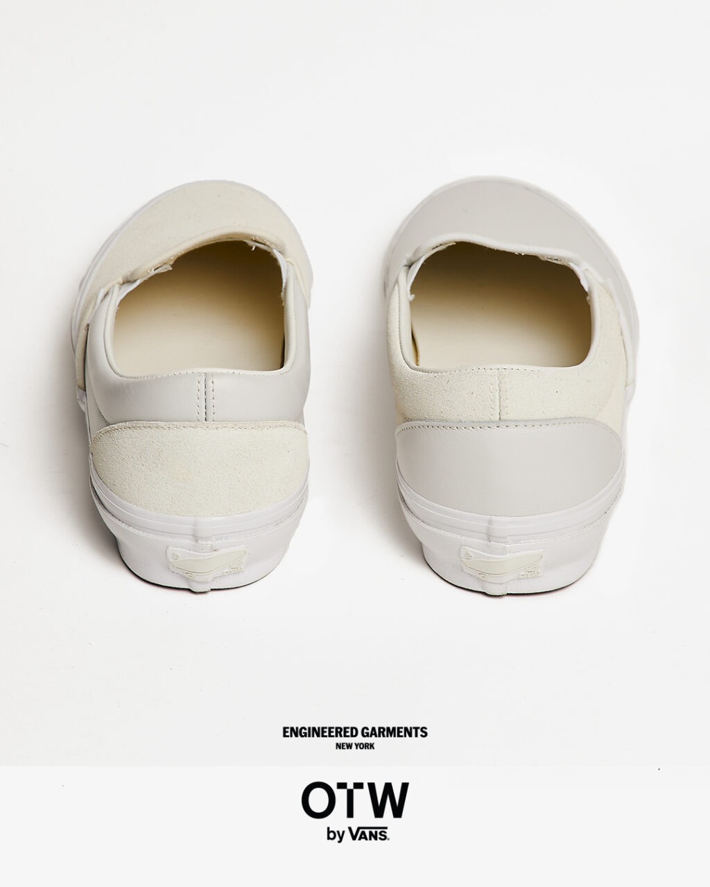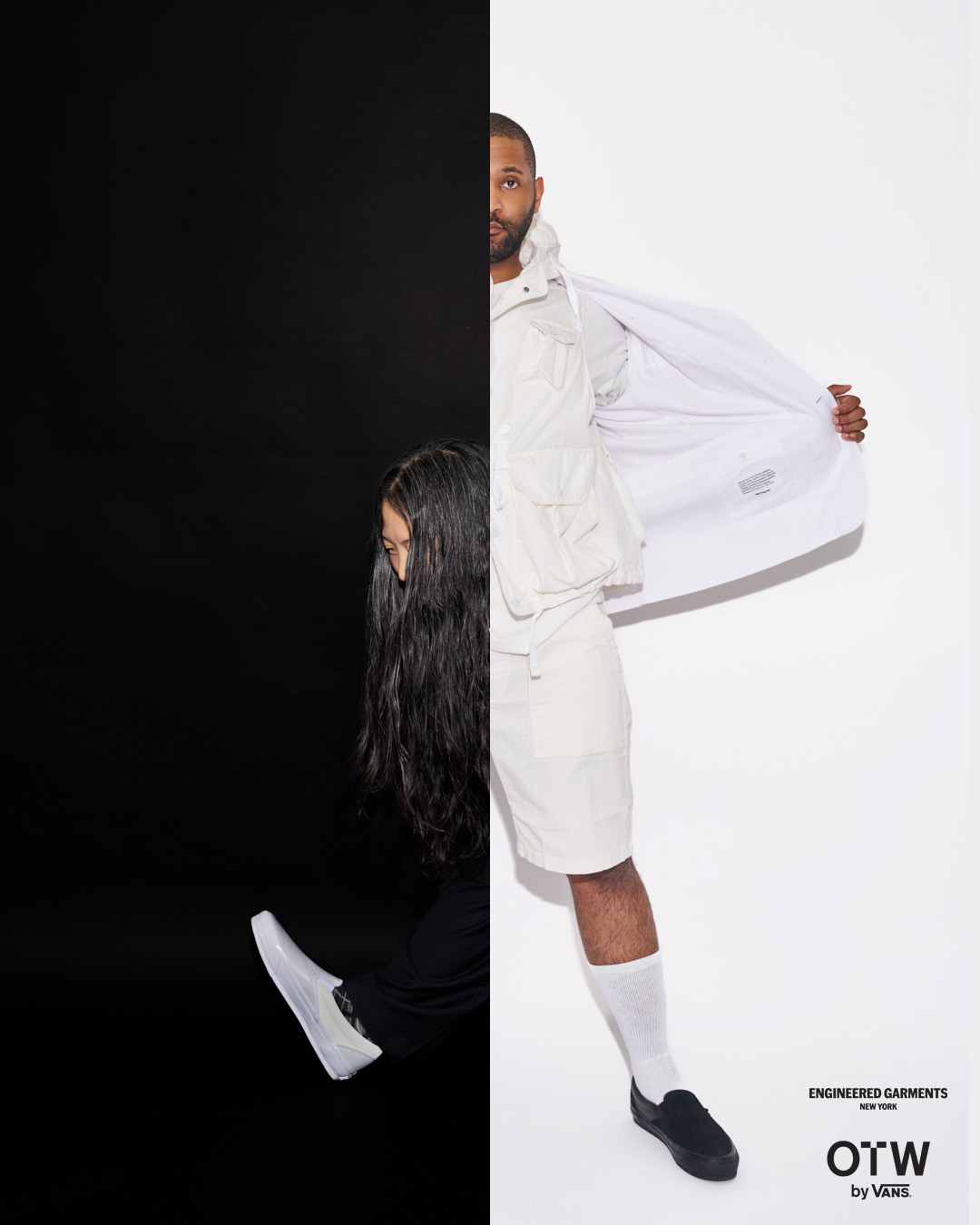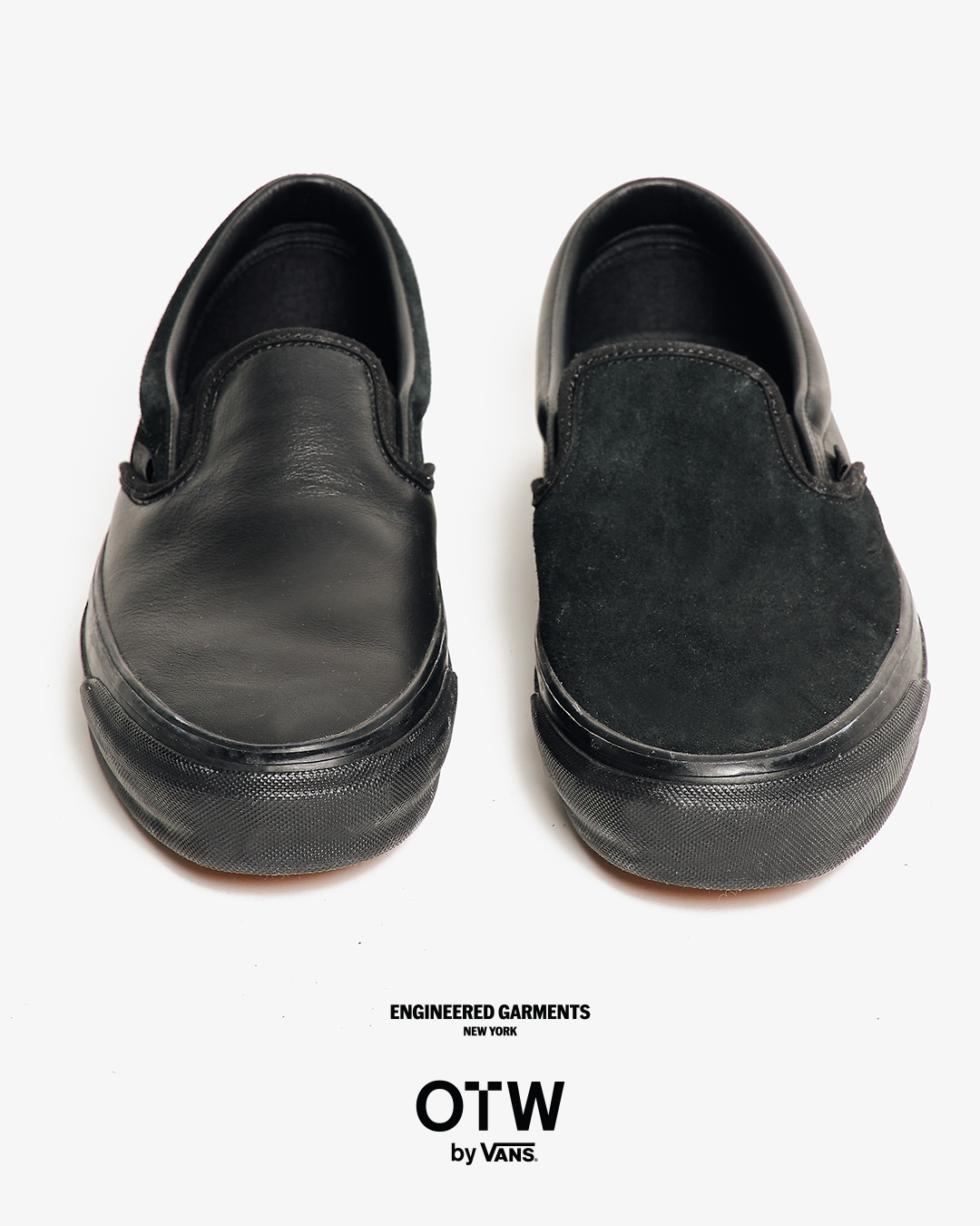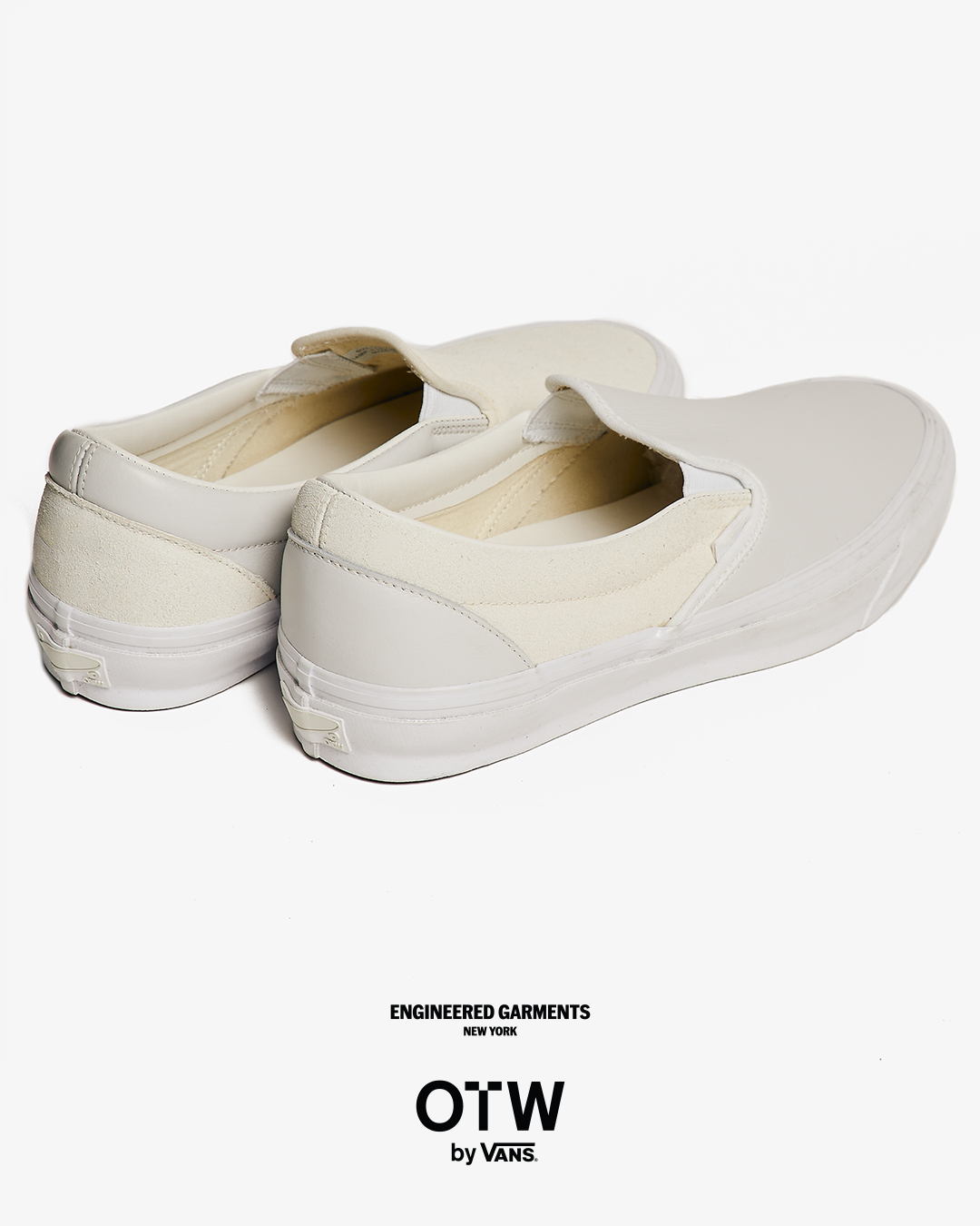 今回は、ブラックとホワイトのカラーに焦点を当て全体の色味を合わせつつ、織りラベルやヒールパッチなどの細部で、さりげないトーンの違いを表現。