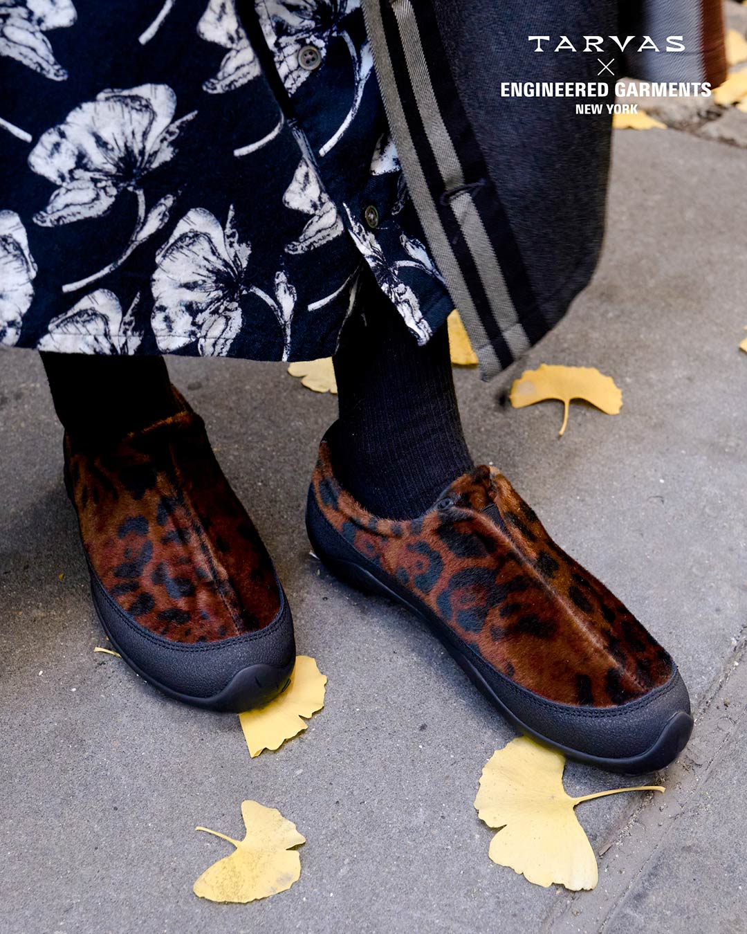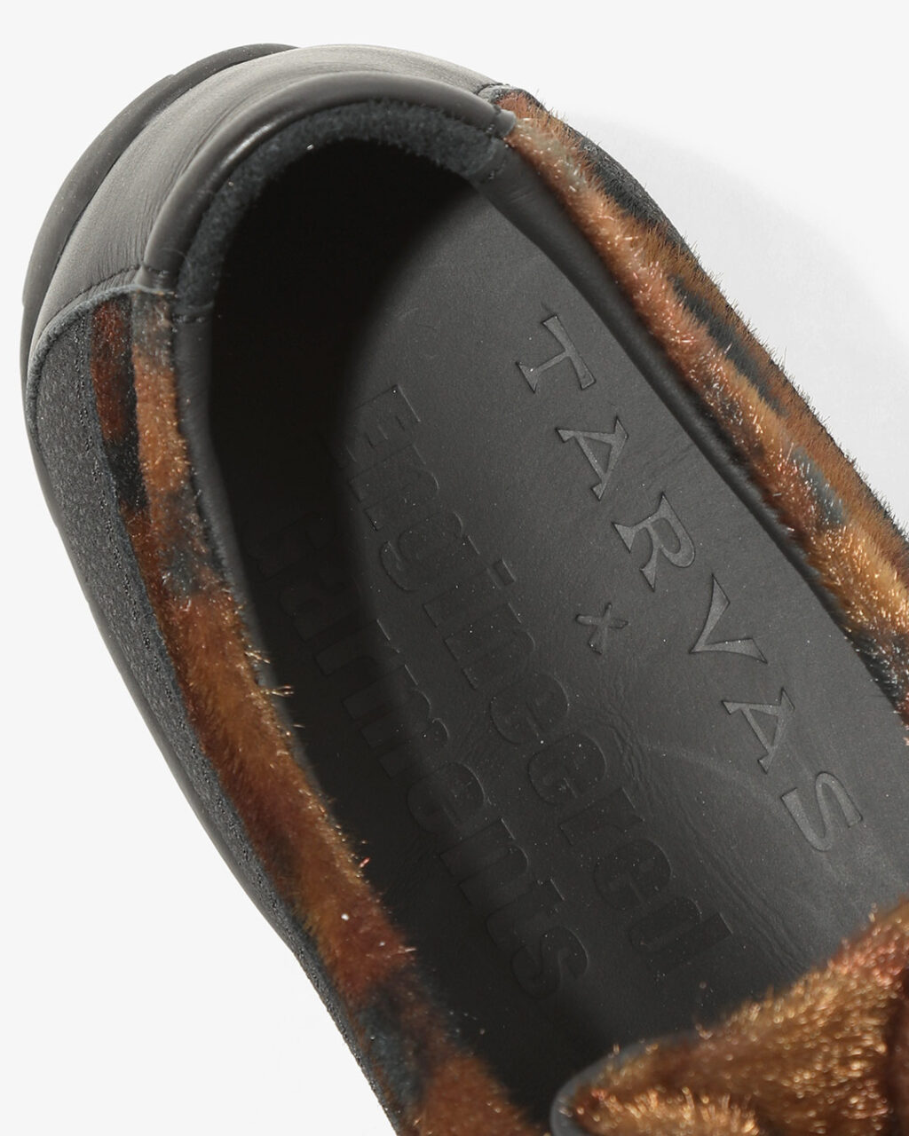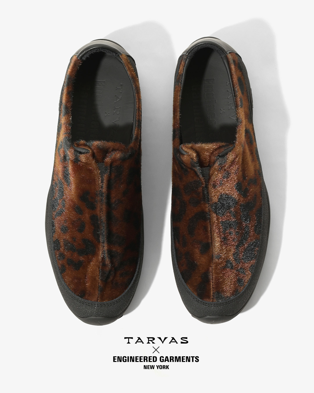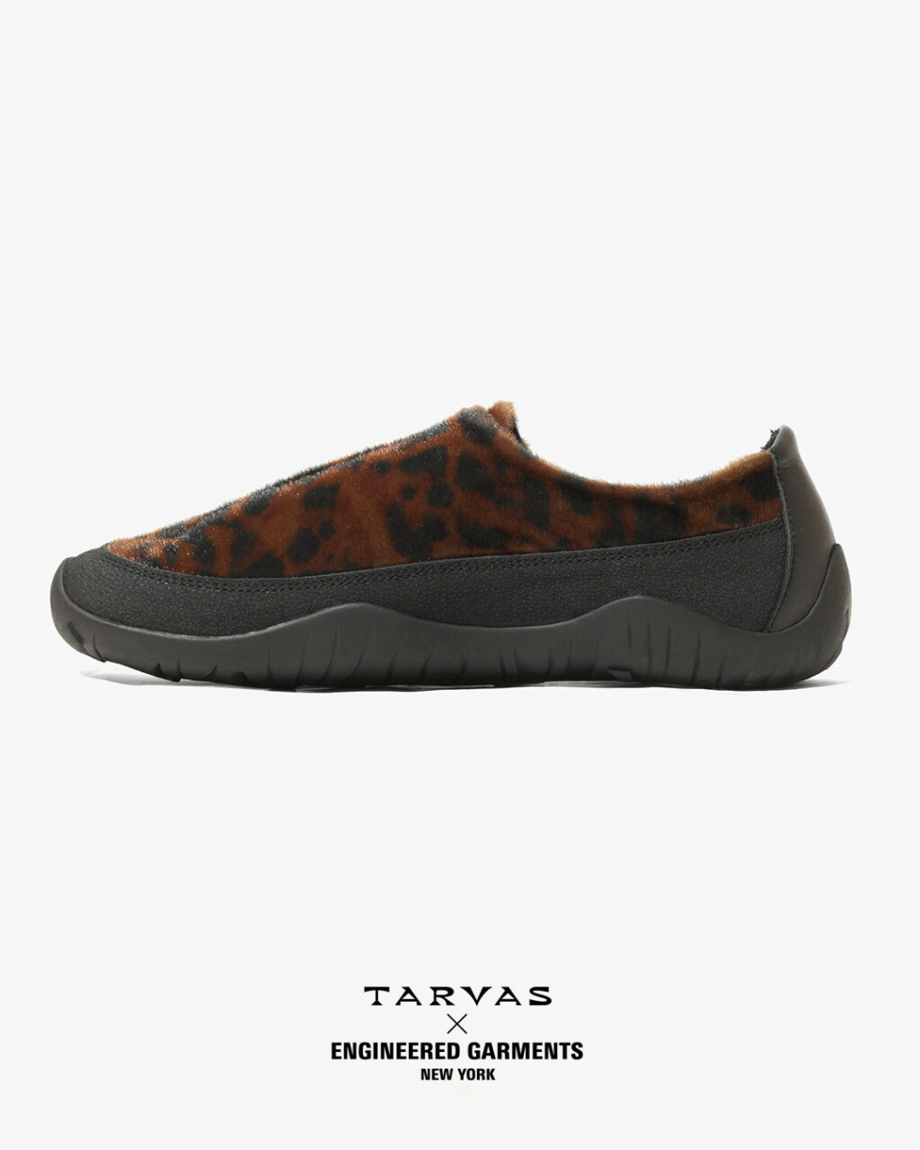 TARVASの『WANDERER』をベースとした今回のコラボレーションでは、アウトドアモックを彷彿とさせるシルエットのアッパーにフェイクファー素材を採用。