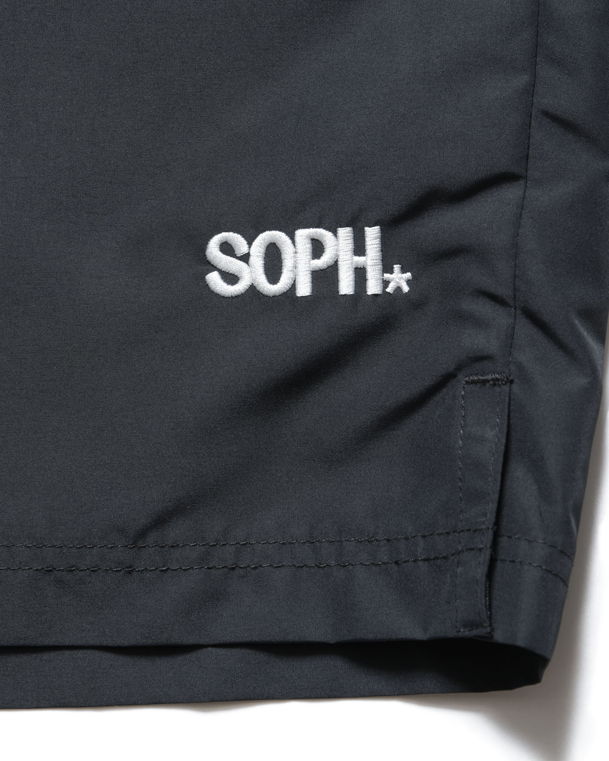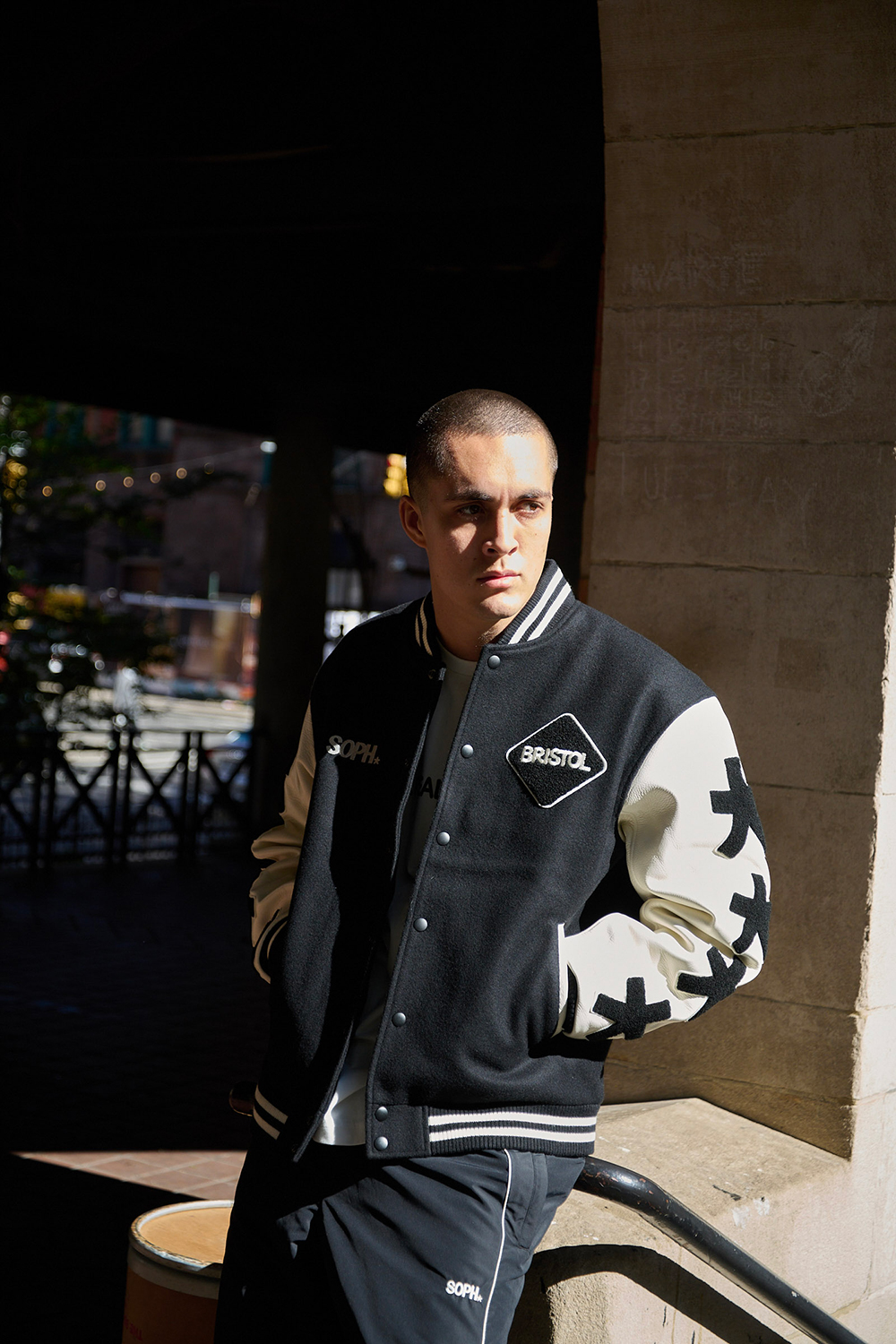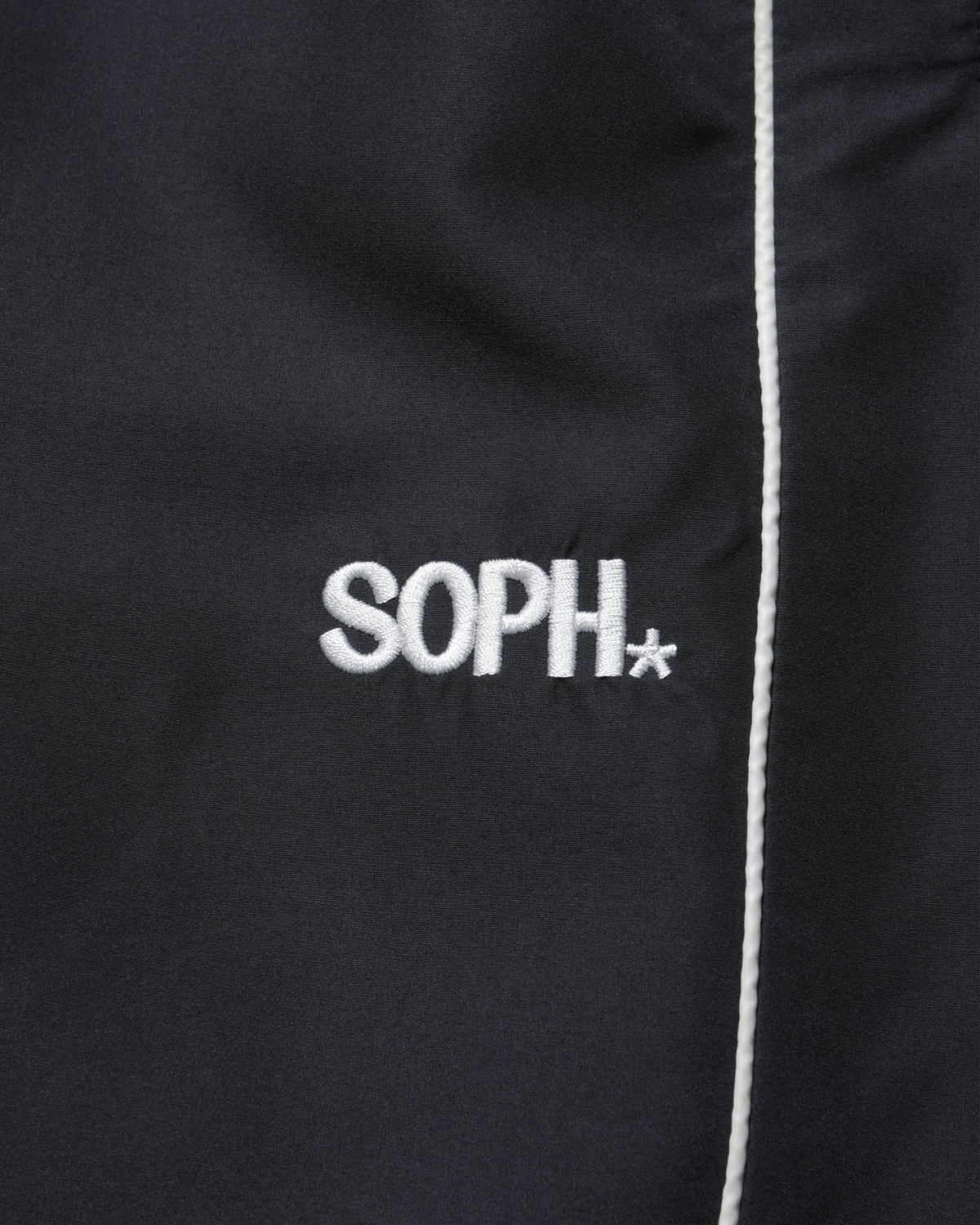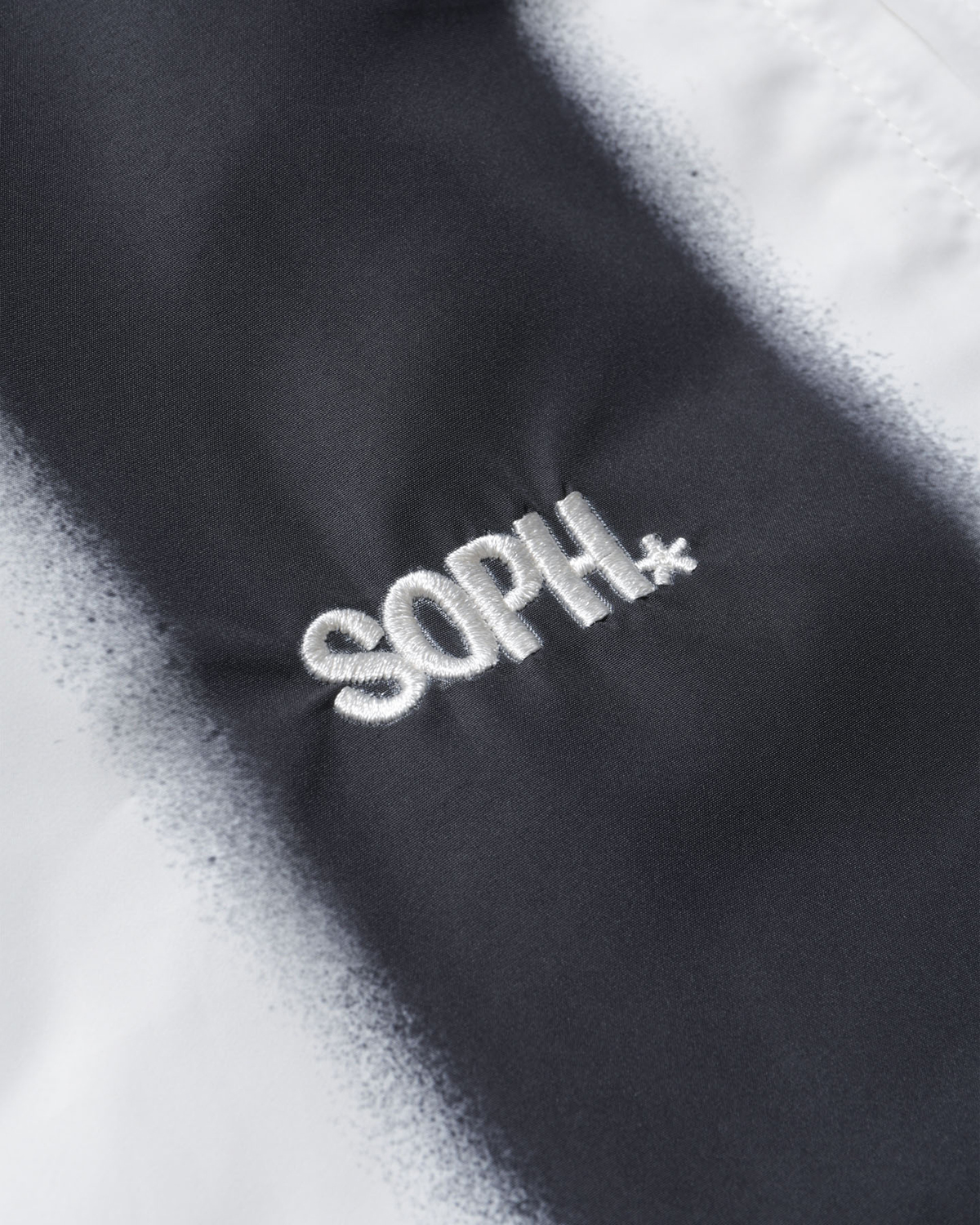 SOPH.東京店の26周年を記念して実現した今回のコラボレーションでは、ストライプのゲームシャツやワイドフィットのゲームショーツ、キルティングの裏地を備えたバーシティージャケットなどを展開。