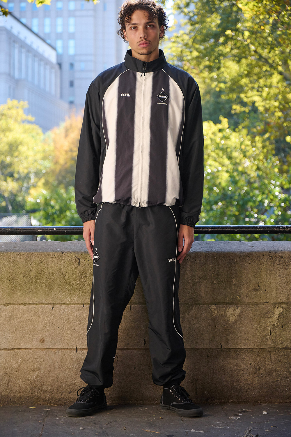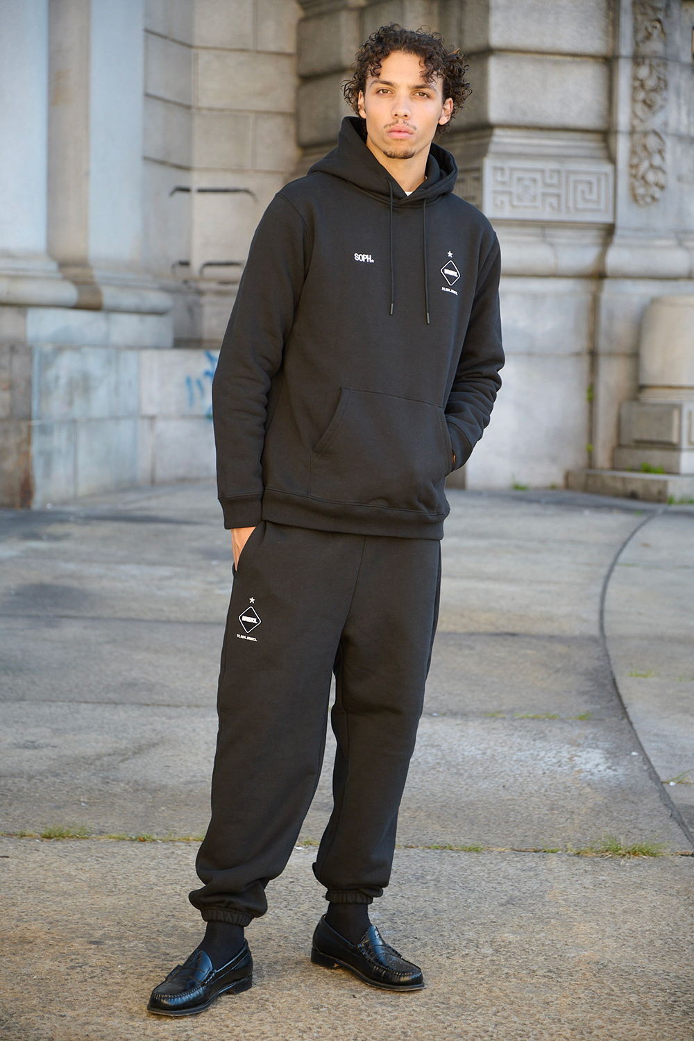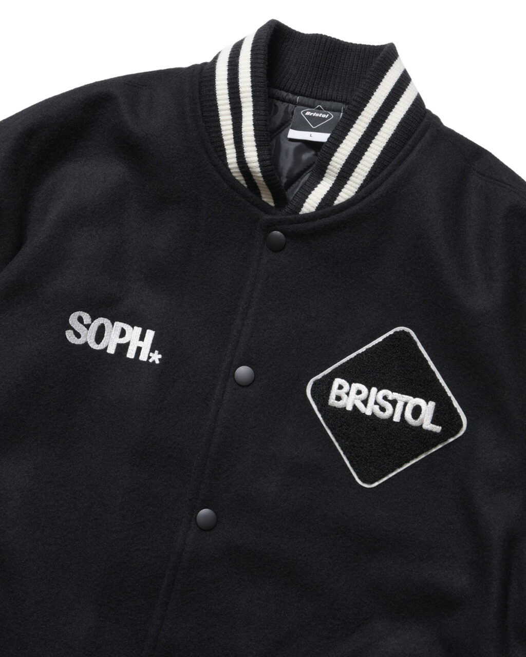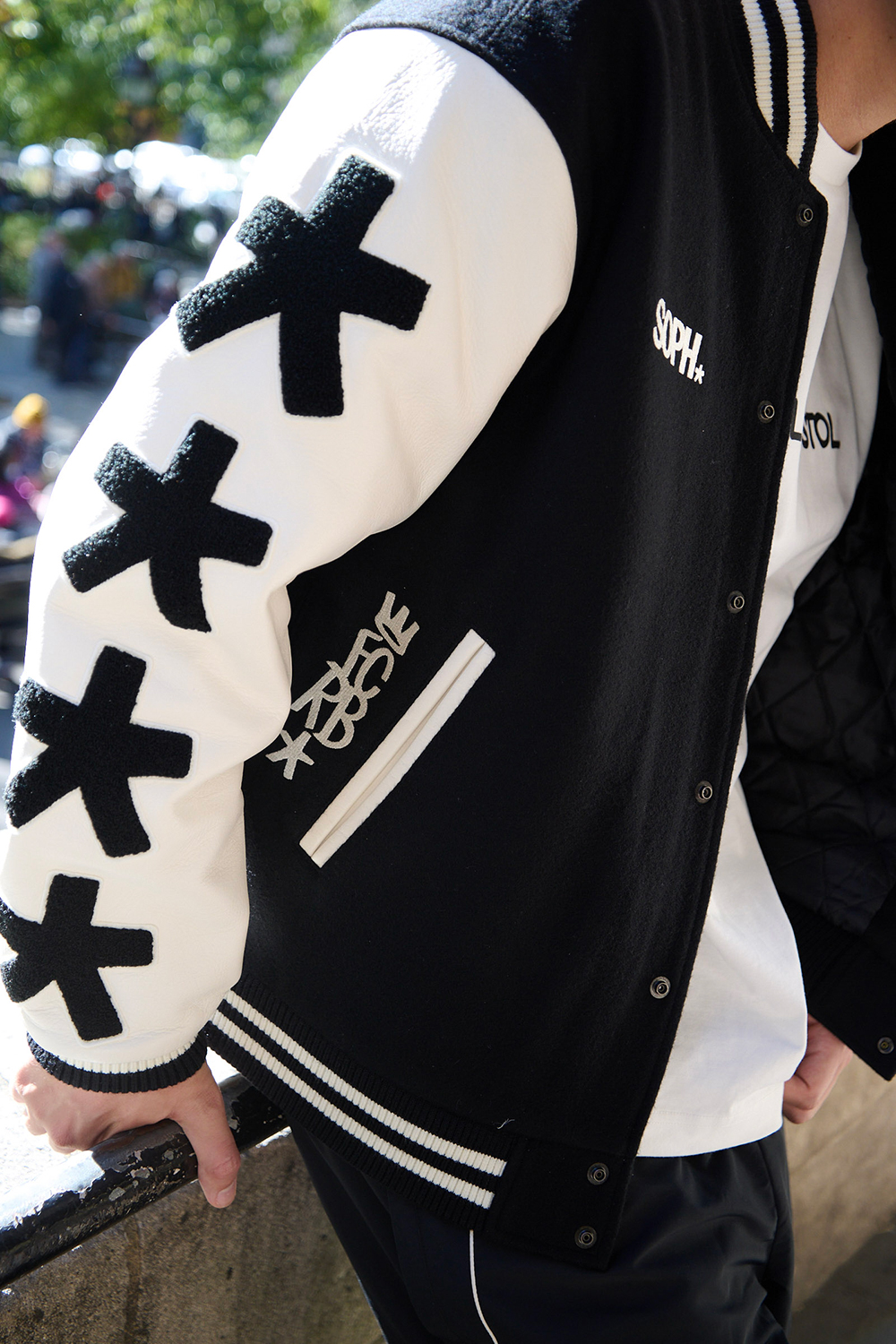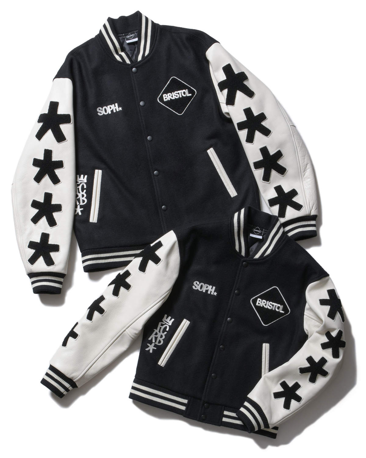 SOPH.東京店の26周年を記念して実現した今回のコラボレーションでは、ストライプのゲームシャツやワイドフィットのゲームショーツ、キルティングの裏地を備えたバーシティージャケットなどを展開。