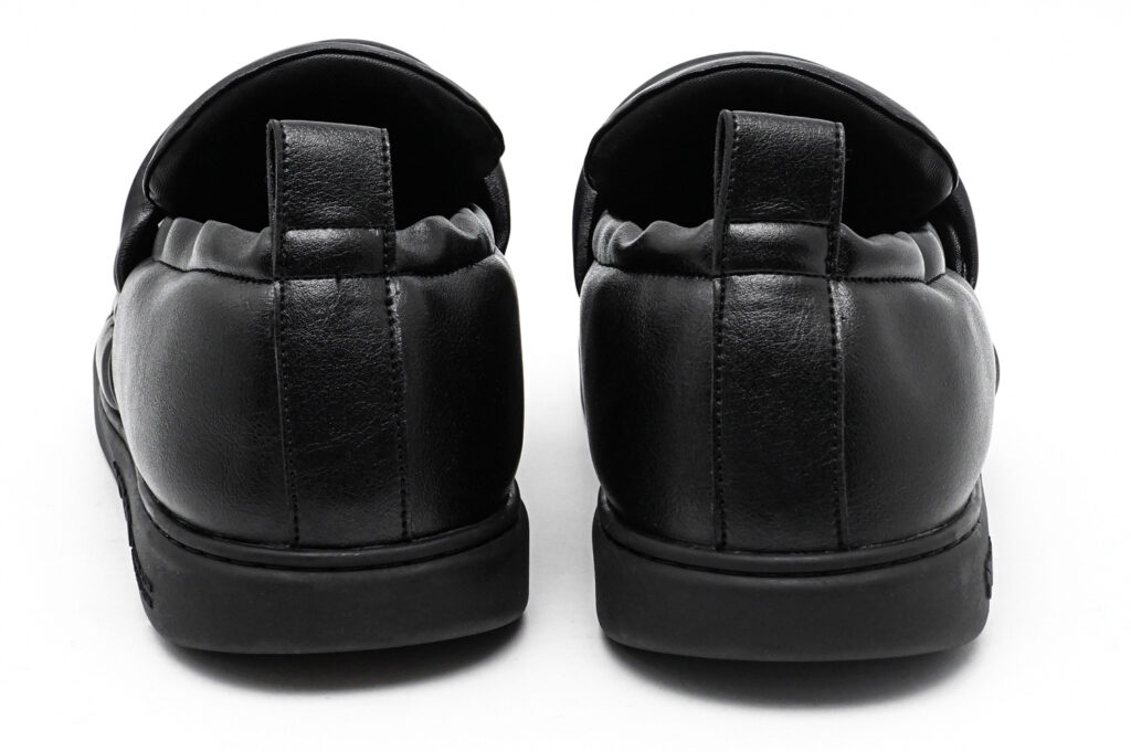 さらに、履き口にゴムを施すことで着脱も容易で、ヒールを踏んでスリッポンとしても履ける2WAY仕様に仕上げている。