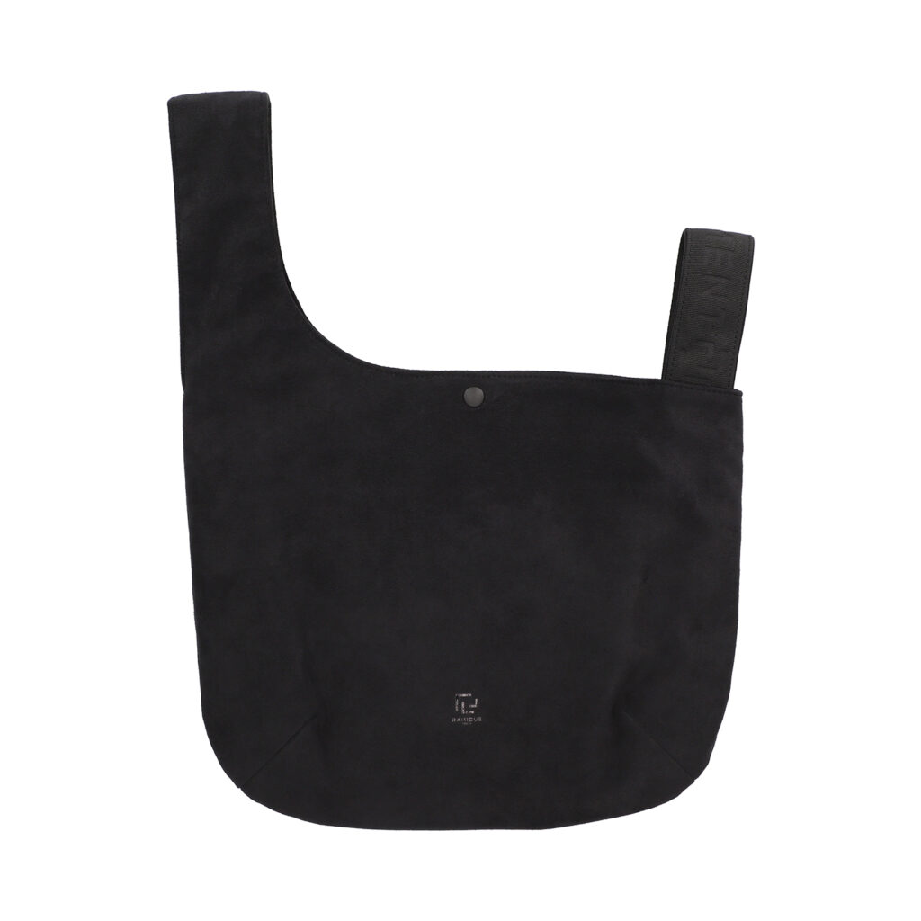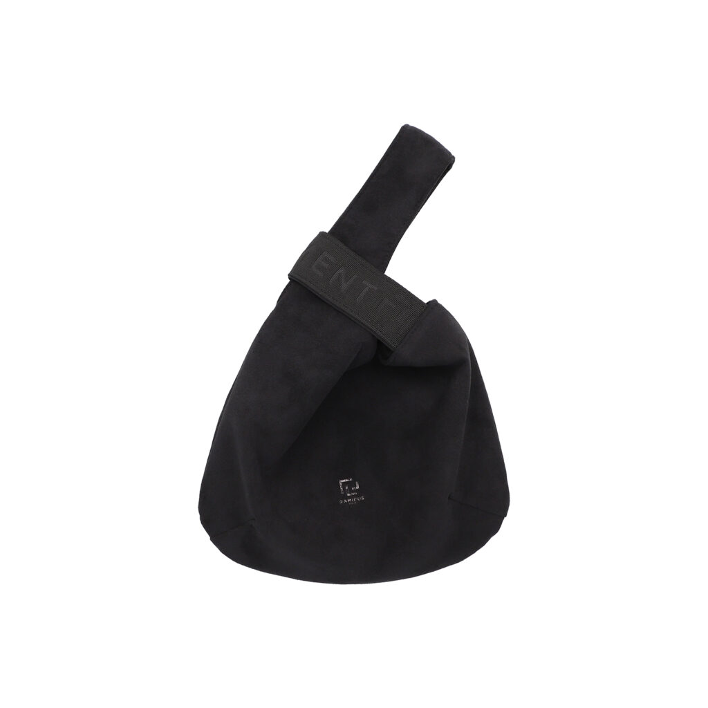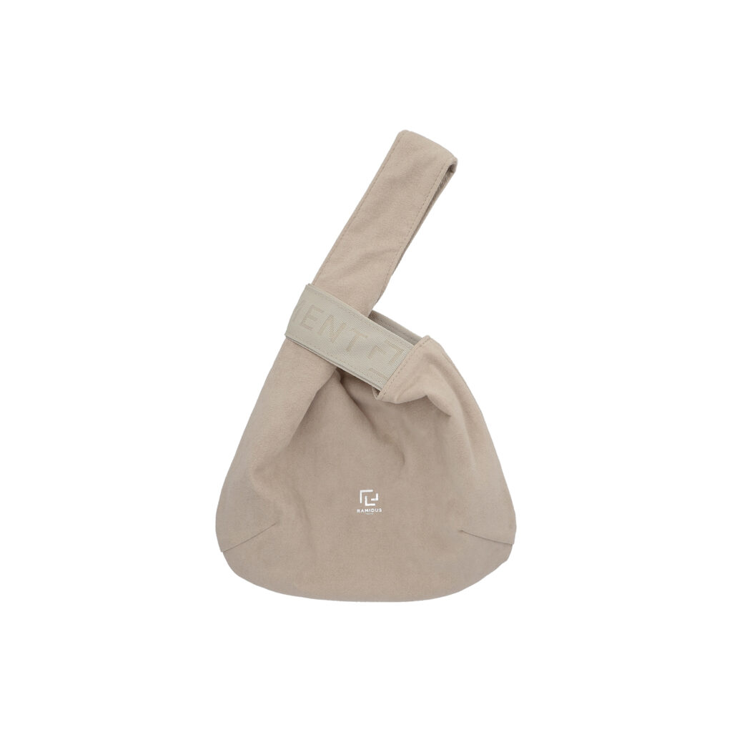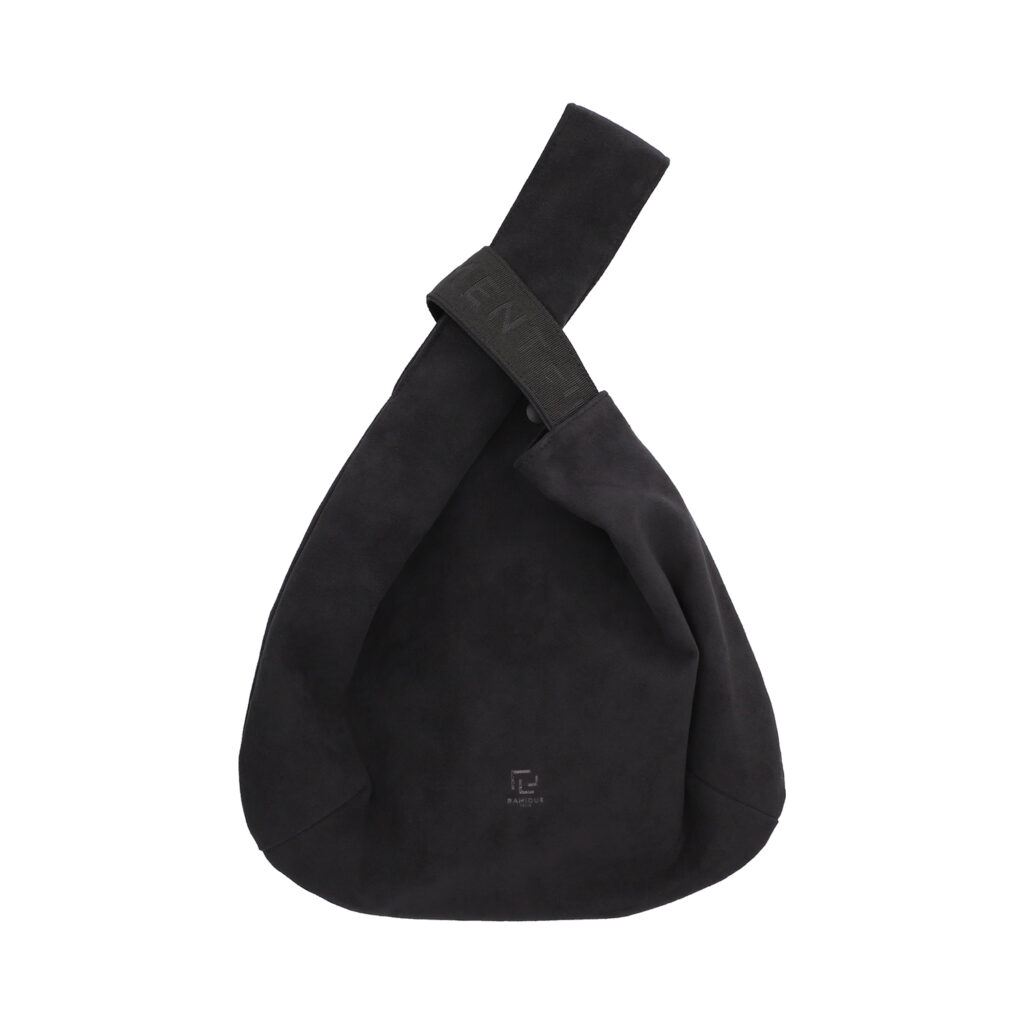 左右のハンドルをクロスすると口が閉じて、しじみの貝殻のような丸みを帯びたシルエットの巾着バッグとして使用できる『RAMIDUS SHIJIMI BAG』だが、今季は本体生地にソフトな手触りとスウェードさながらの上質な素材感を持ったUltrasuede® LXを採用。