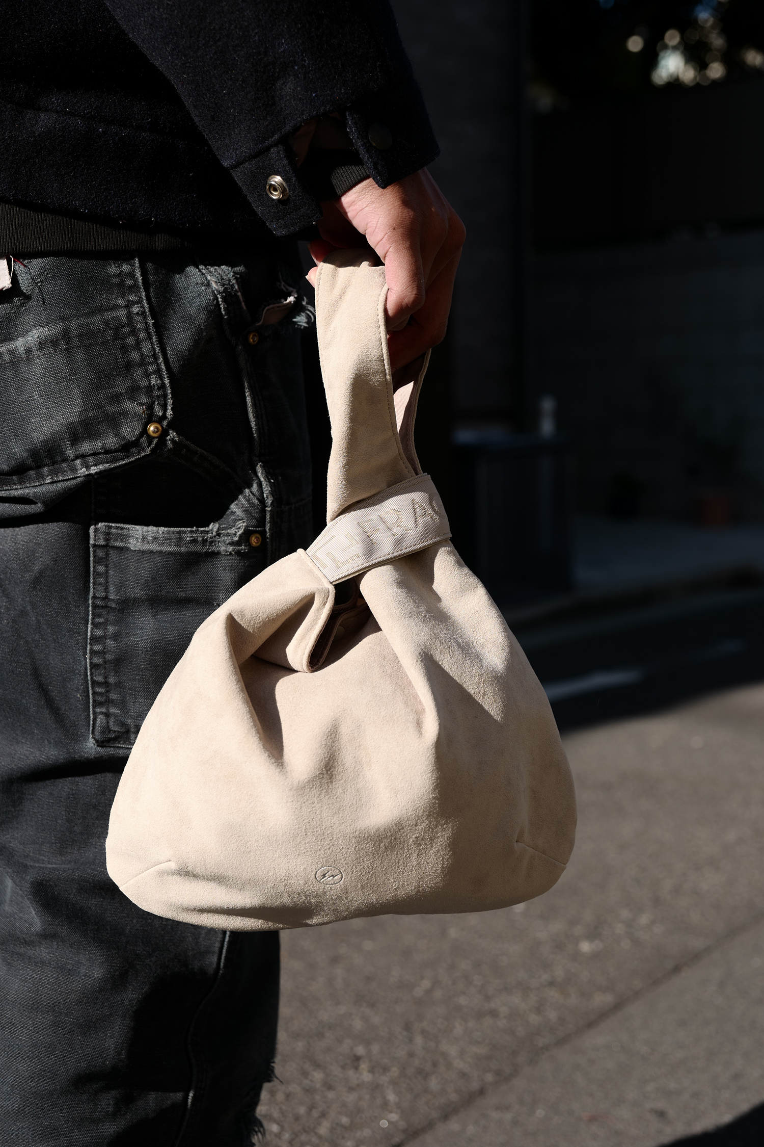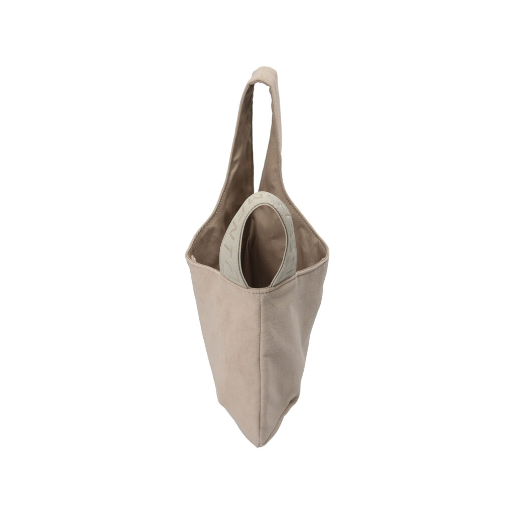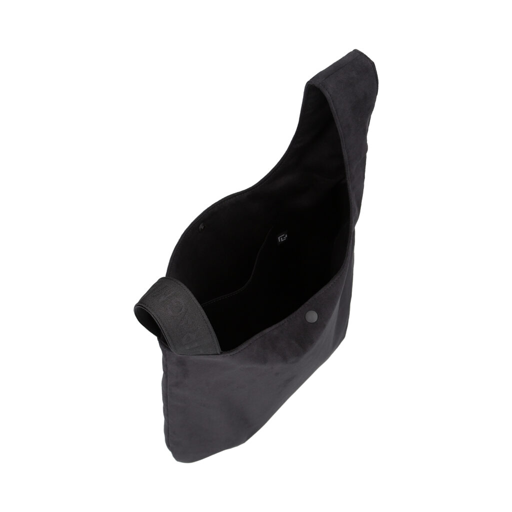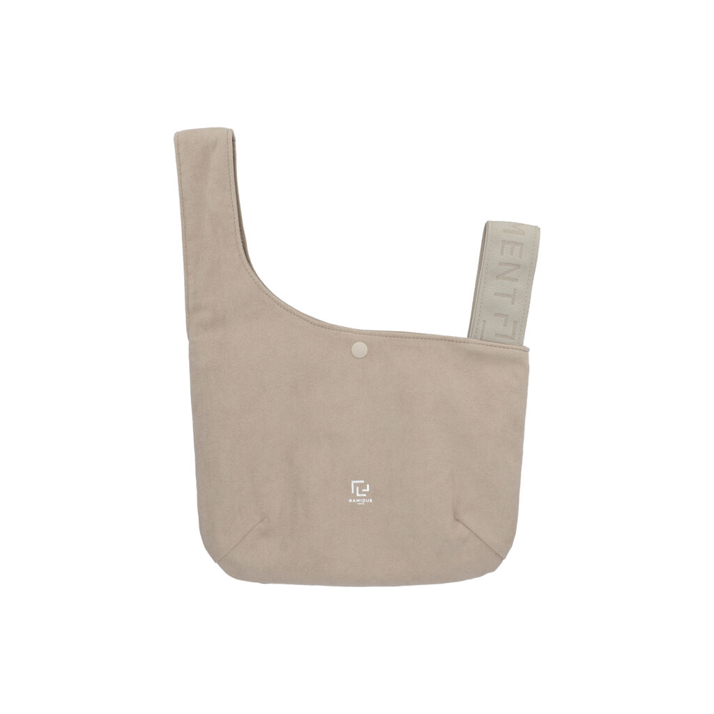 左右のハンドルをクロスすると口が閉じて、しじみの貝殻のような丸みを帯びたシルエットの巾着バッグとして使用できる『RAMIDUS SHIJIMI BAG』だが、今季は本体生地にソフトな手触りとスウェードさながらの上質な素材感を持ったUltrasuede® LXを採用。
