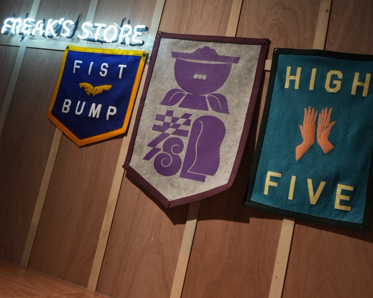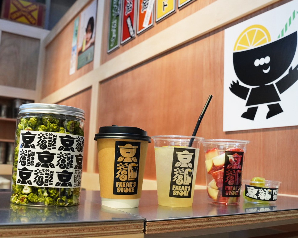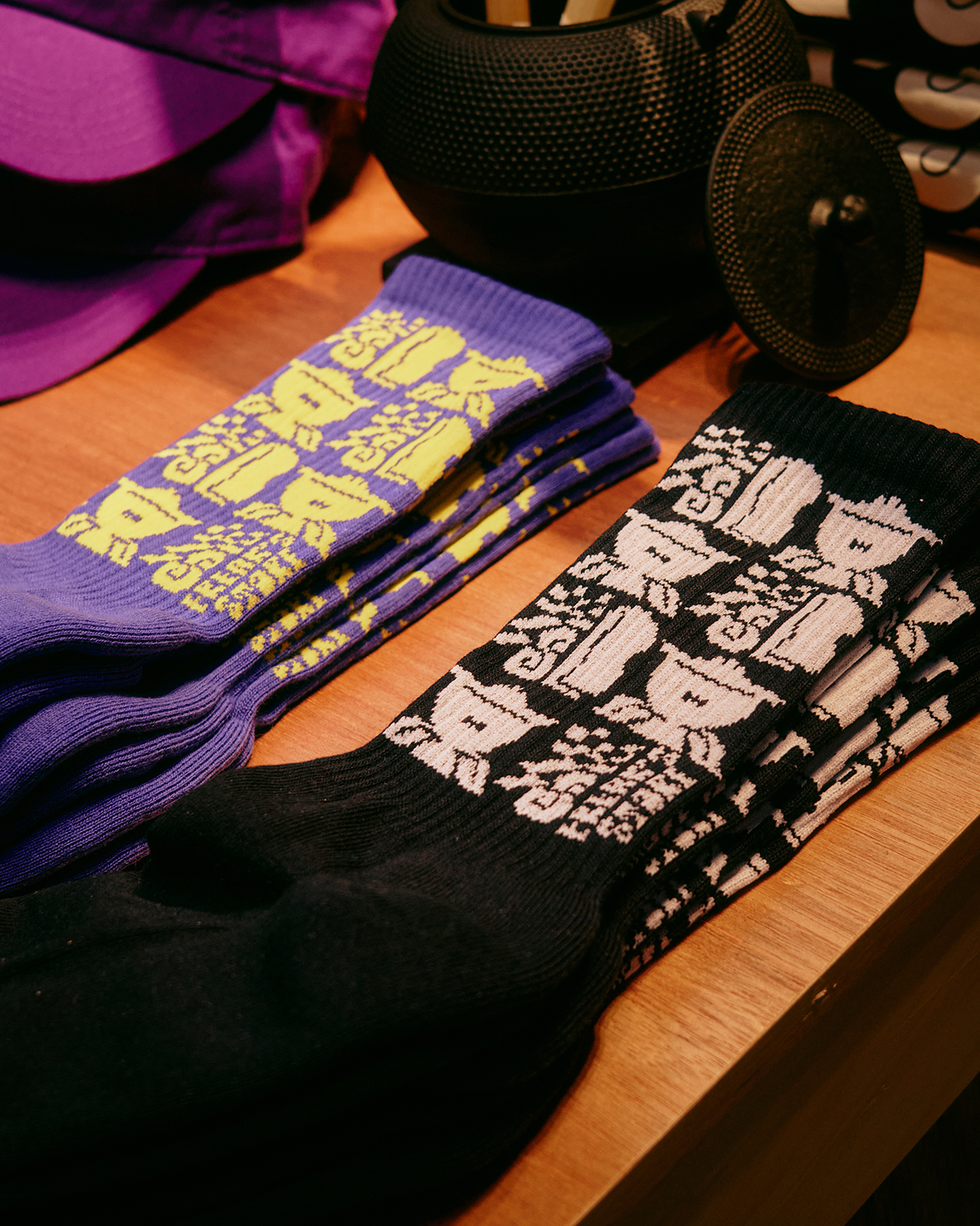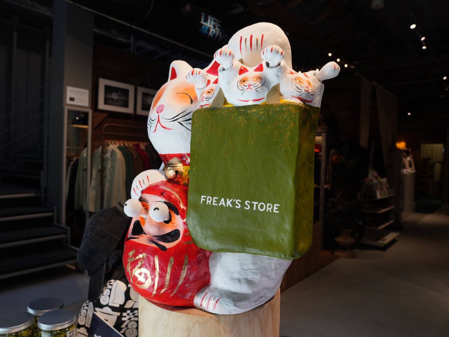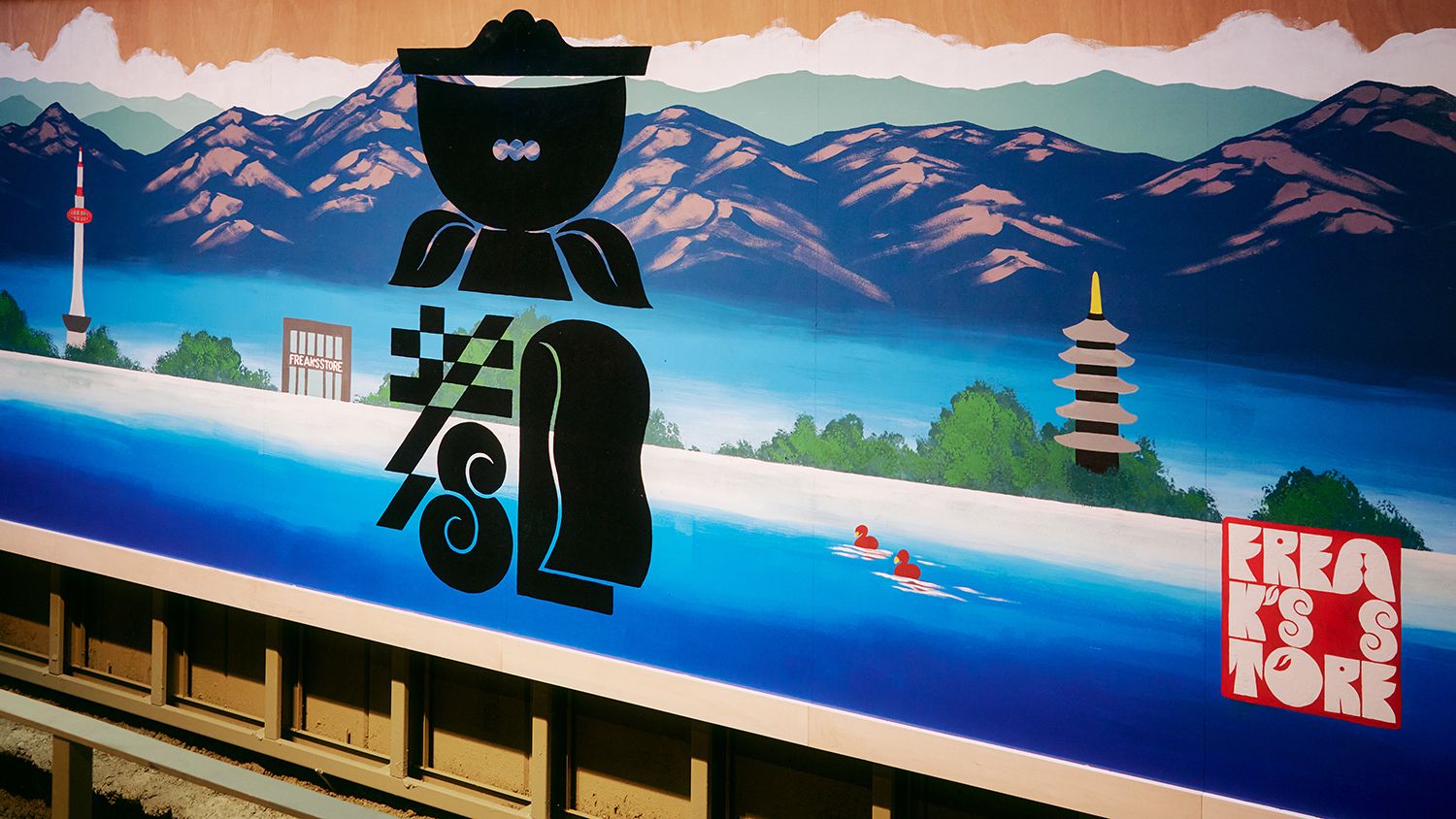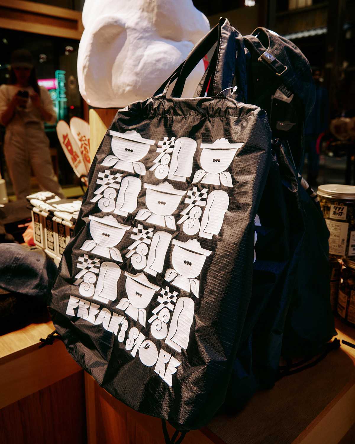 なかでもグラフィックデザイナー・美山有がデザインしたFREAK’S STORE 京都のストアロゴをモチーフとした、京都老舗手拭い専門店・永楽屋謹製の小風呂敷や京花団扇、Tシャツ、ナップサック、キャップ、ソックス、グラスなどはスーベニアとしても最適な注目アイテムだ。