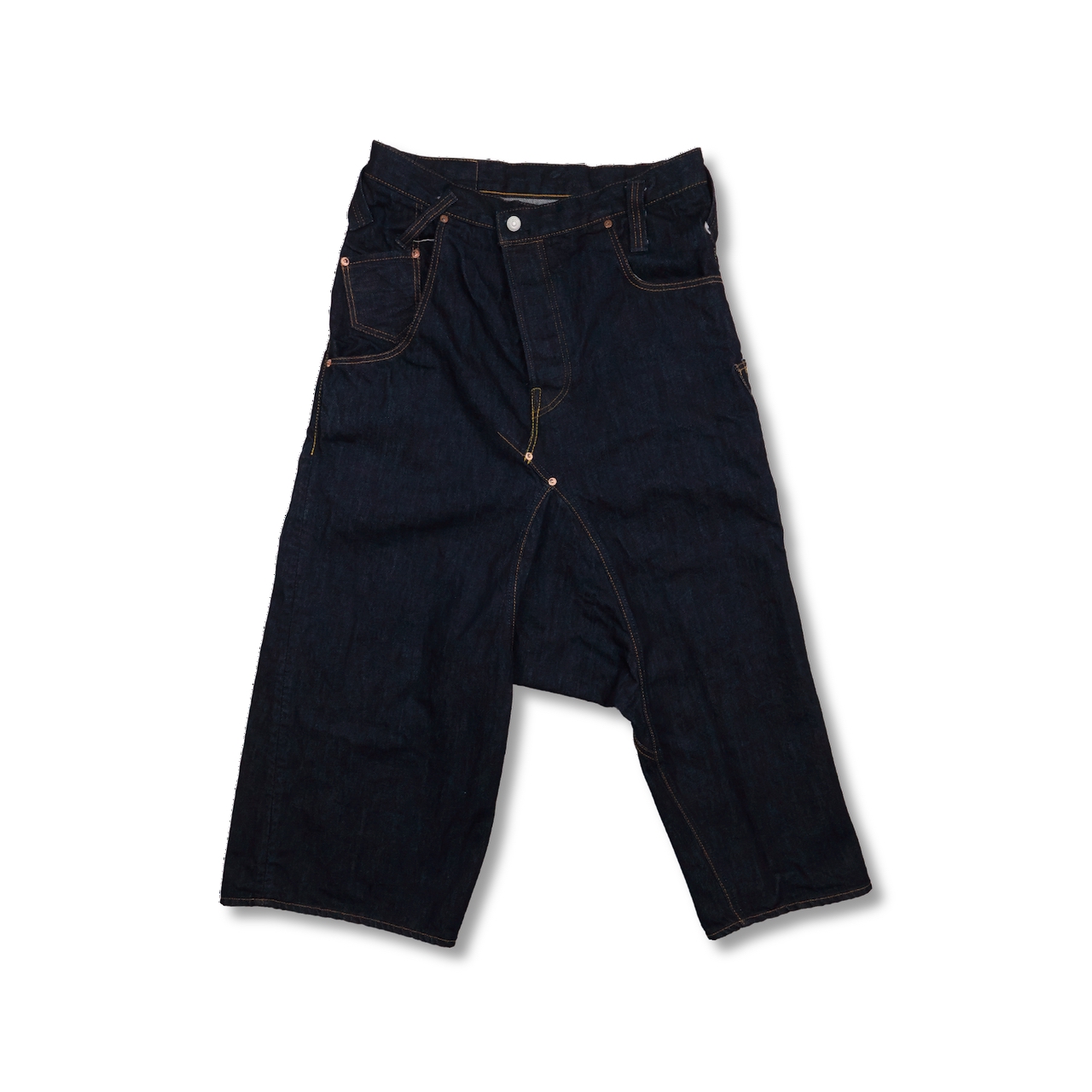 岡山県にあるデニム生地の機屋や加工工場といった生産現場を巡りながらデザインを構想し、デニムジャケット、デニムチョアジャケット、FUMITO GANRYUの定番サルエルパンツと5ポケットパンツベースにしたパンツ類、Tシャツ、シャツなど、全6アイテムを製作した。