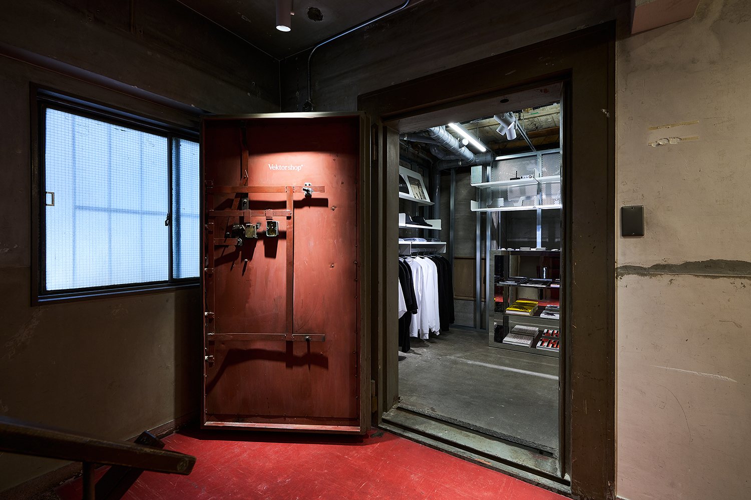 2階では、コペンハーゲンのデザインスタジオ・FRAMA(フラマ)によるショップインショップとGraphpaperのウィメンズが共存。旧金庫室を活かしたVektor Shop®も、建物の痕跡を残したままカルチャーの発信拠点として機能する。