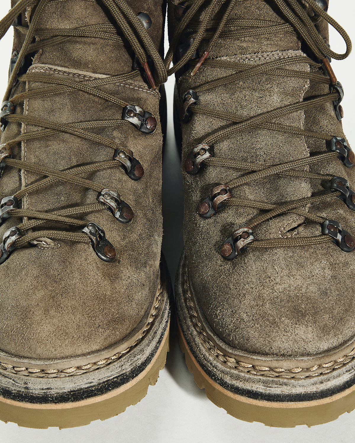 今回は、シャープなルックスが特徴的なGUIDIのラインナップにおいて、とりわけラギッドな存在感を放つ『HIKING BOOTS』をベースモデルに採用。