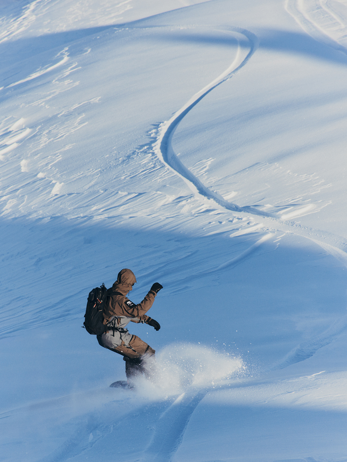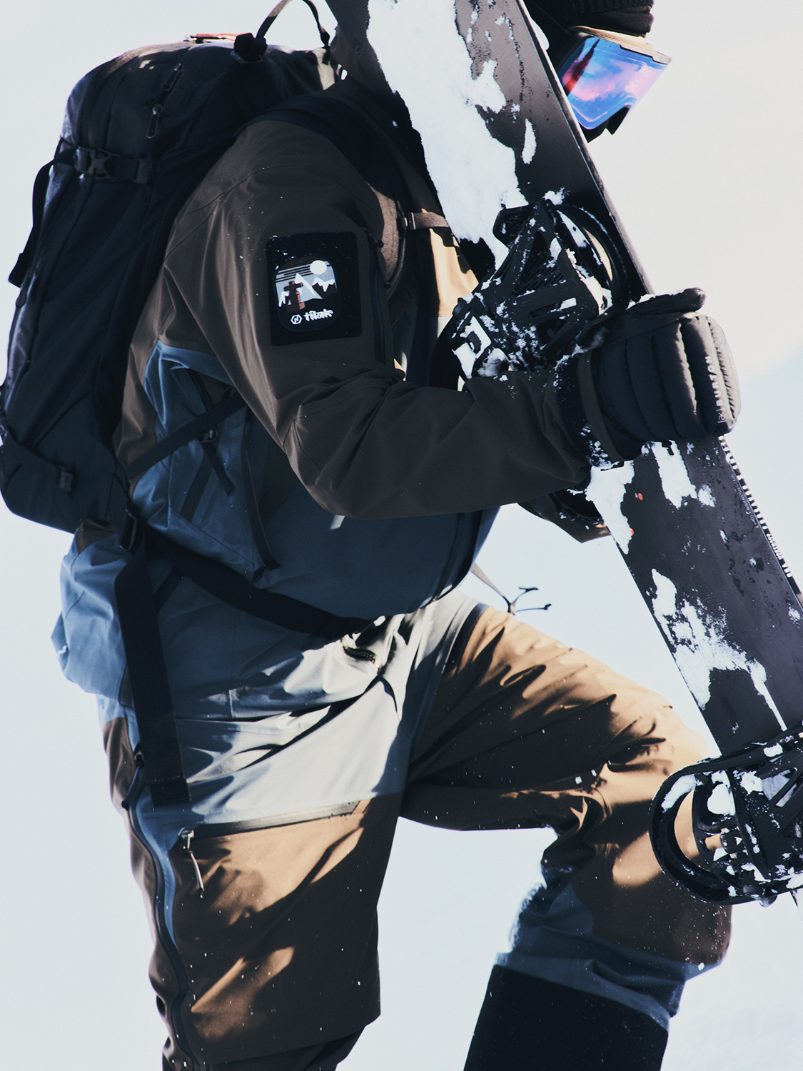スノーボードにフォーカスした今回のコレクションは、アウターシェルとミッドレイヤリングシステムで構成。