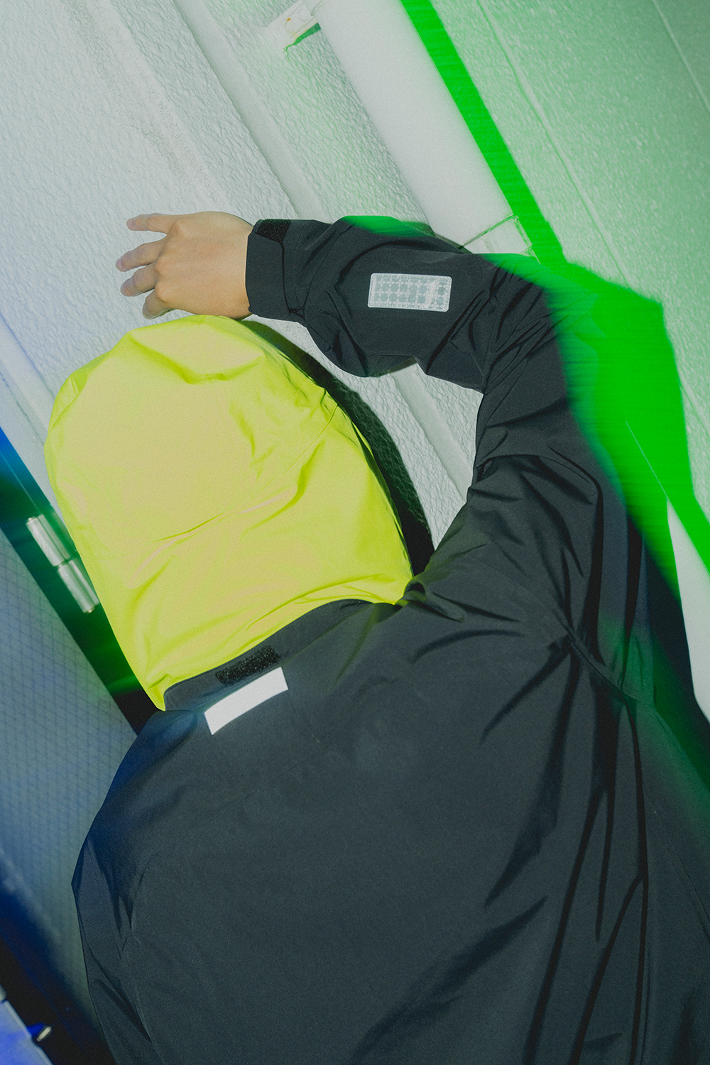 また、フードをフラッシュイエローの配色にし、SOLAS条約(海上人命安全条約)に準じたリフレクトサイトのワッペンをフロントに設けることで、海上での視認性を向上。