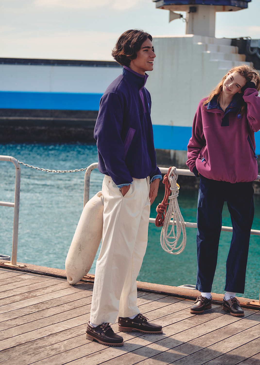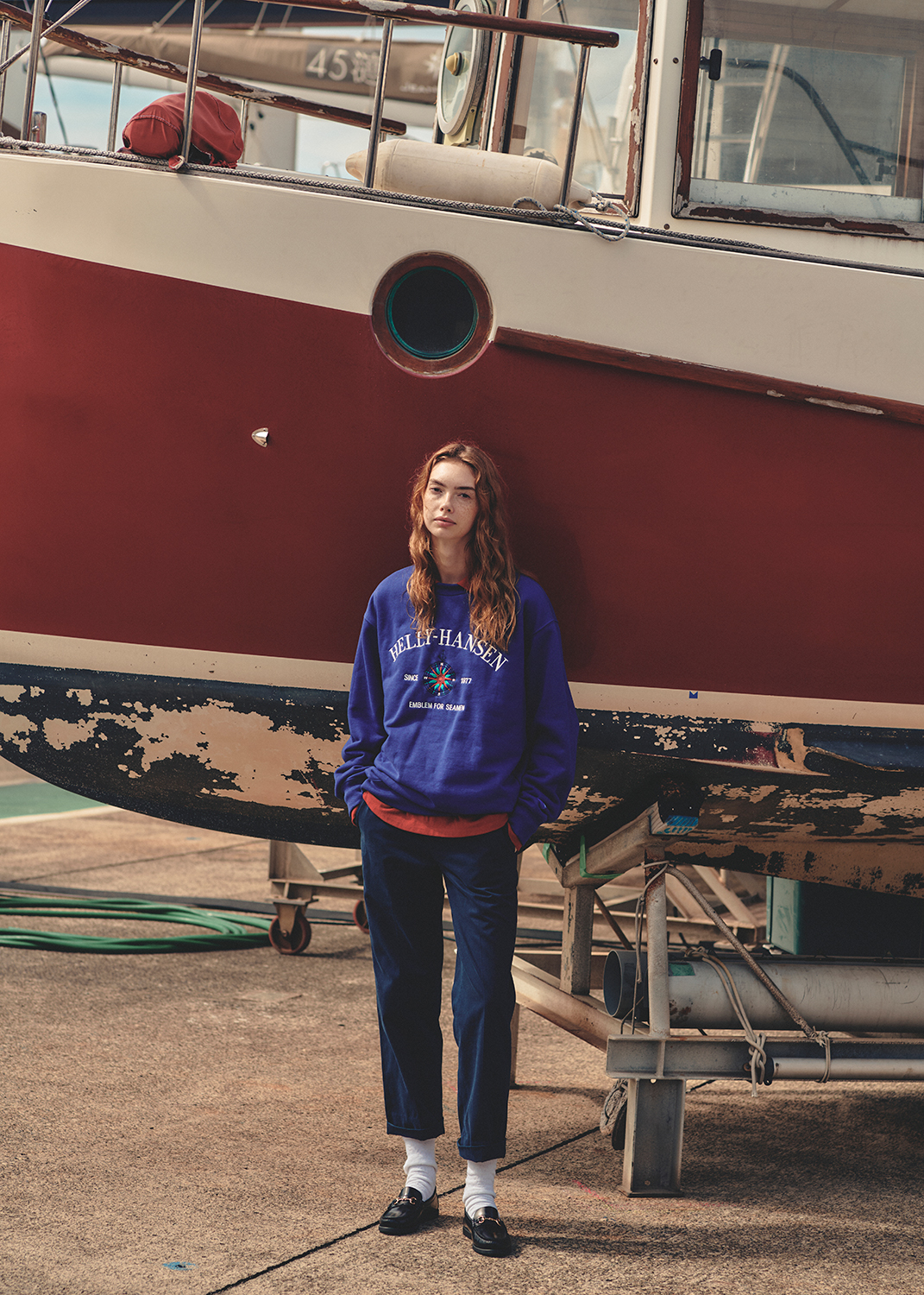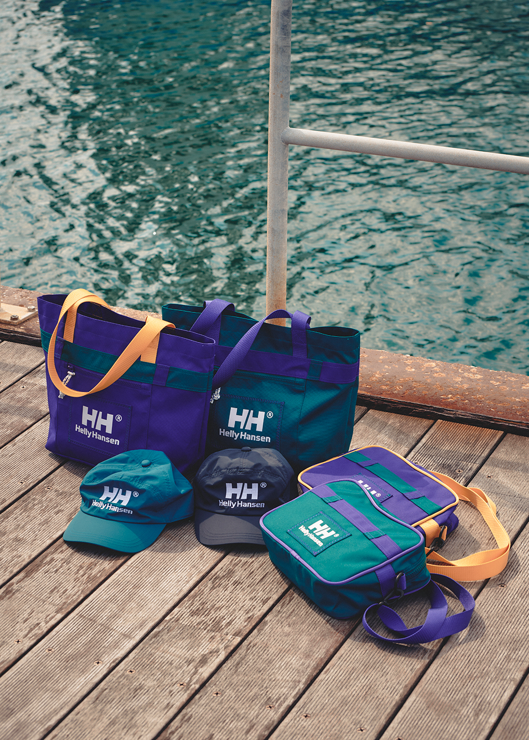 HELLY HANSENのアイコンとも言えるクルージングジャケットのほか、セーリングシャツ、フリースジャケット、キャップ、バッグ類、ブランケットなども登場している。
