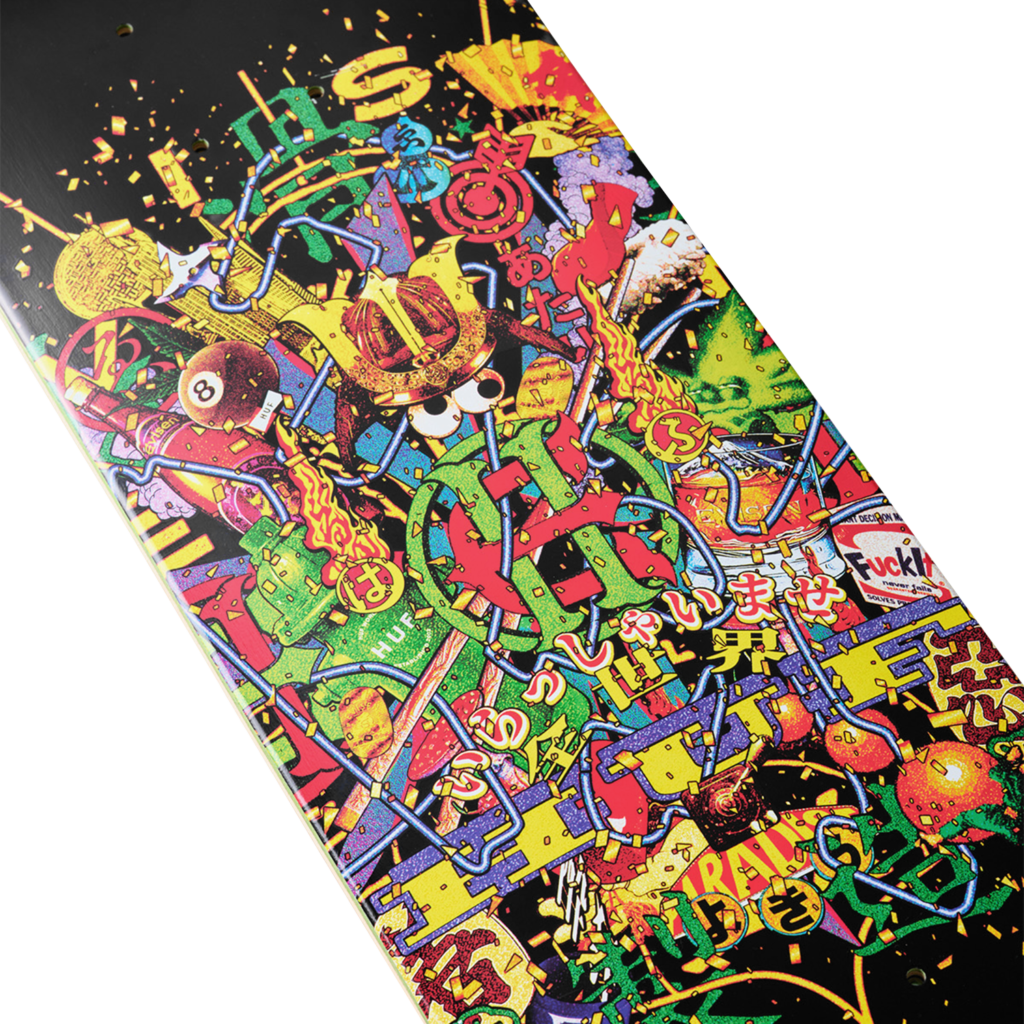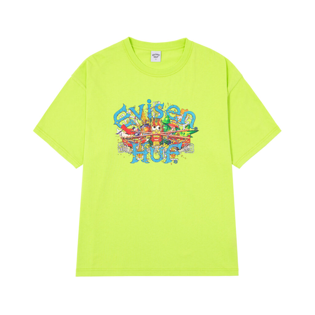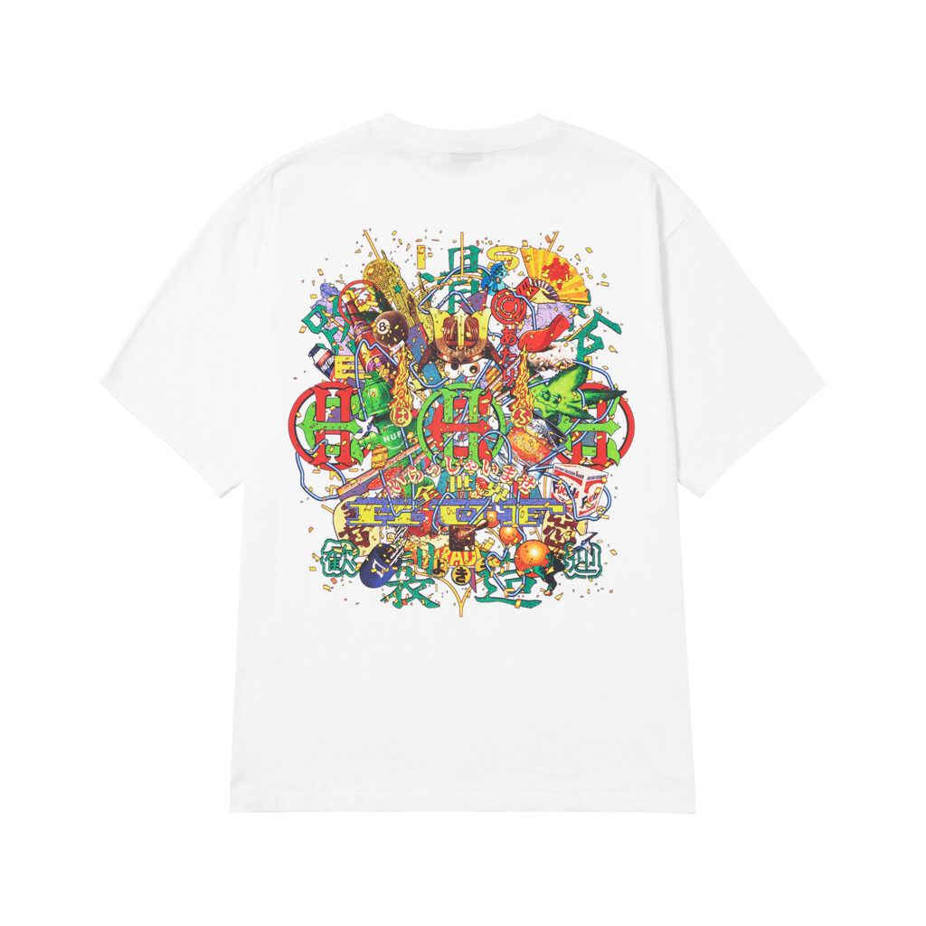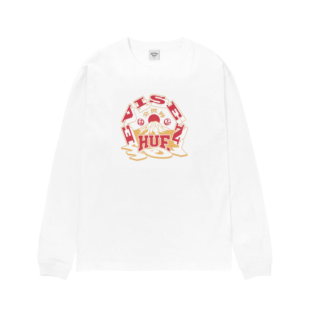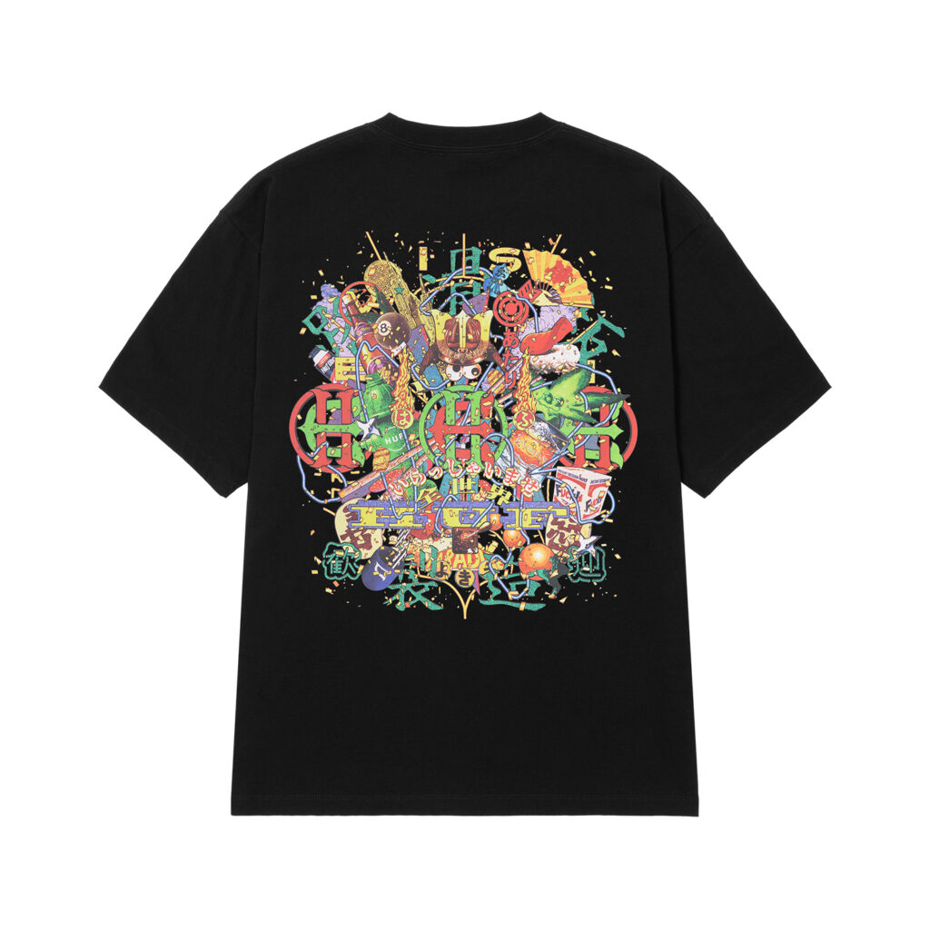 Evisen Skateboardsが得意とする日本文化への独自の視点と、HUFが追求する革新的なストリートデザインを融合し、両者のクルーが時空や国境を越えて交わる架空の都市・EVICITYをコンセプトに据えた。