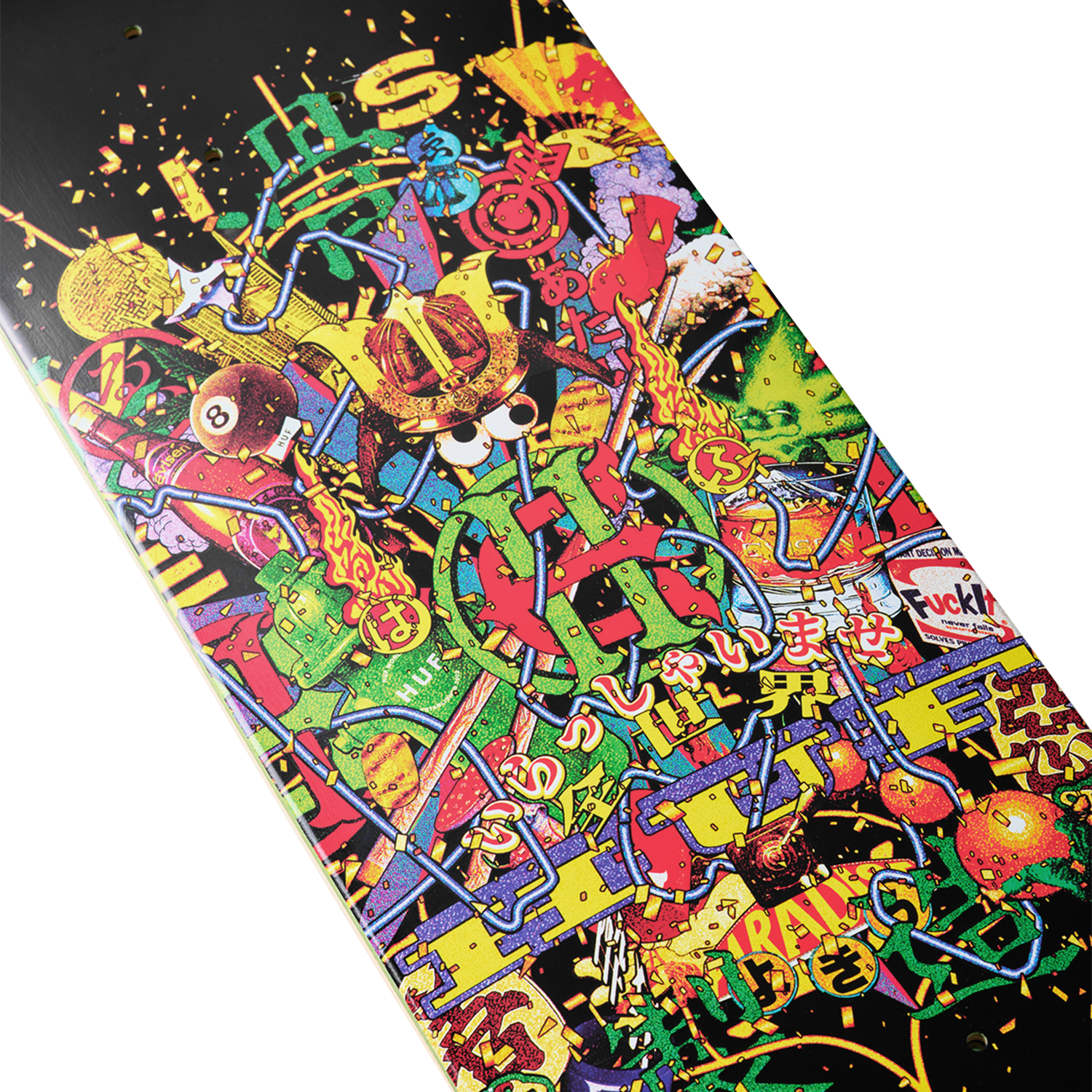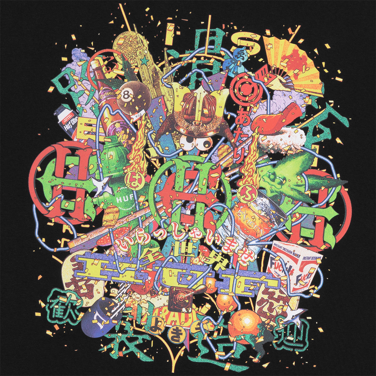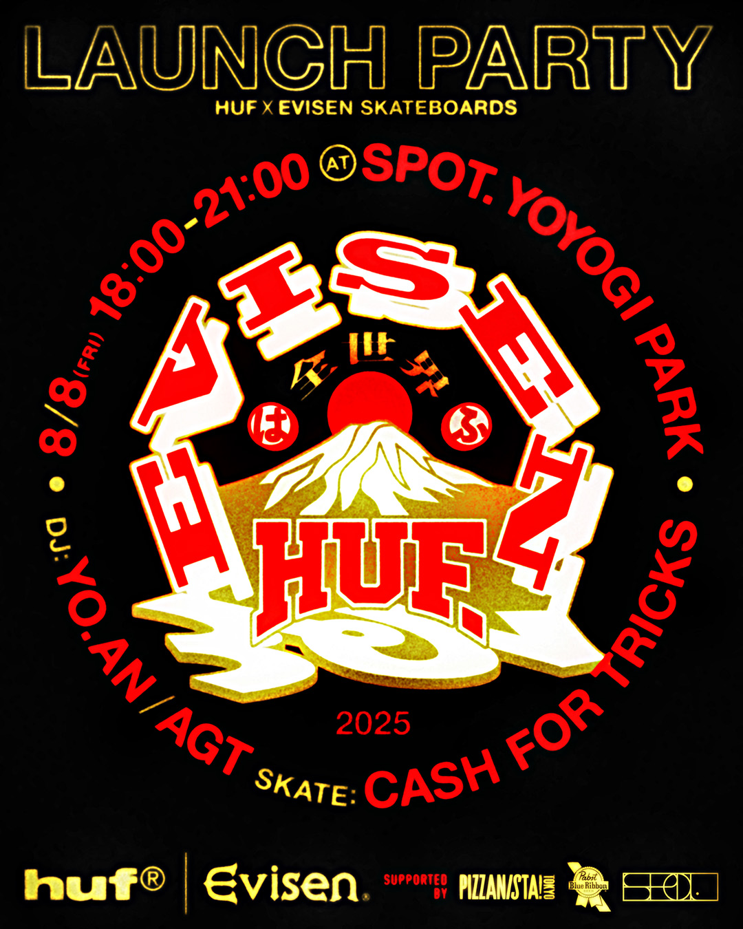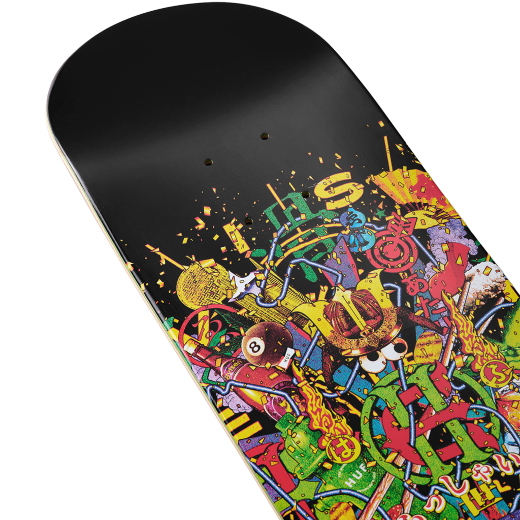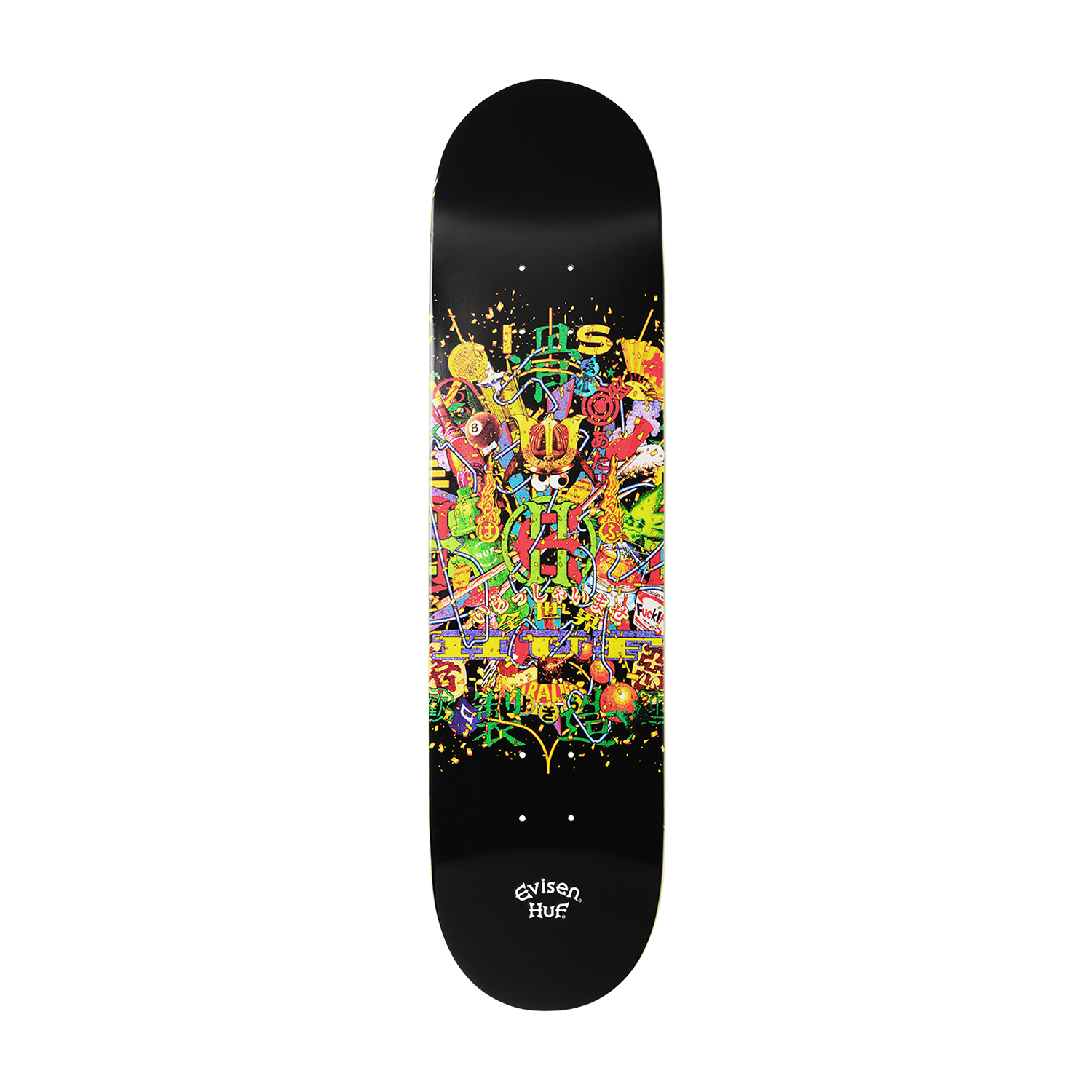 Evisen Skateboardsが得意とする日本文化への独自の視点と、HUFが追求する革新的なストリートデザインを融合し、両者のクルーが時空や国境を越えて交わる架空の都市・EVICITYをコンセプトに据えた。