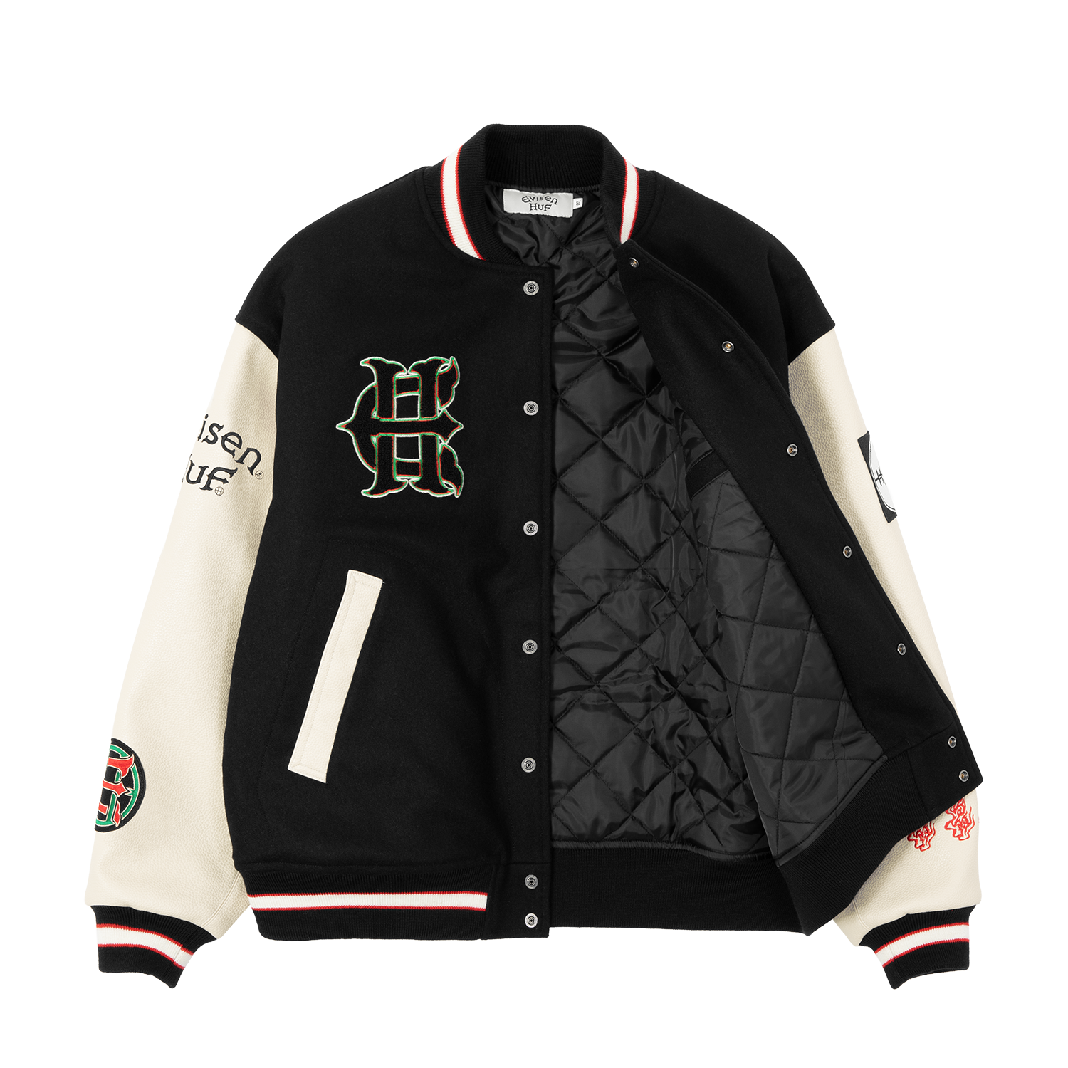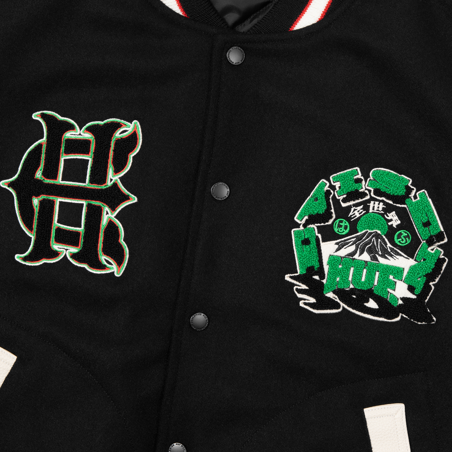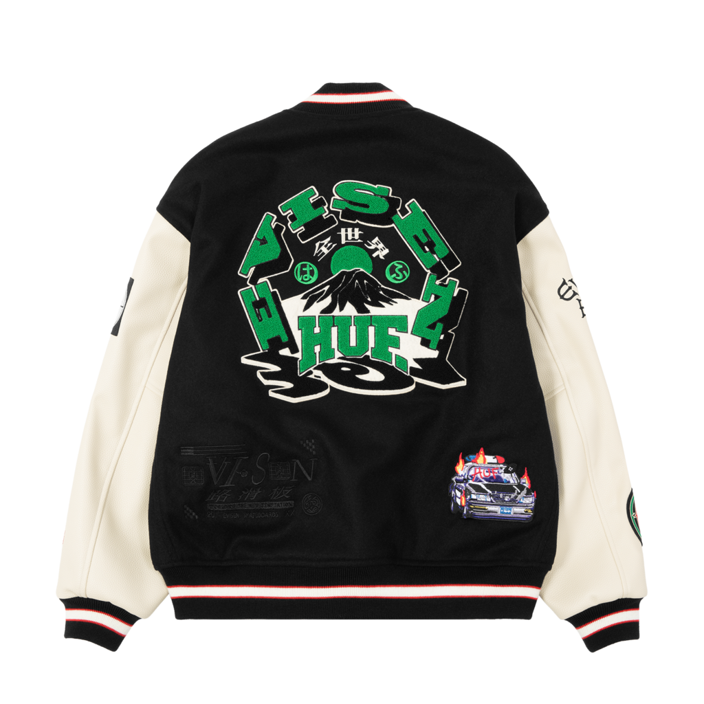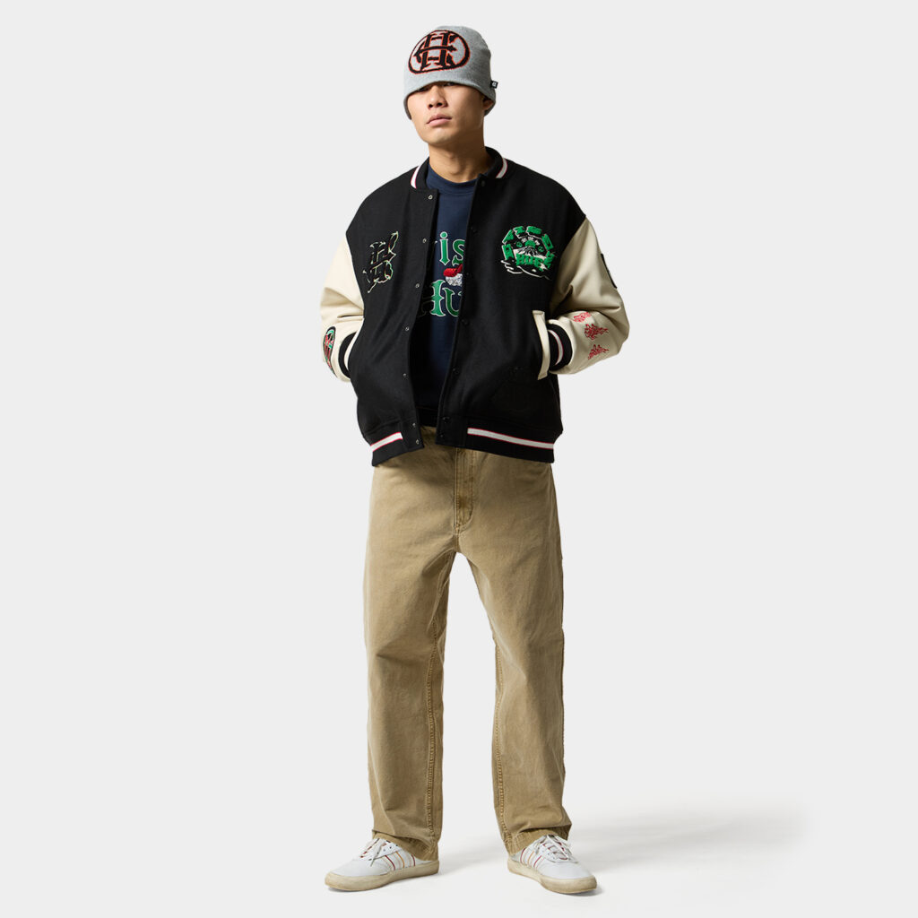 富士山や寿司といった日本を象徴するモチーフを、刺繍やプリントなどの多彩なテクニックで、スタジアムジャケット、ダブルジップフーディー、クルーネックフリース、ビーニー、酒瓶&そばちょこセット、プレート、バックルベルト、マーブルスタッシュボックス等、幅広いアイテムに落とし込んだ。