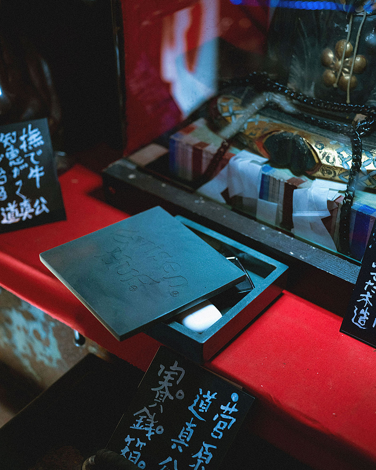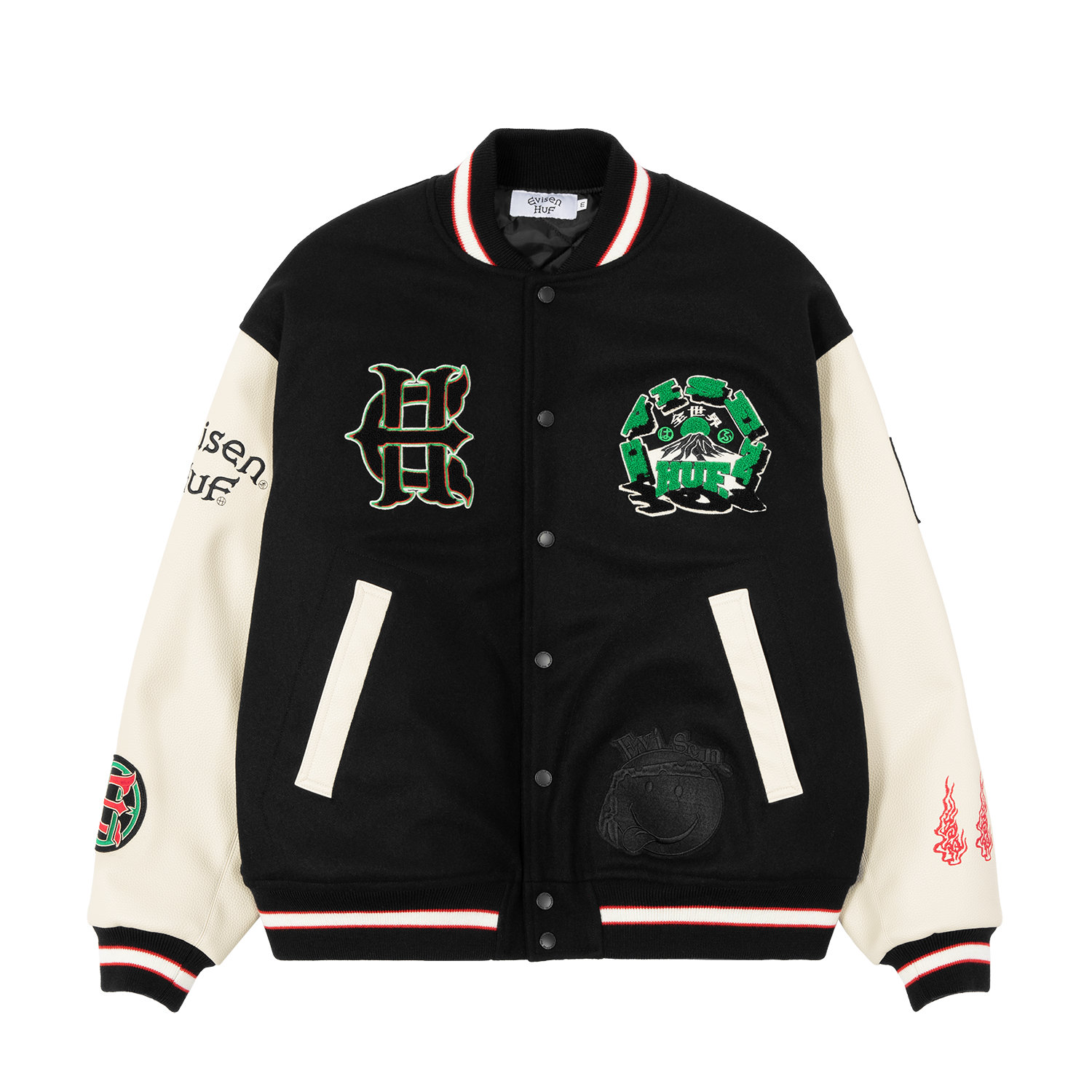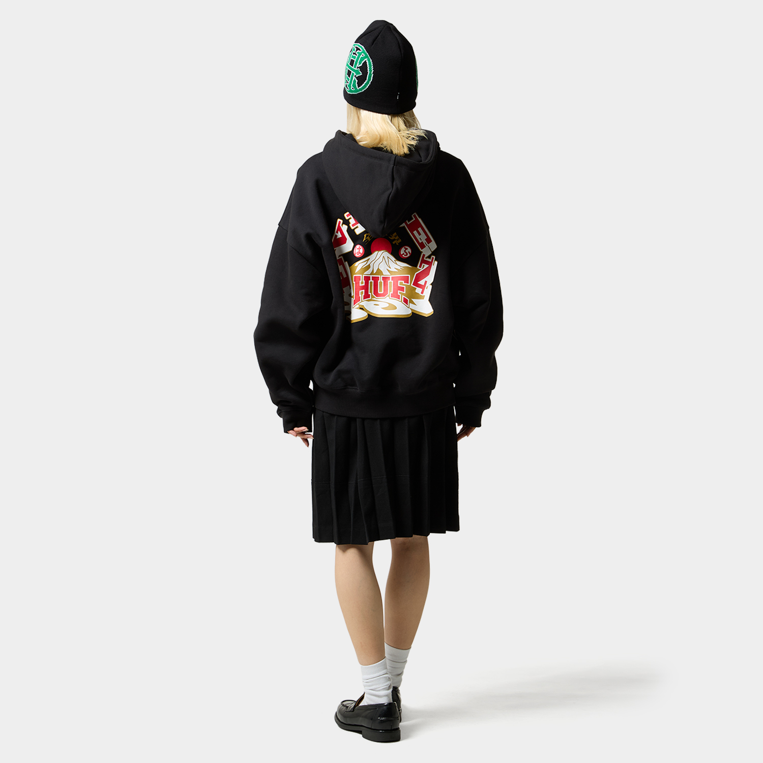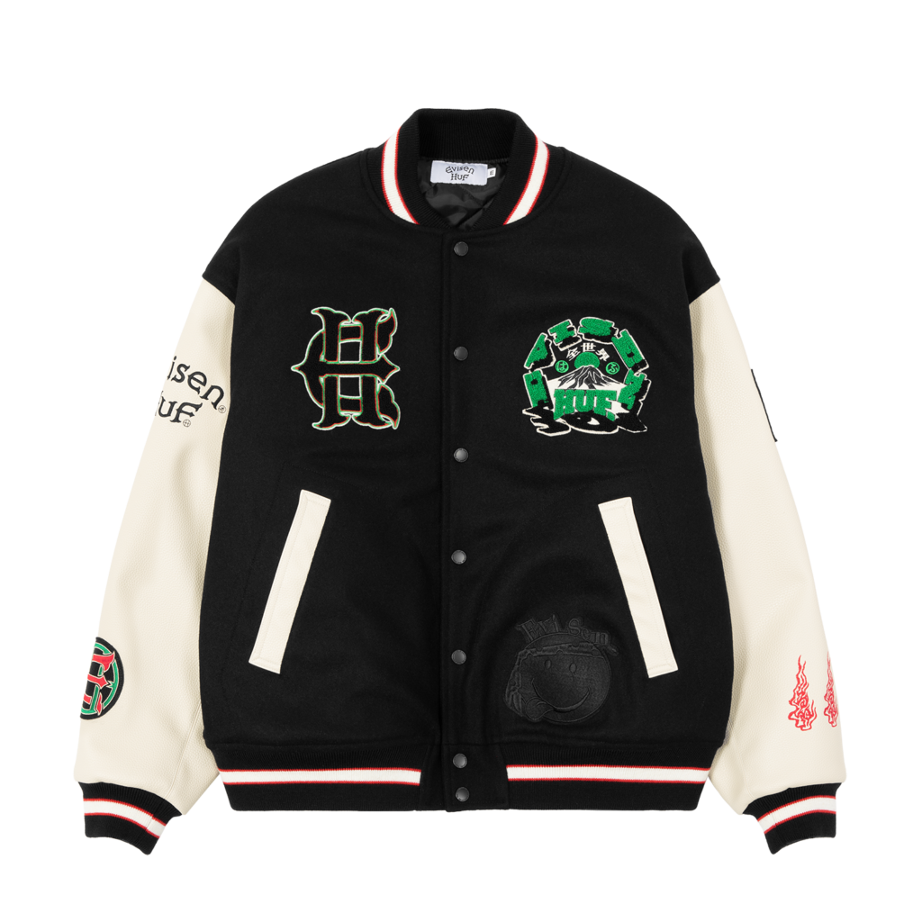 富士山や寿司といった日本を象徴するモチーフを、刺繍やプリントなどの多彩なテクニックで、スタジアムジャケット、ダブルジップフーディー、クルーネックフリース、ビーニー、酒瓶&そばちょこセット、プレート、バックルベルト、マーブルスタッシュボックス等、幅広いアイテムに落とし込んだ。
