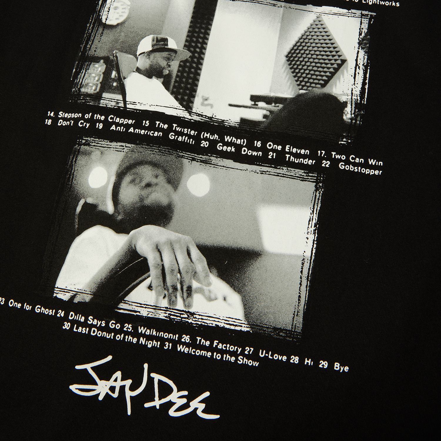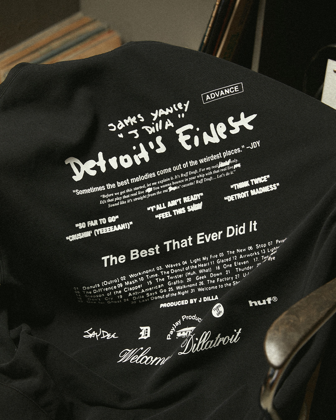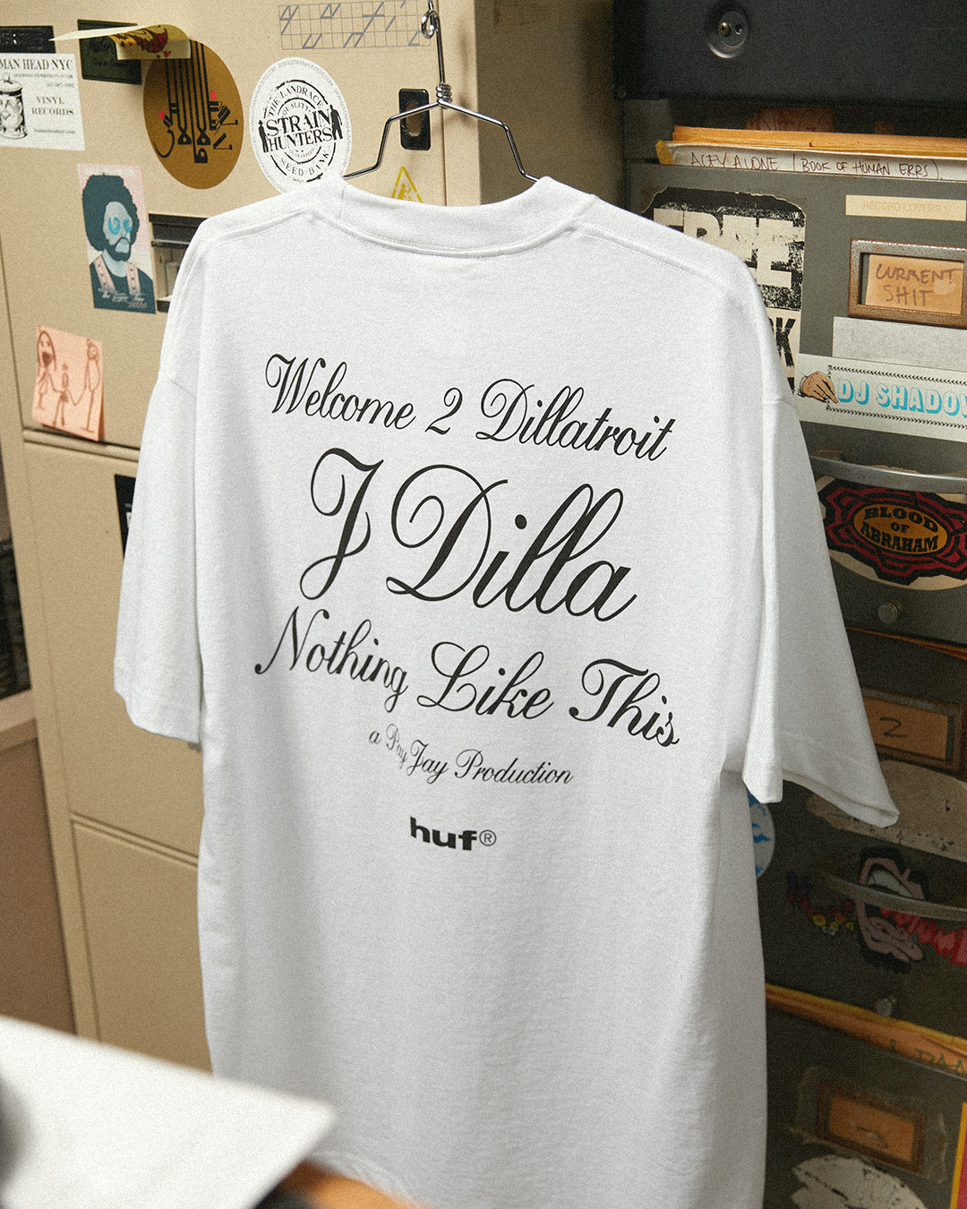 今回は、Brian Cross(ブライアン・クロス)が撮影したJ Dillaの象徴的な写真と、トラックリストから着想を得たグラフィック、クリーンなカラーウェイ、主要アイテム全体に施されたゴールドのアクセントを融合。