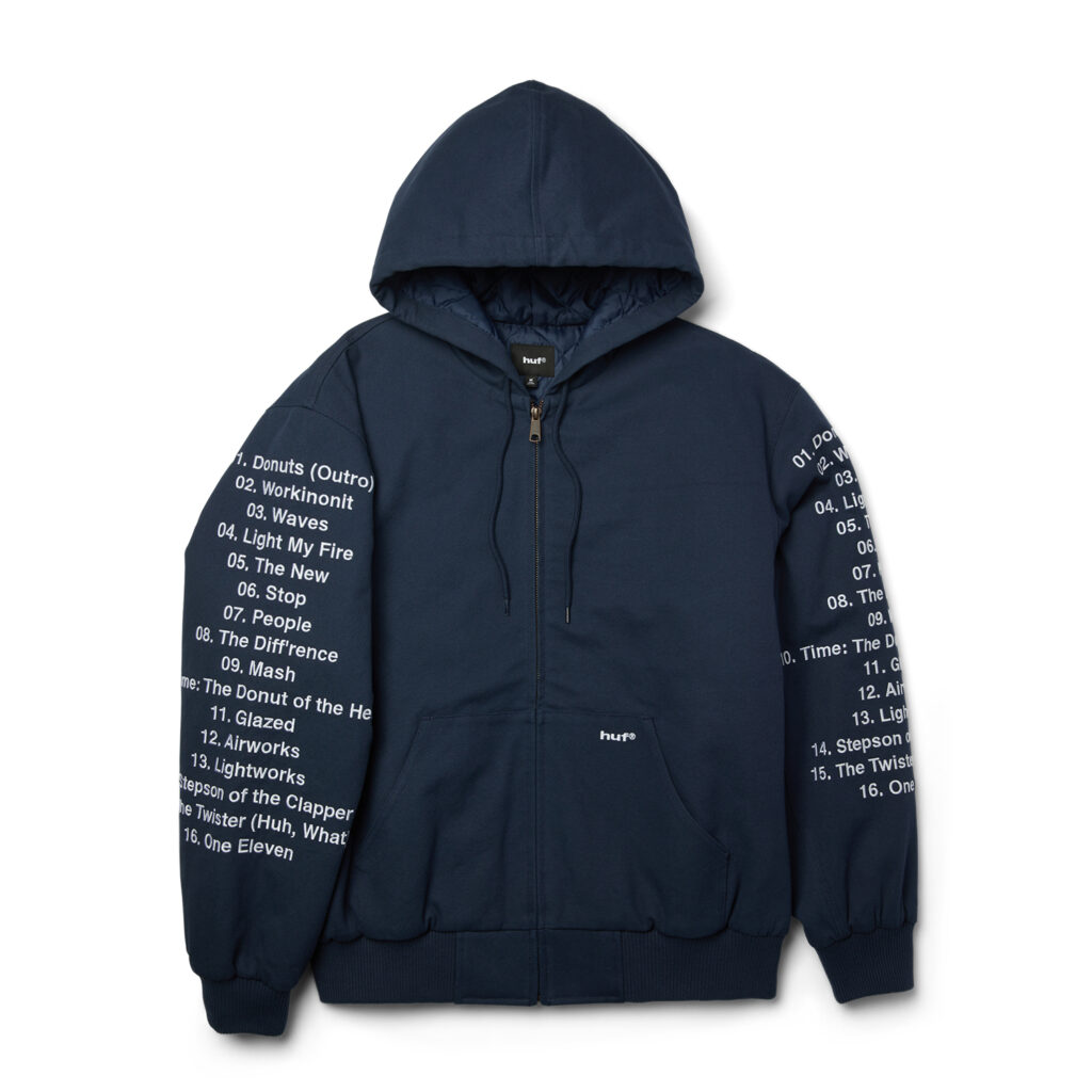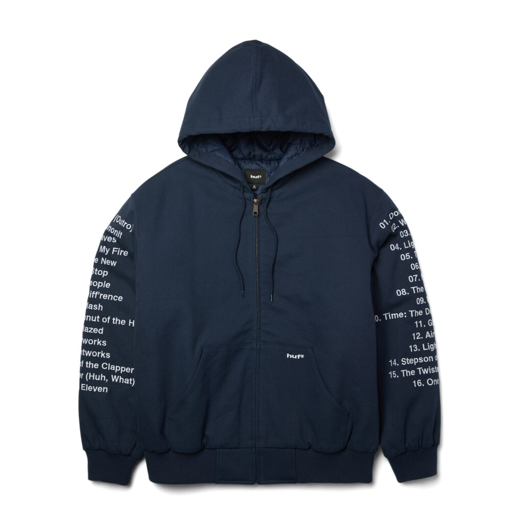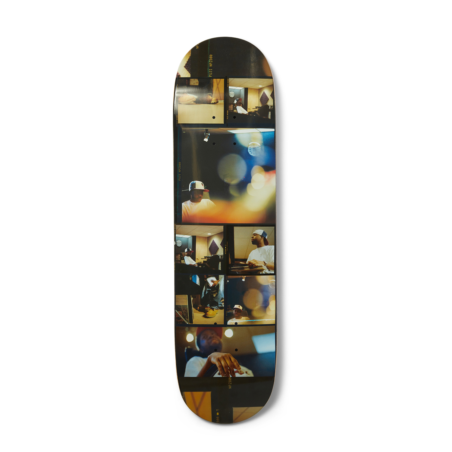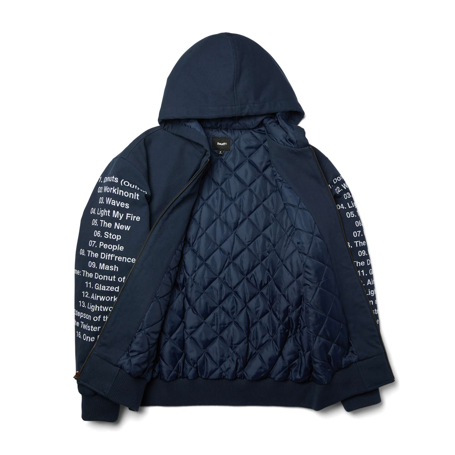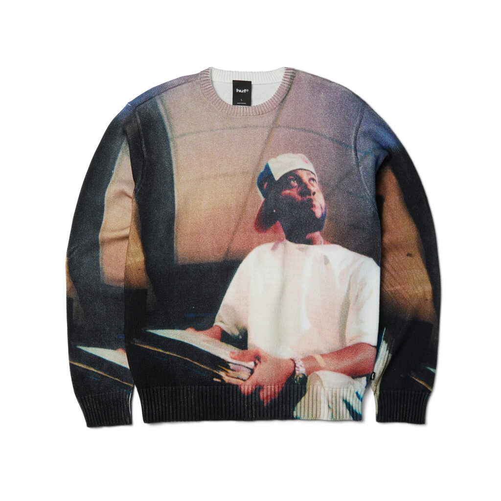 全体に刺繍アートワークと大胆なタイポグラフィを施したワークジャケット、ジャカード編みで全面アートワークを表現したセーター、プルオーバーフーディー、カスタムTシャツ2型、折りたたみ式レコードクレート、フォトスケートデッキなどが登場している。