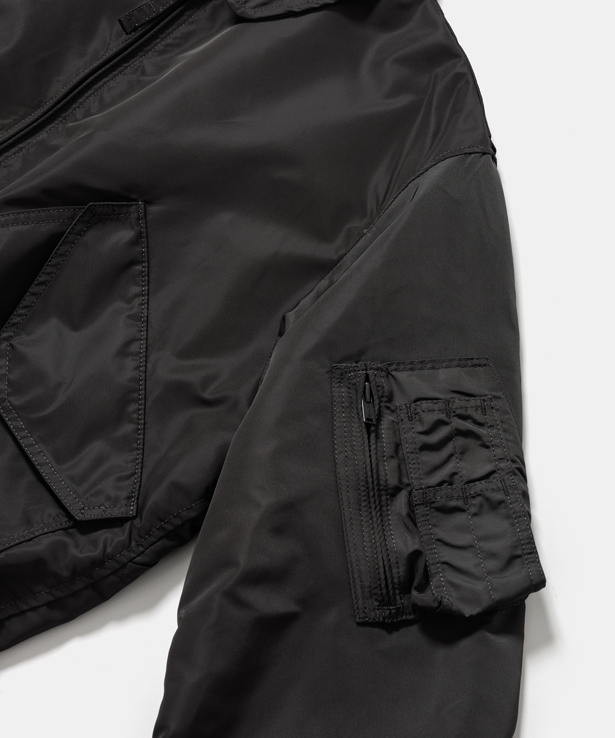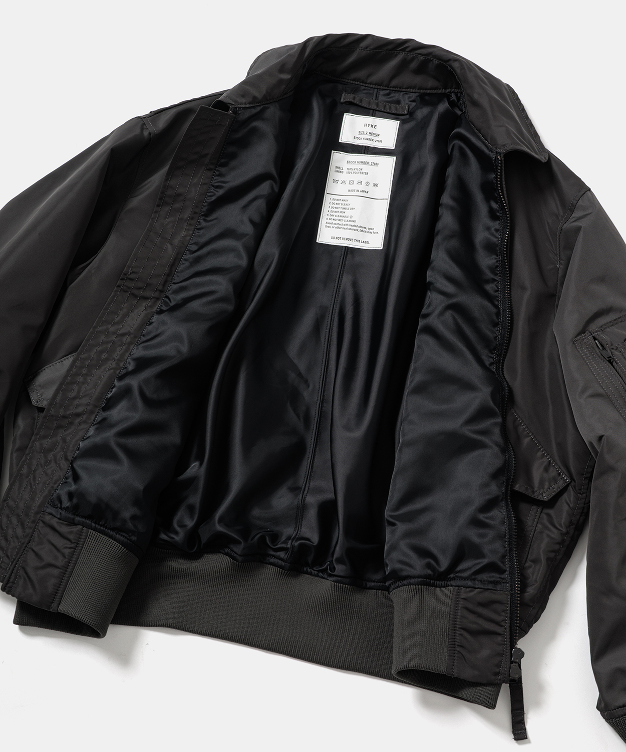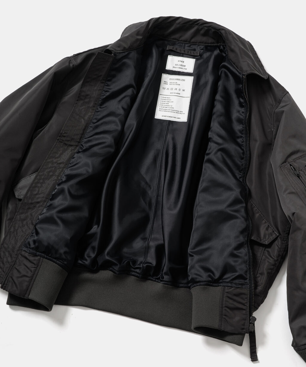今回は、HYKEの2025年秋冬コレクションで登場した『TYPE CWU-45/P JACKET』を中綿の入っていないライトなブルゾンへと再構築し、『TYPE CWU-36/P JACKET』として別注。