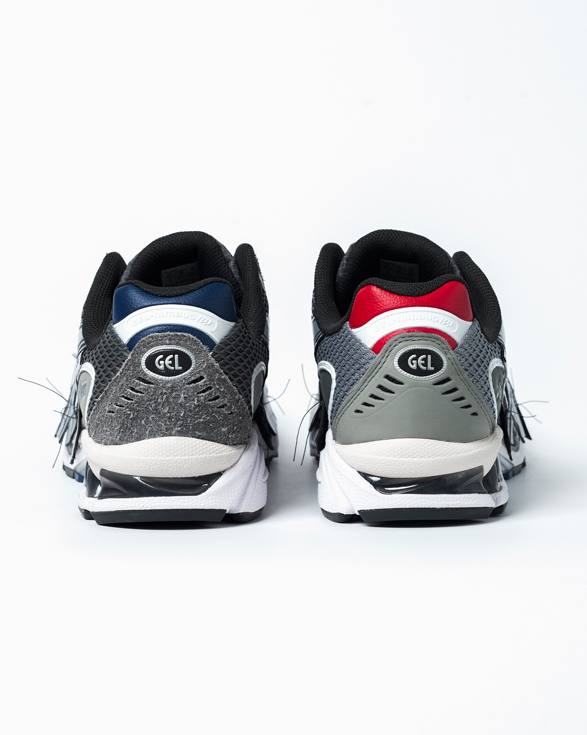 左右で異なるアッパーパネルの素材、糸がほつれたままのタイガーストライプなど、”HTTP 404”における”未完成の美学”というコンセプトはそのまま踏襲し、各ディティールへと落とし込んでいる。
