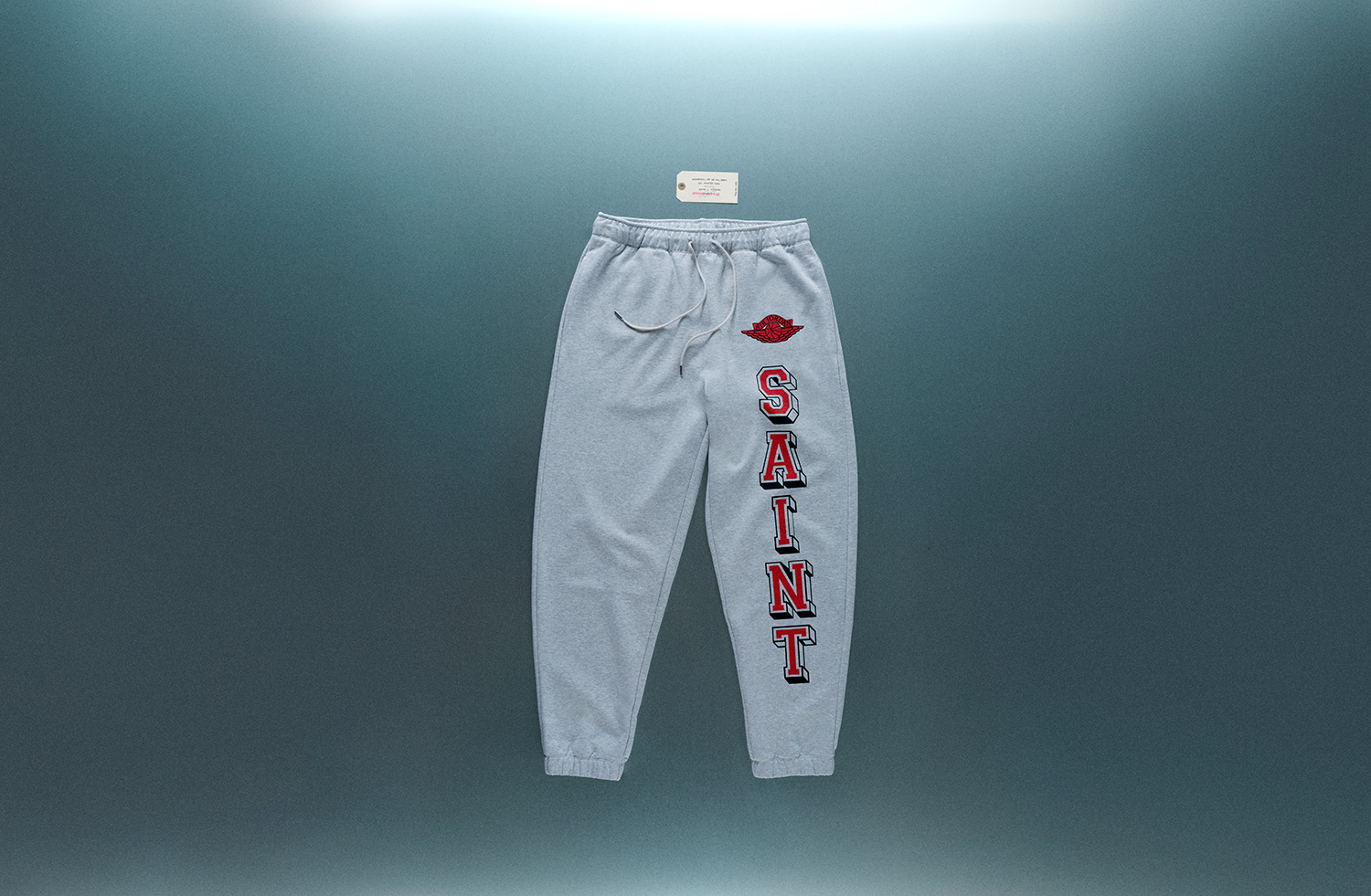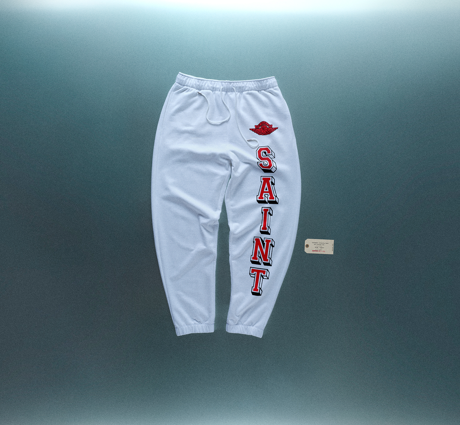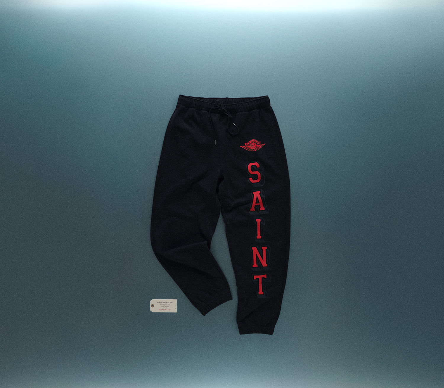 バーシティジャケット、キャップ、Tシャツ、フーディ、パンツがラインナップされており、バーシティジャケットは、©SAINT M××××××のイニシャルを反転させ、Michael Jordanを象徴する”23”の数字を想起させるフォルムとして表現。キャップには、両者のアイデンティティをひとつに融合させた”SAINT JORDAN”の文字を配した。