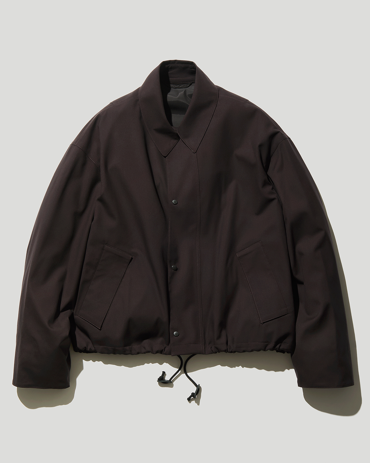 素材にはSUPER180’sのWOOL POPLINを採用し、滑らかなタッチと上品な光沢、さらりとした肌離れを備えた、軽やかでシックな表情に仕上げた。