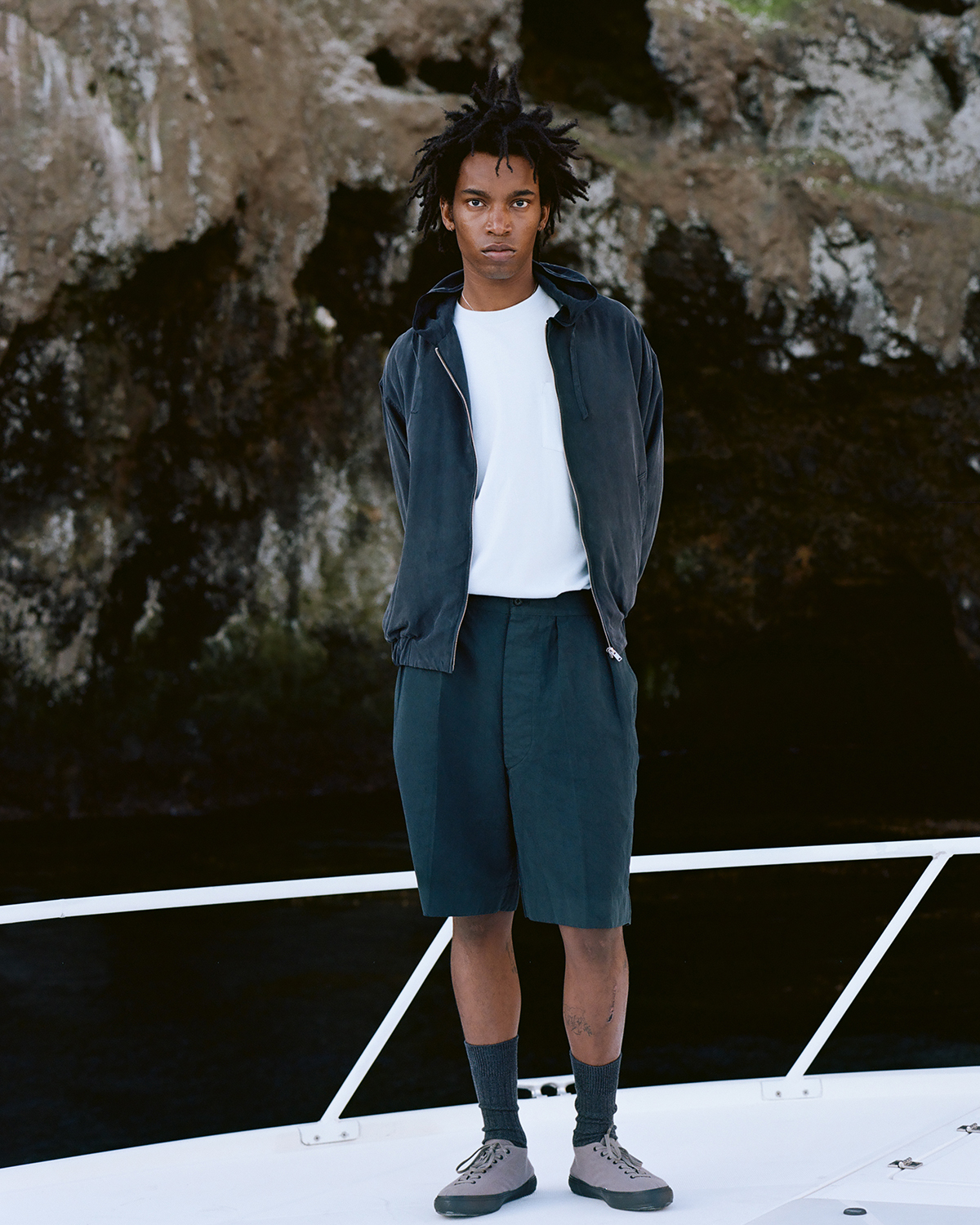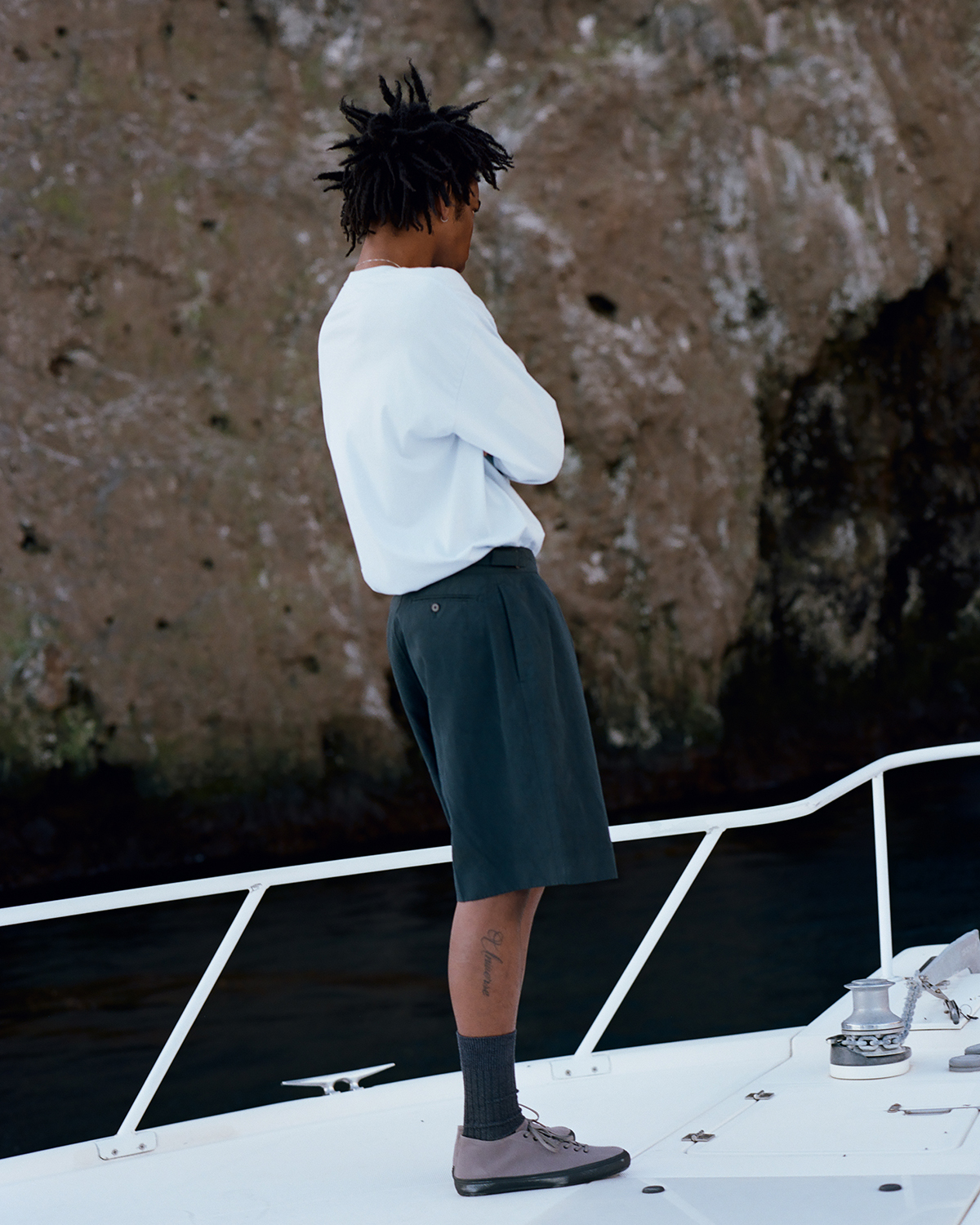 2015年にロサンゼルスで設立されたLADY WHITE COMPANYだが、KAPTAIN SUNSHINEとの初のタッグではジャケット、カットソー、パンツ、レザーポーチなど、全6型のアイテムを製作。