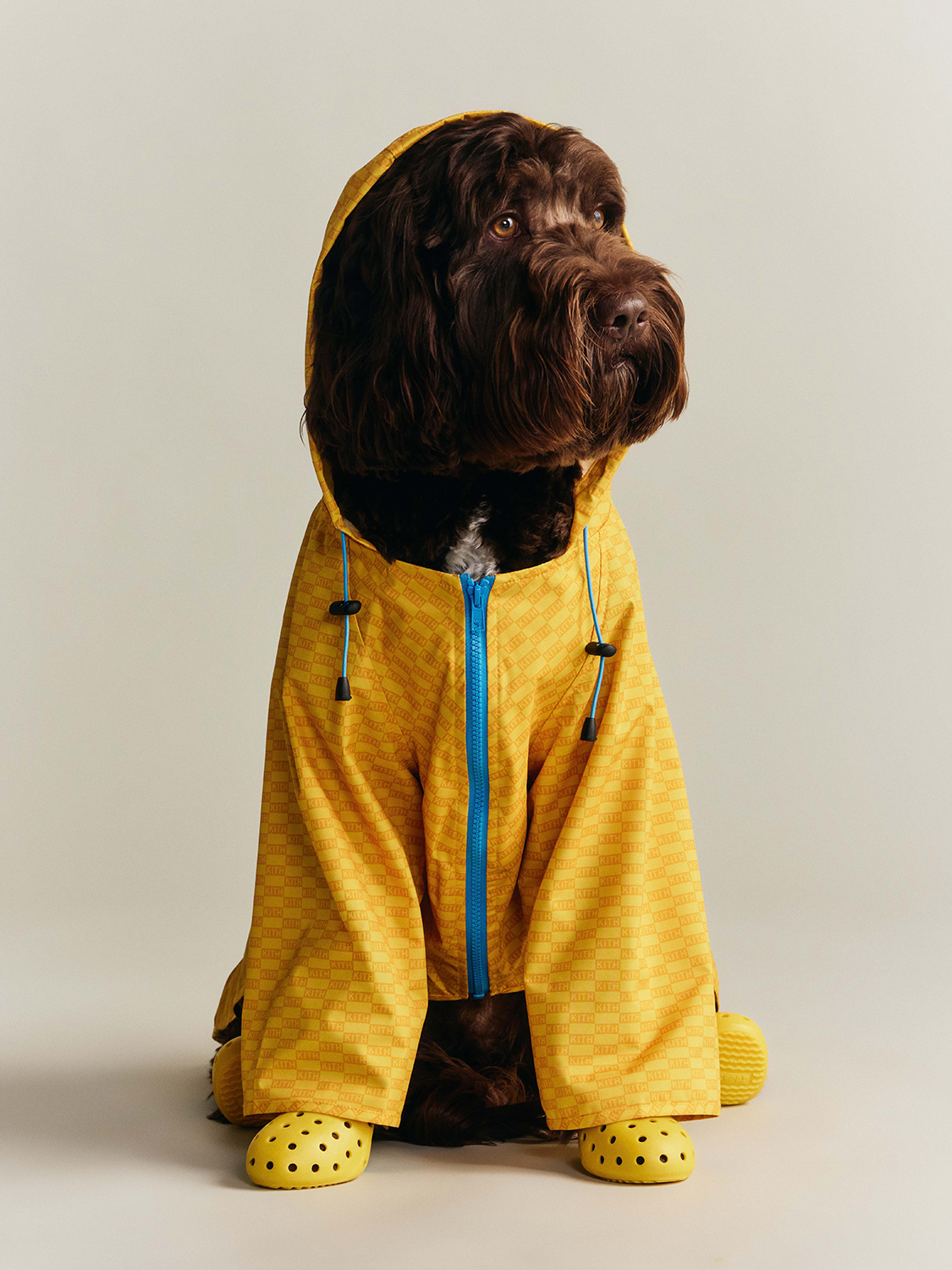 アパレルは、wagwearの機能性をベースとしたシルエットをKithならではの視点で再構築しており、あらゆるサイズの犬に対応。アスファルトの熱から愛犬の足を守るために設計された、暑い気候に適したwagwearのドッグブーツ『WagWellies Mojave』もKithだけの特別仕様で登場する。