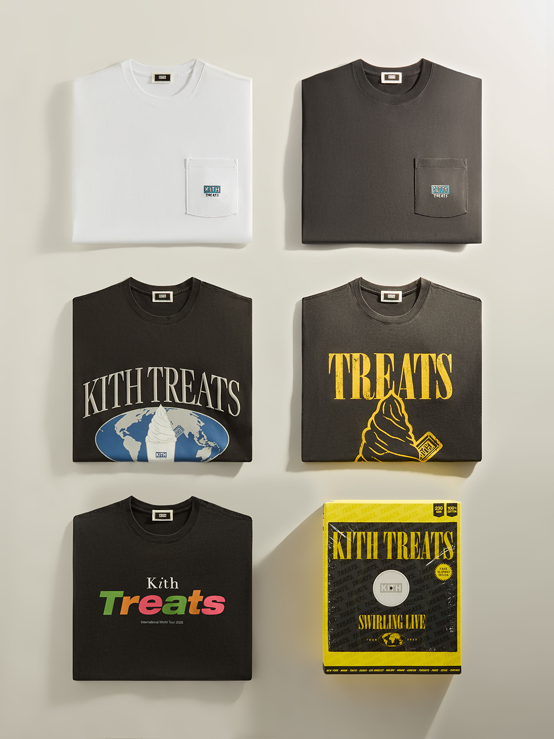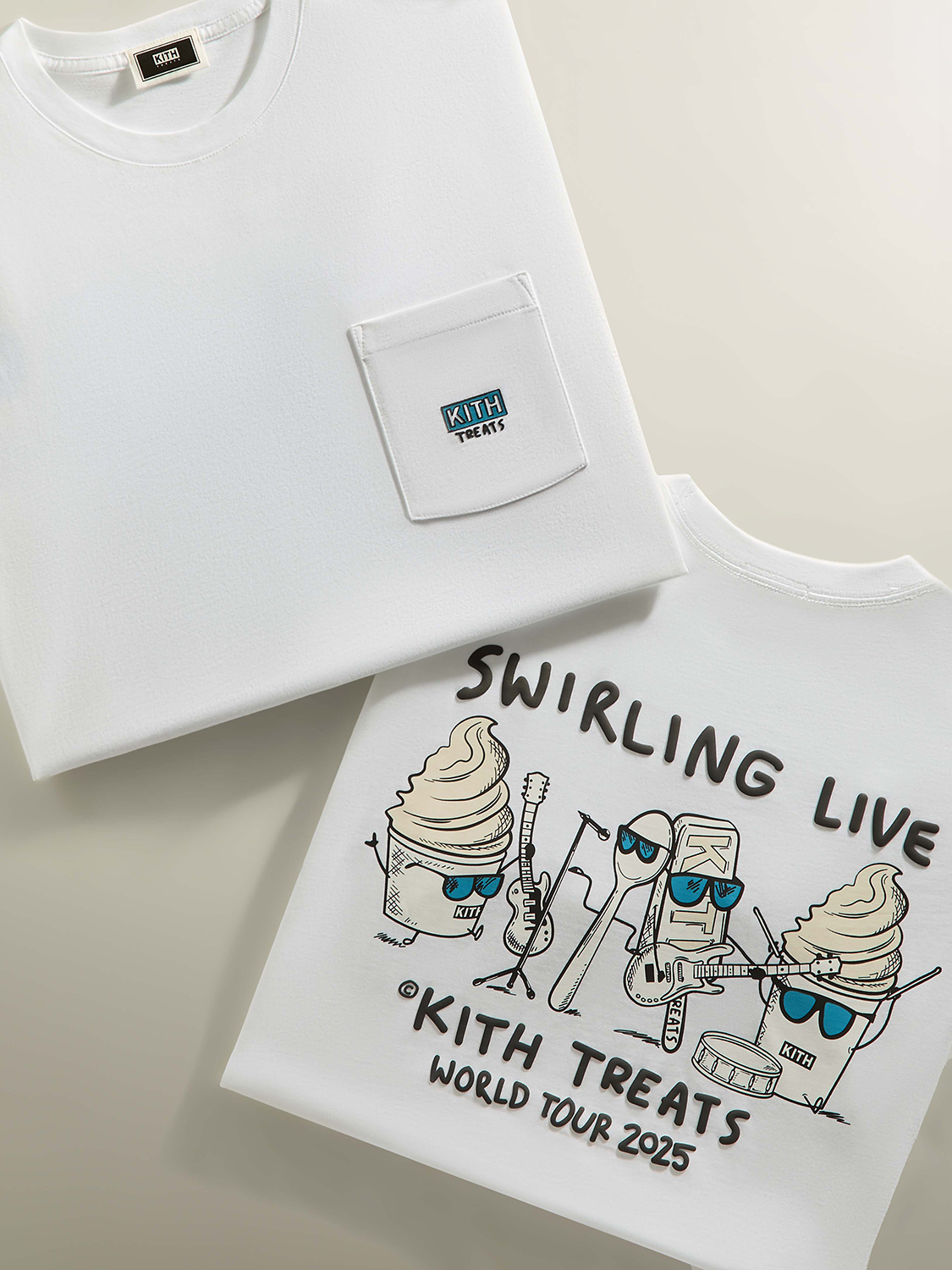ロックンロールを象徴するアイコニックなビジュアルを落とし込んだグラフィックTシャツと限定メニューで構成される『Treats Swirling Live』。