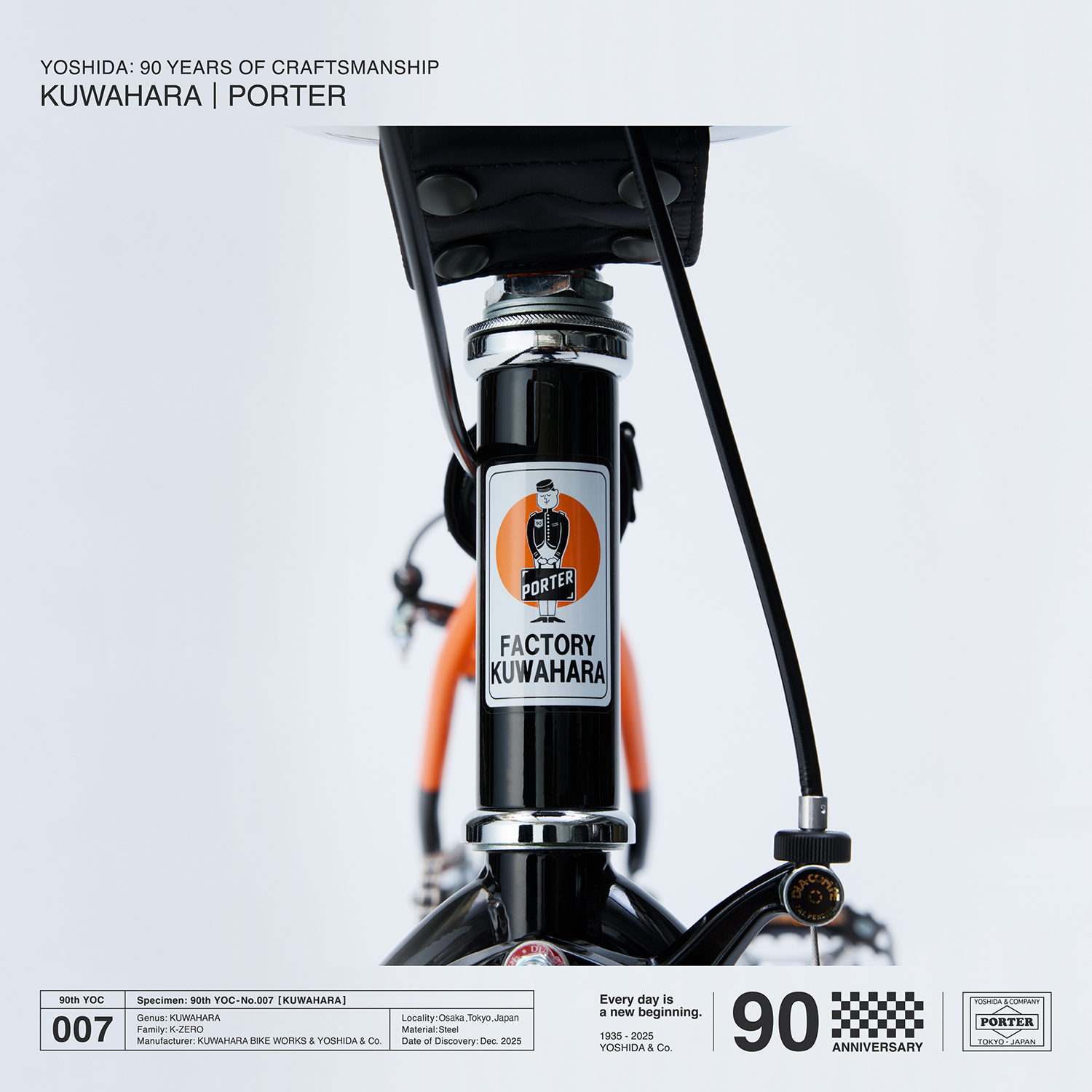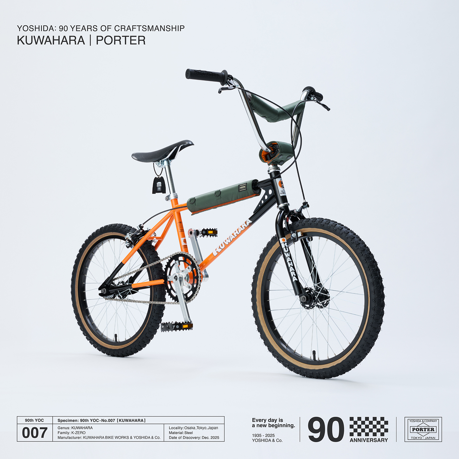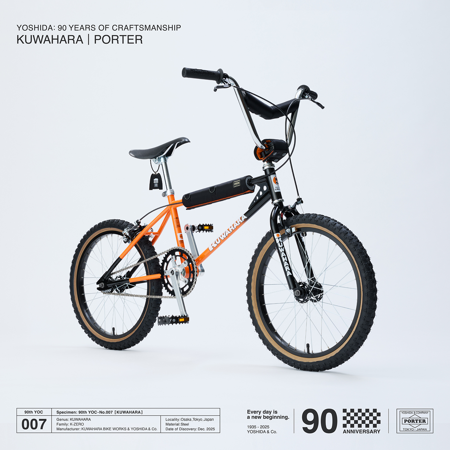 𠮷田カバンの創業90周年を記念して実現した今回のコラボレーションでは、KUWAHARAブランド最初のBMXといわれる『K-ZERO』を、PORTERだけのオリジナル仕様にアレンジ。