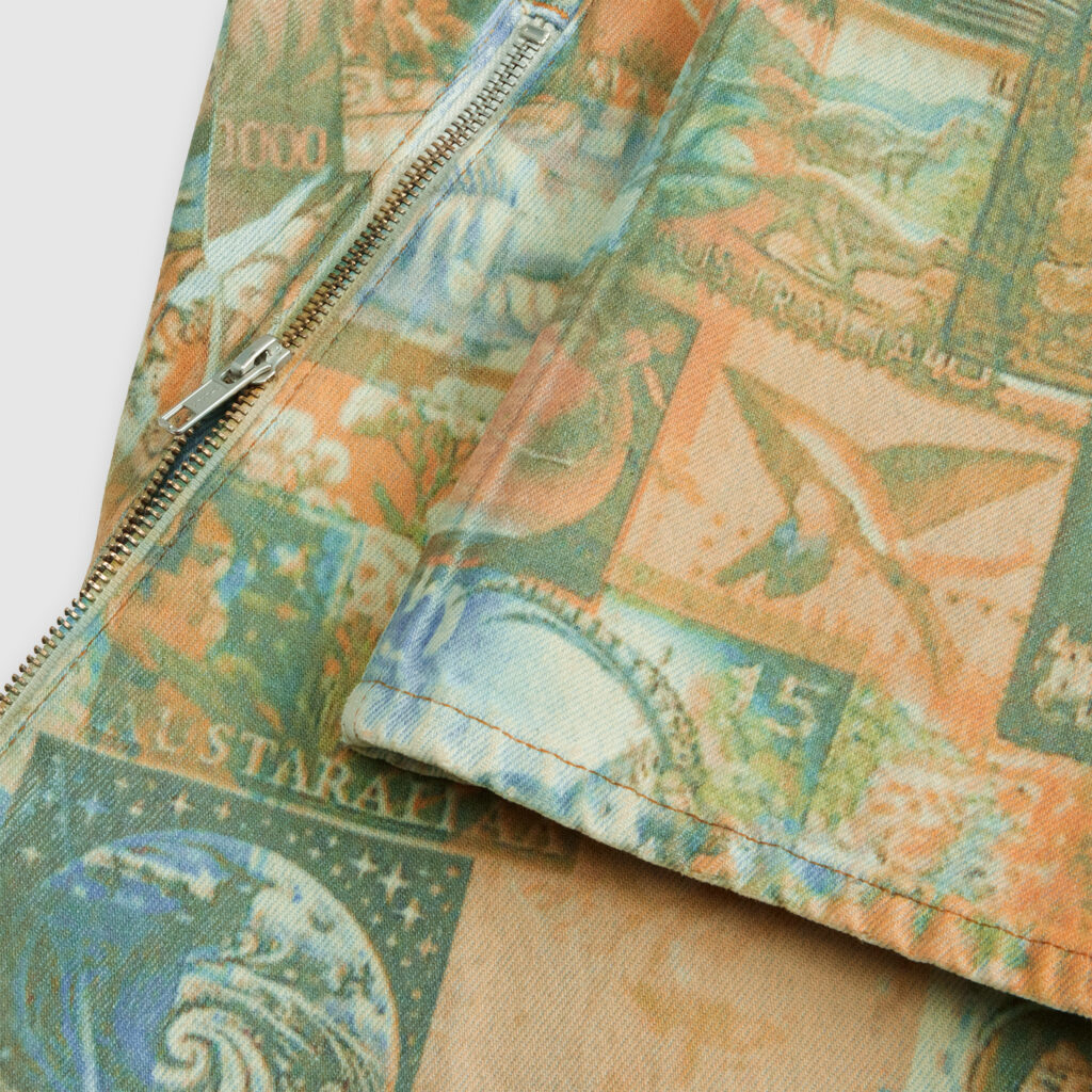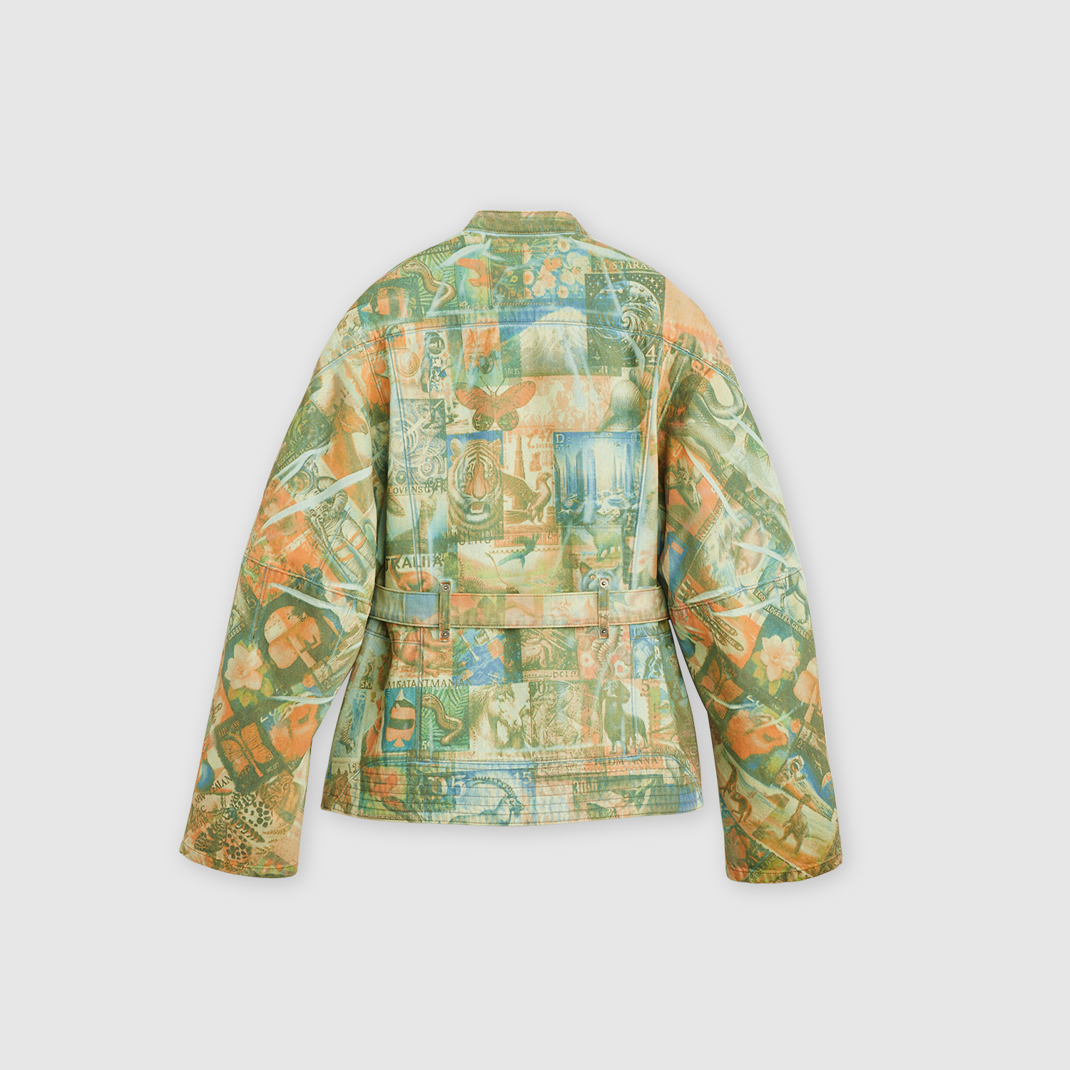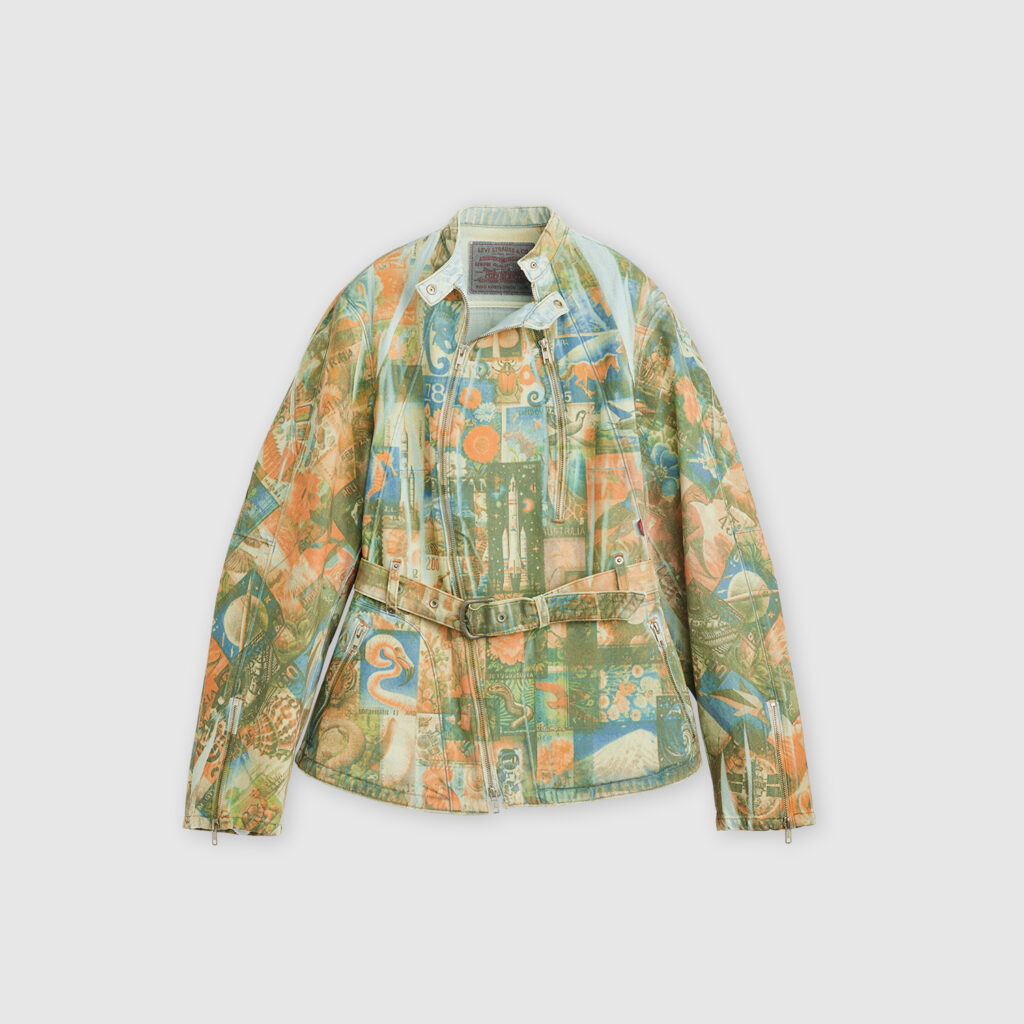 ヴィンテージの国際郵便切手が持つロマンティックな魅力に着想を得たコレクションでは、未来と過去を融合させながら、クラシックなデニムシルエットを再解釈。かつての通信手段の美しさを称えるオリジナルのアートワークが特徴となったデニムジャケット、フレアジーンズ、Aラインのスカートパンツなどがラインナップされている。