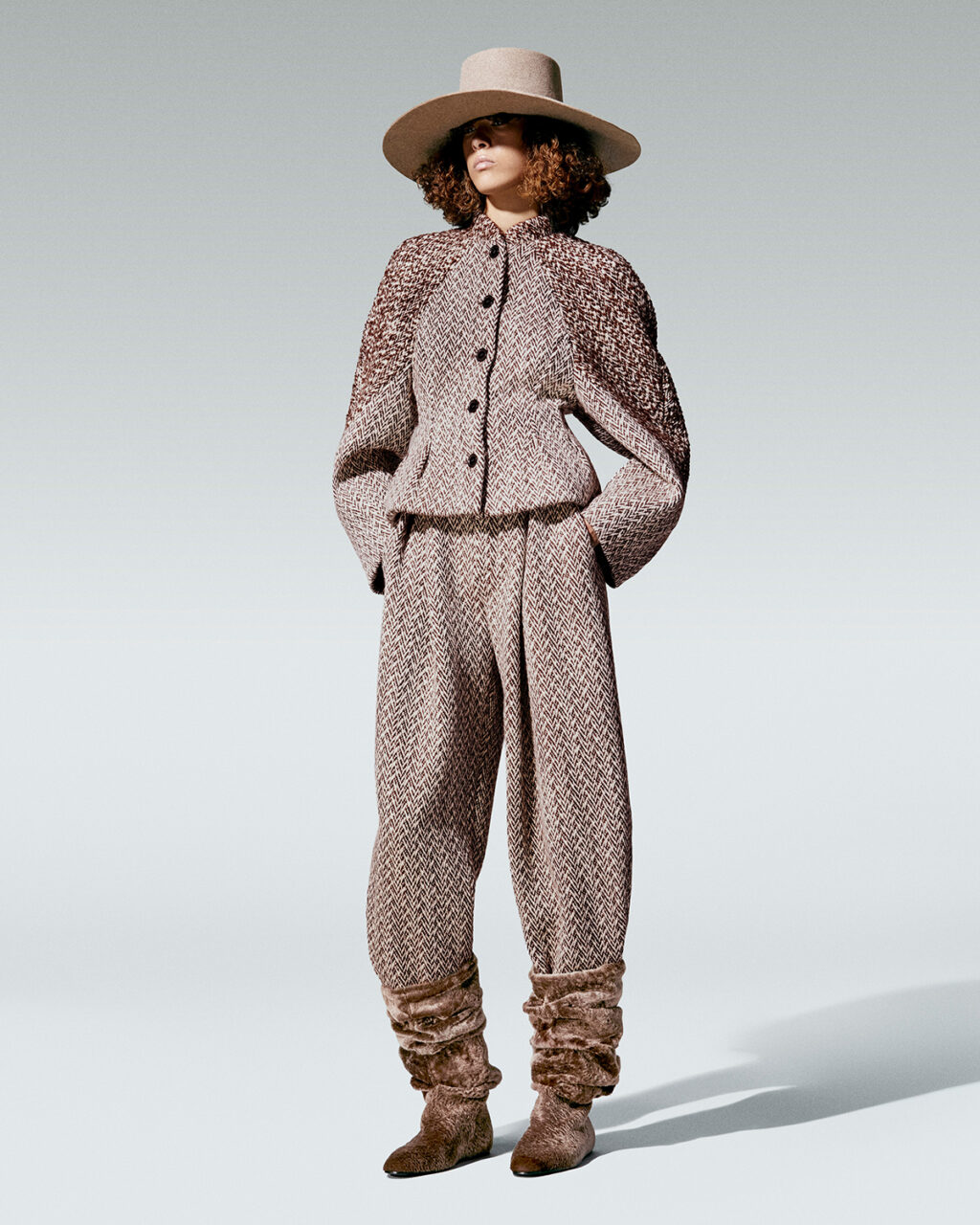 軽やかで精密なシルエットは、旅の途中で即興的に組み立てられたような質感を持ち、日記のページにさらりと書き留められたメモや思考のように自由な印象を漂わせる。