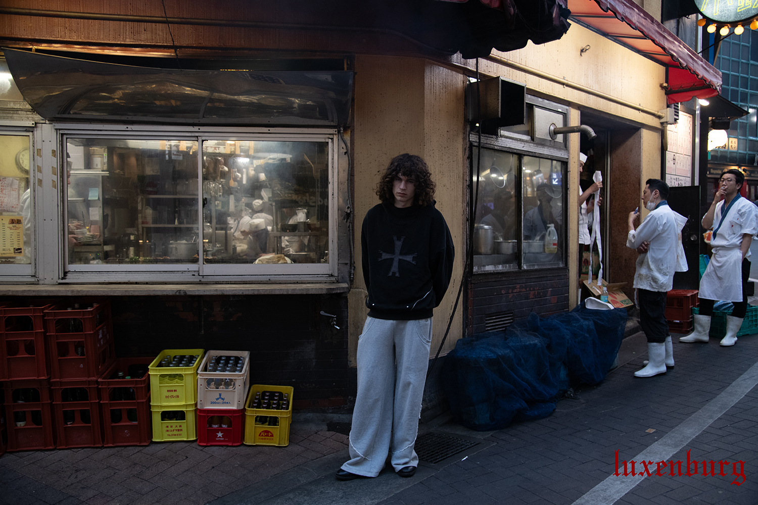 屋外での思索のためにデザインされたガーメンツは、東京の都市風景の中で新たな意味を見出す。