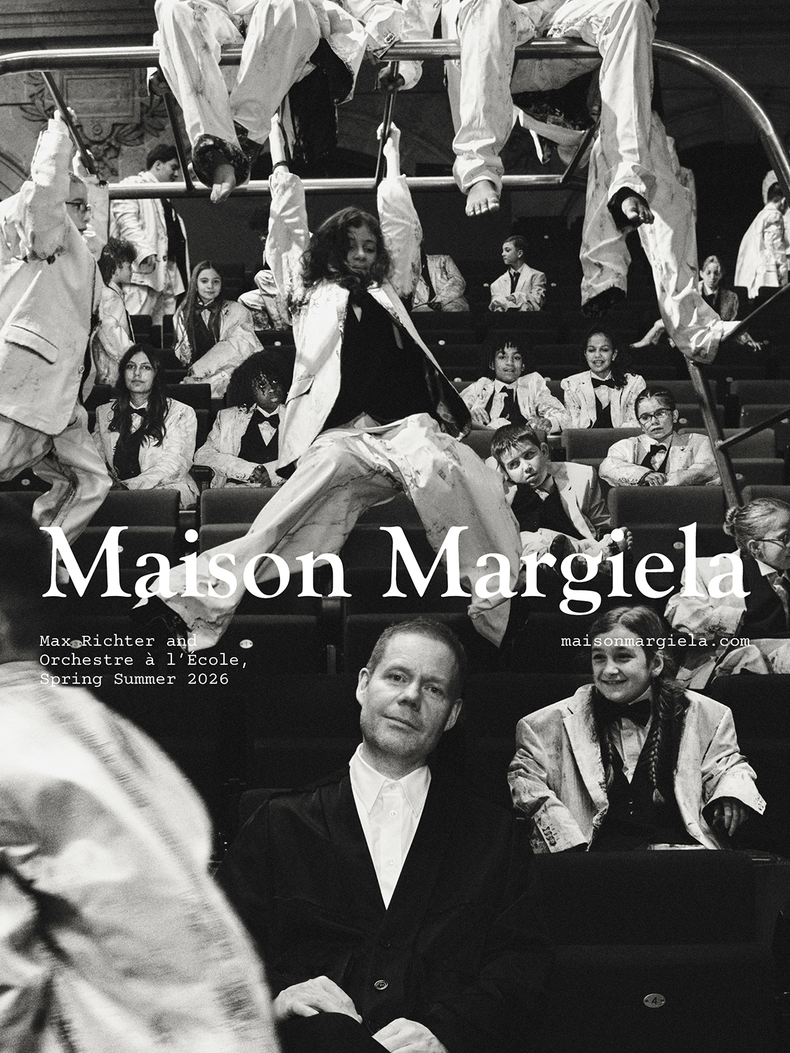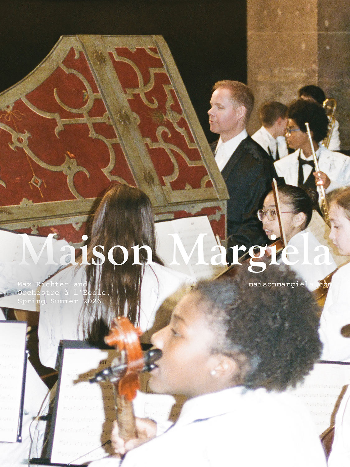 Maison Margielaの2026 Co-Ed Collectionから着想を得た本作には、作曲家でありピアニストのMax Richter(マックス・リヒター)と、オルケストル・ア・レコールに所属する43名の若い音楽家によるオーケストラが出演。