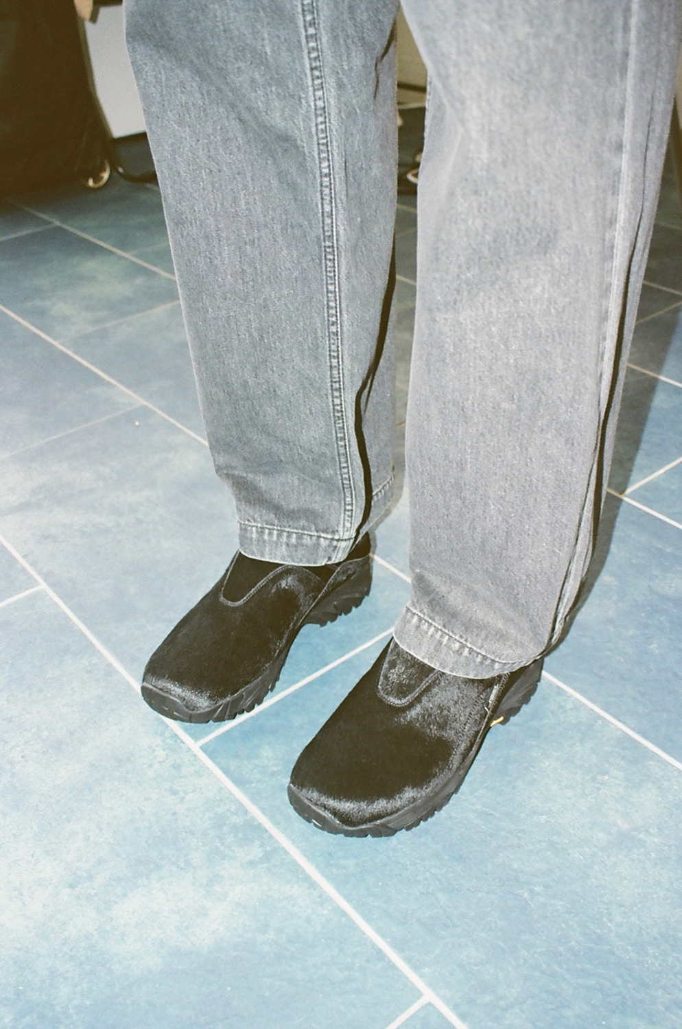 毛足の美しいカウレザーをアッパーに採用したミニマルなミュールタイプのシューズとなる本作。