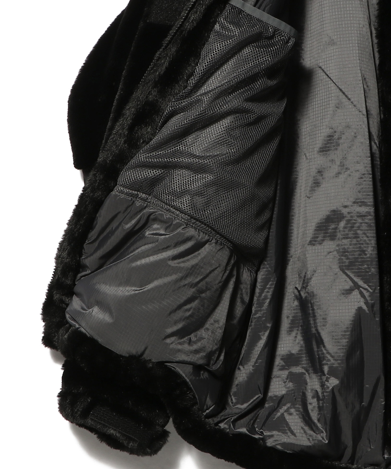 今回は、軽量なエコレザーを使用した『MONSTER PARKA』、ECOPEL社製のファーを使った『HAPPY JACKET』、ハイパワーストレッチナイロンを用いた『HAPPY PANTS』という全3型を製作。