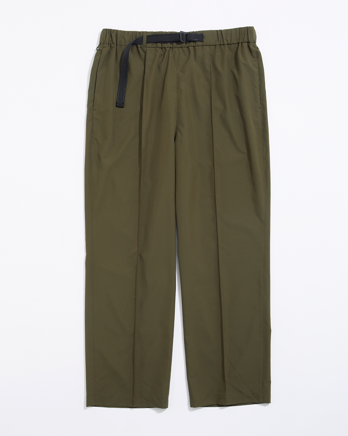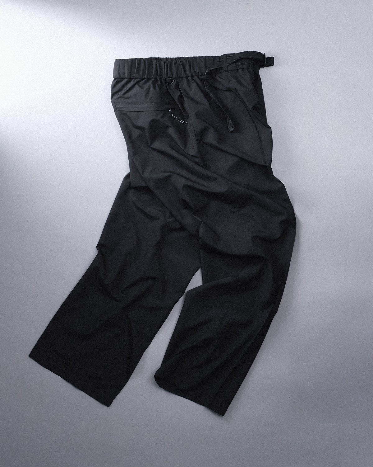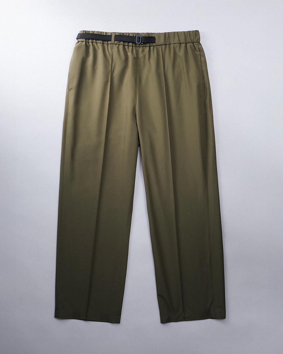 太すぎない適度なワイド感と微テーパードをかけ合わせたシルエットをベースに、アクティブに動いてもシルエットが崩れないようクリースステッチをプラスした。