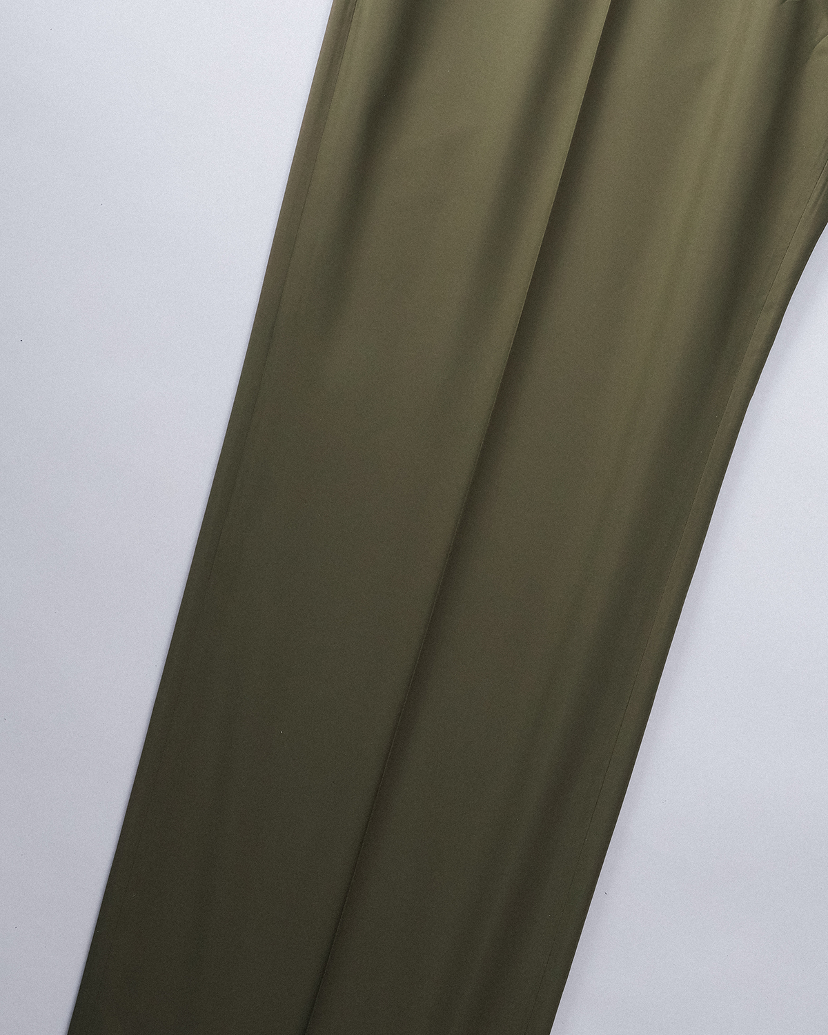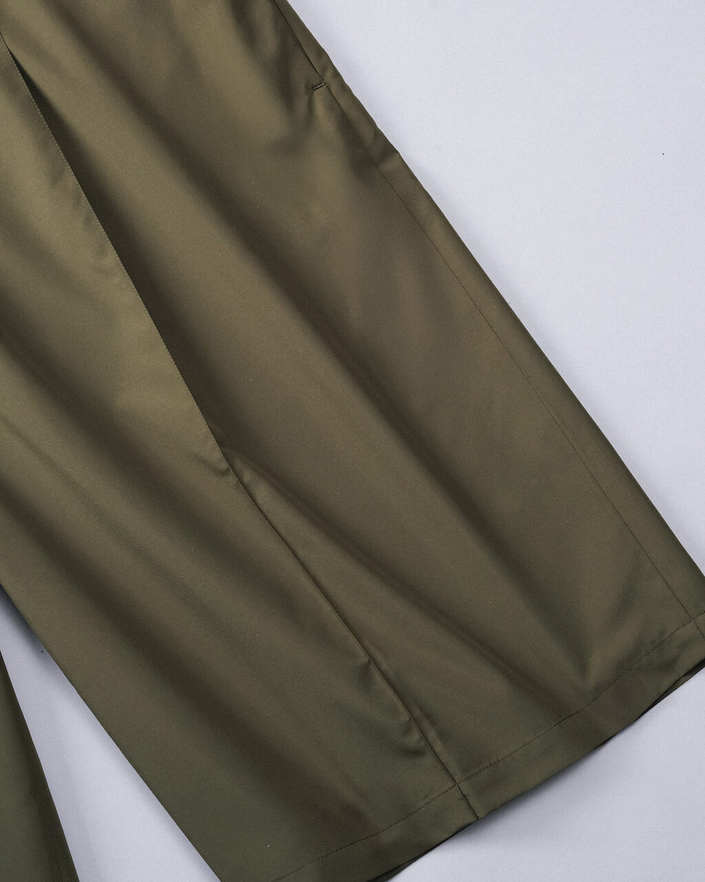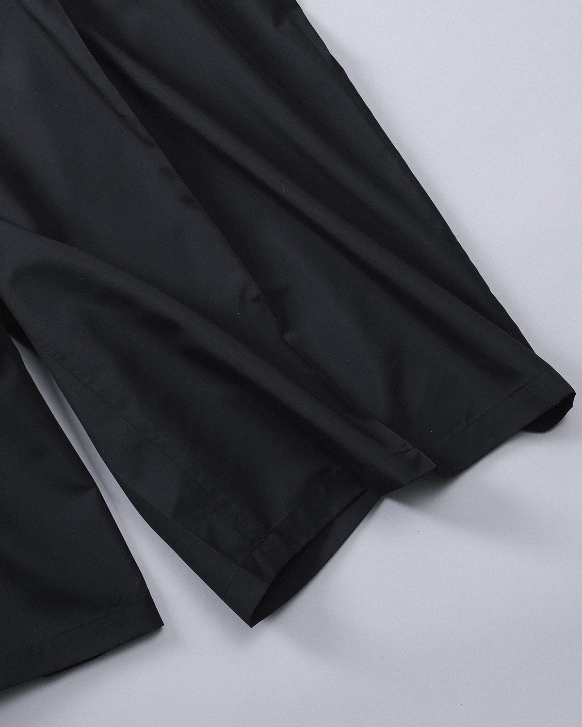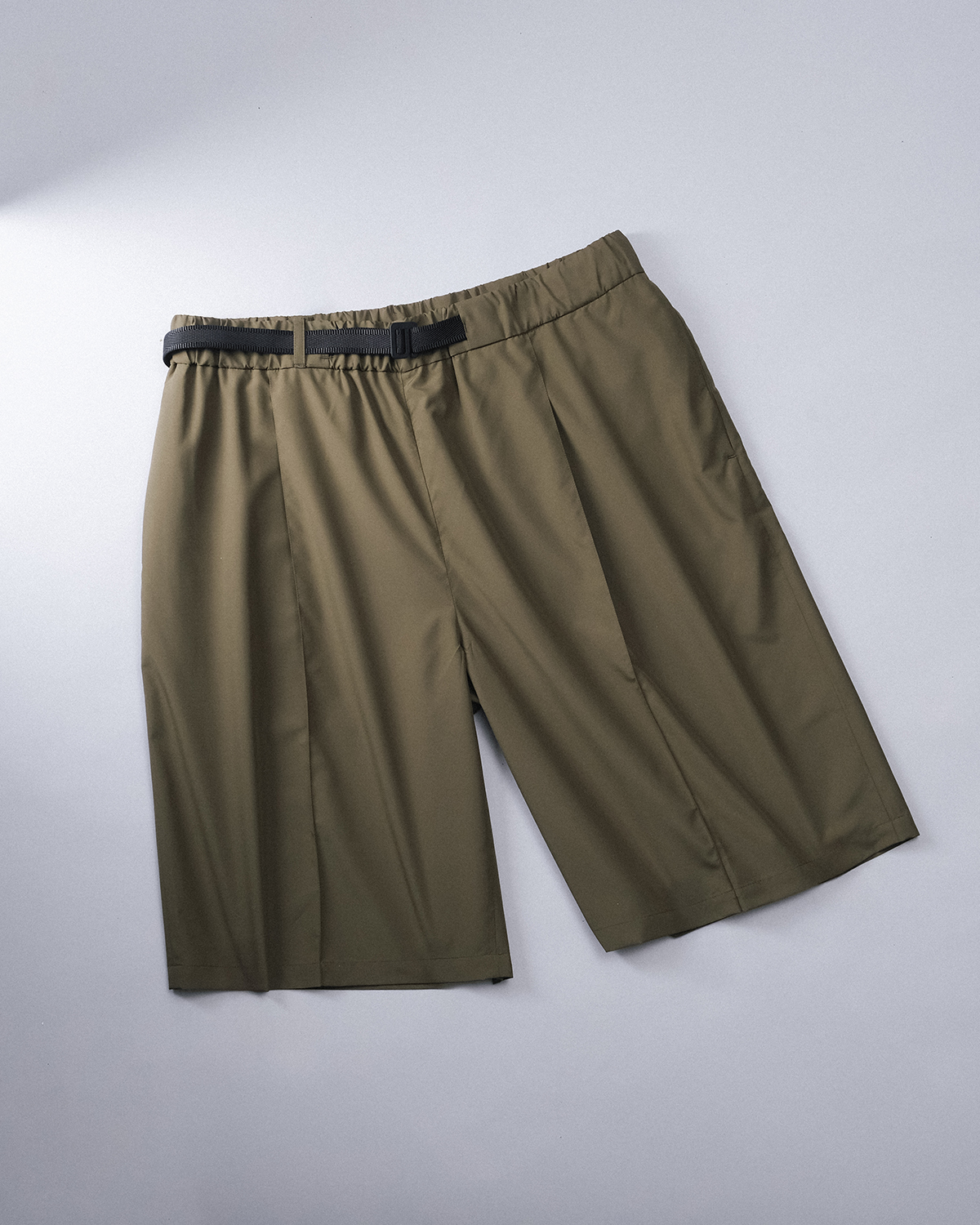 太すぎない適度なワイド感と微テーパードをかけ合わせたシルエットをベースに、アクティブに動いてもシルエットが崩れないようクリースステッチをプラスした。