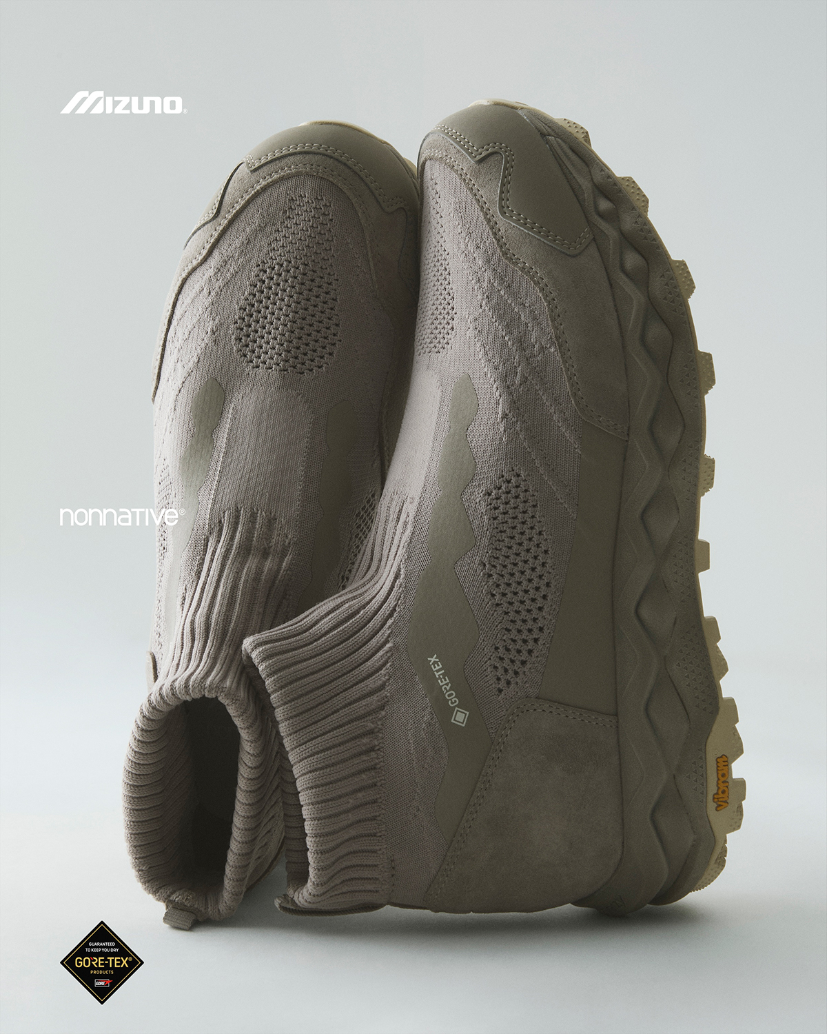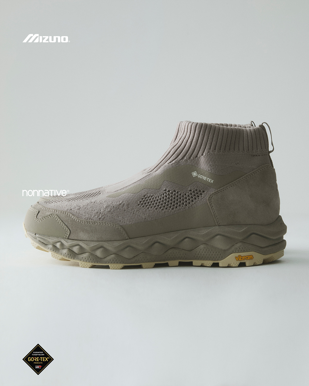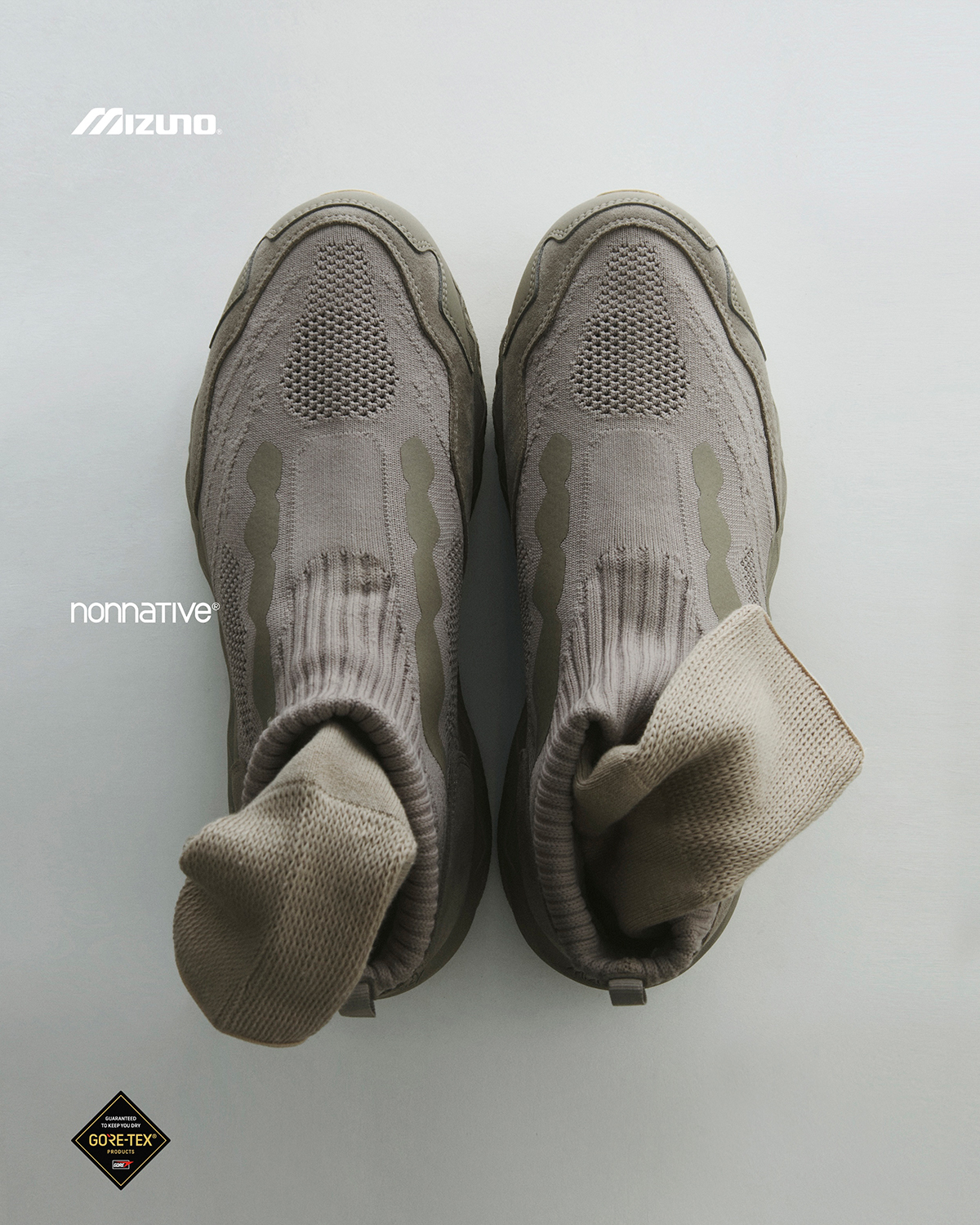 さらには、『WAVE MUJIN LS MID GTX nonnative』にあわせて作られたソックスも限定販売。こちらは、シューズカラーに合わせた配色をベースとしつつ、Vibram®社製のソールの象徴的なイエローをアクセントとして取り入れた。