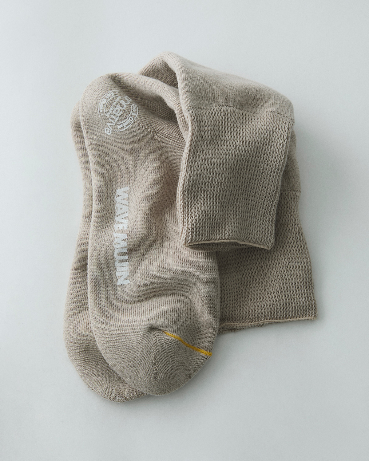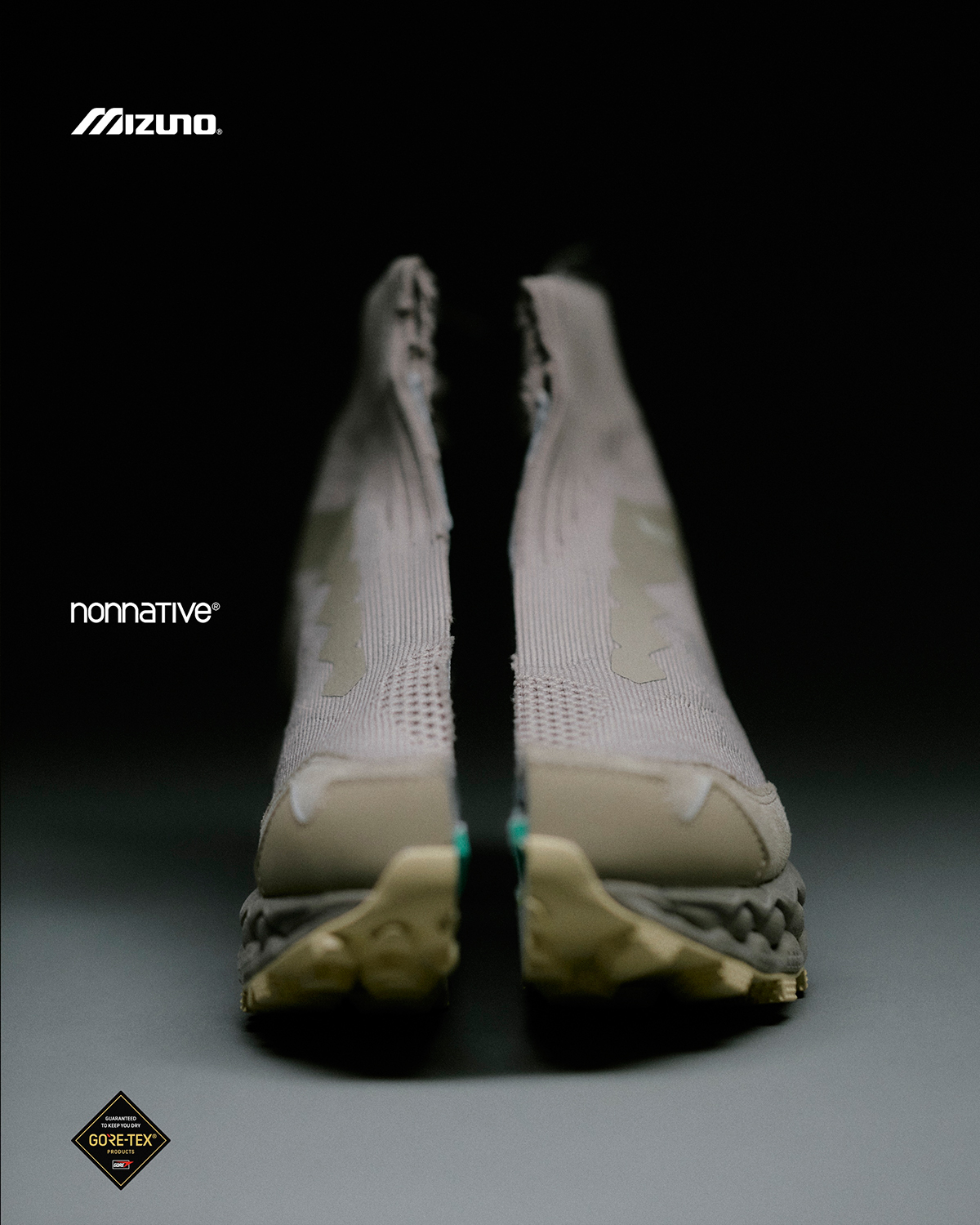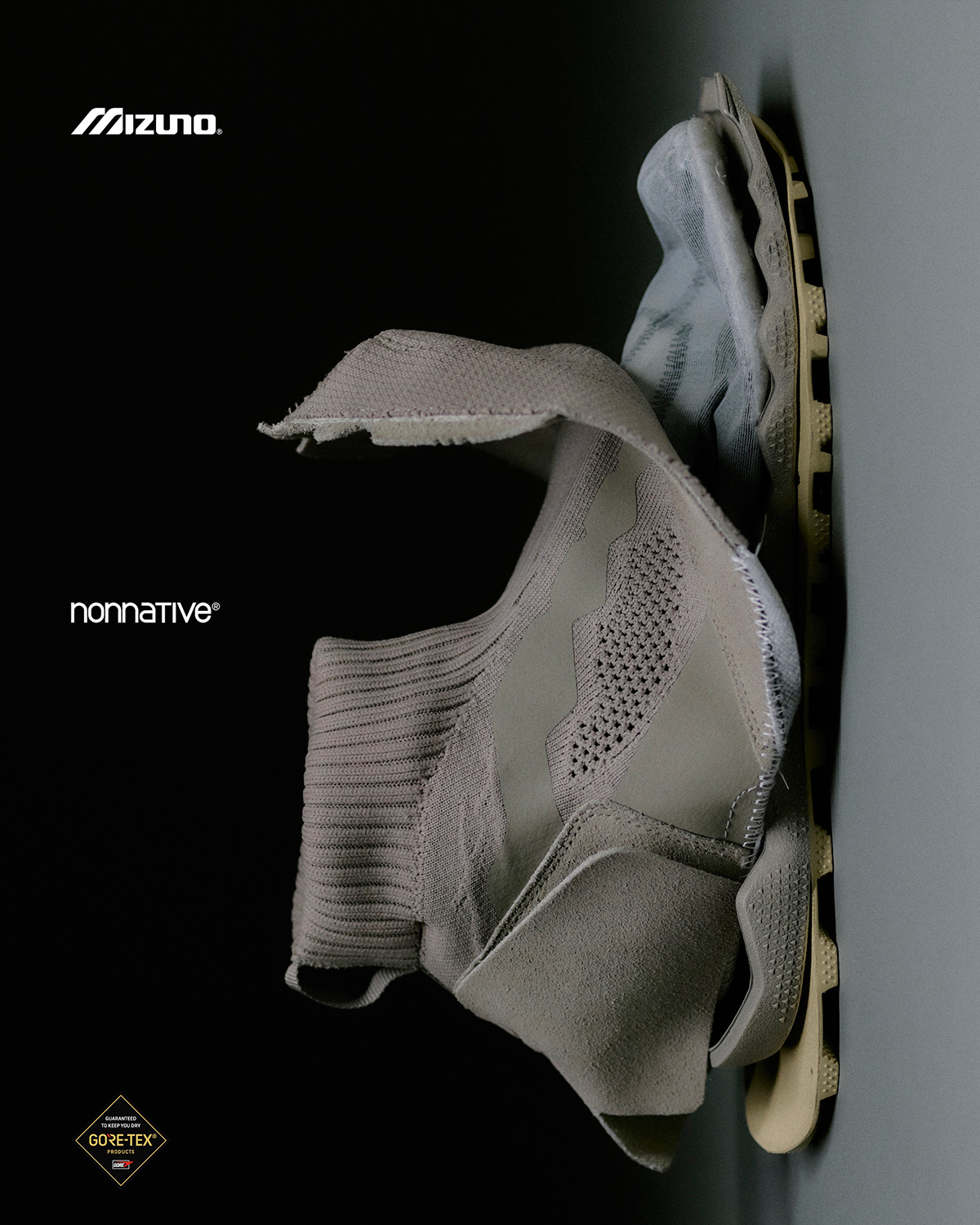 さらには、『WAVE MUJIN LS MID GTX nonnative』にあわせて作られたソックスも限定販売。こちらは、シューズカラーに合わせた配色をベースとしつつ、Vibram®社製のソールの象徴的なイエローをアクセントとして取り入れた。