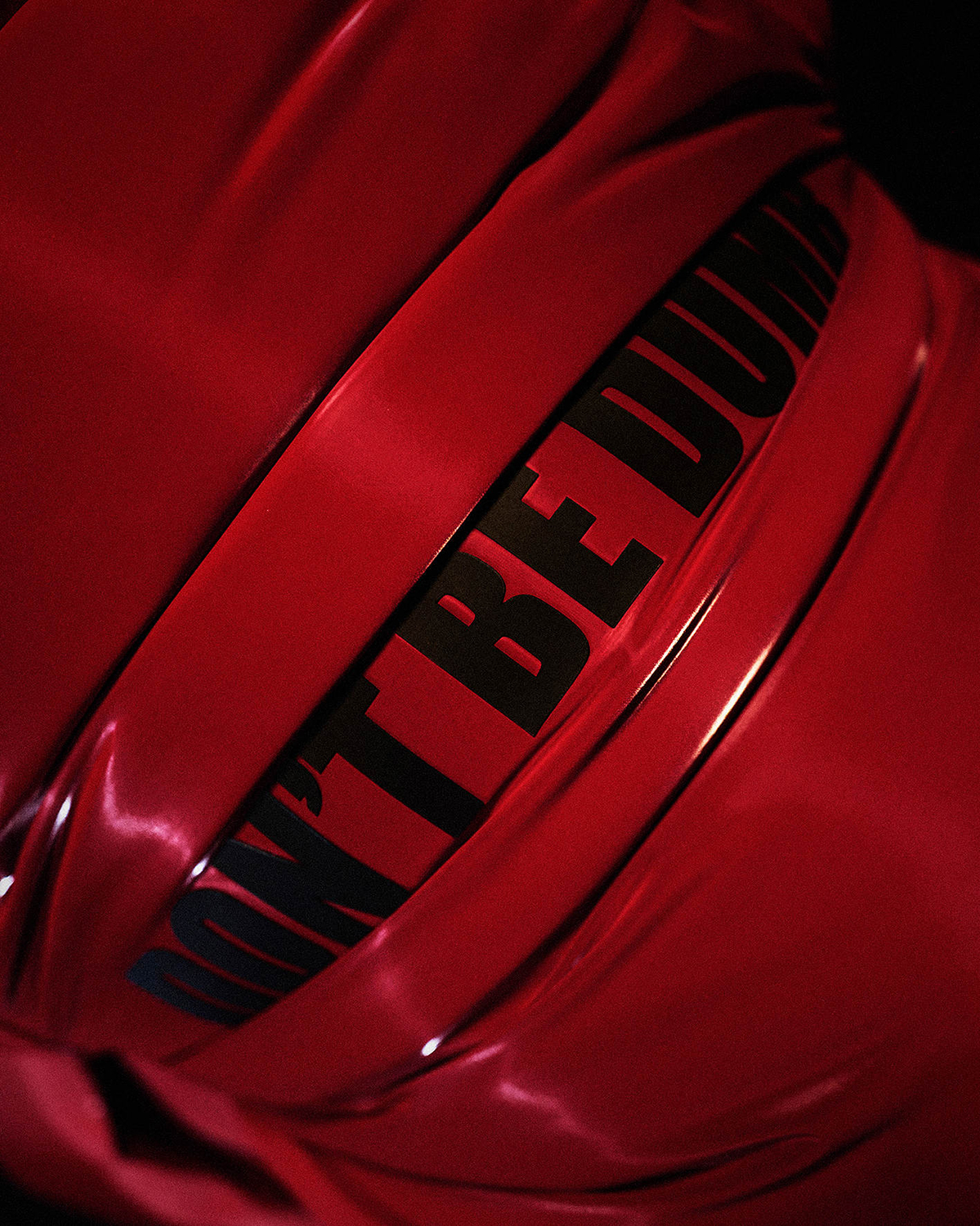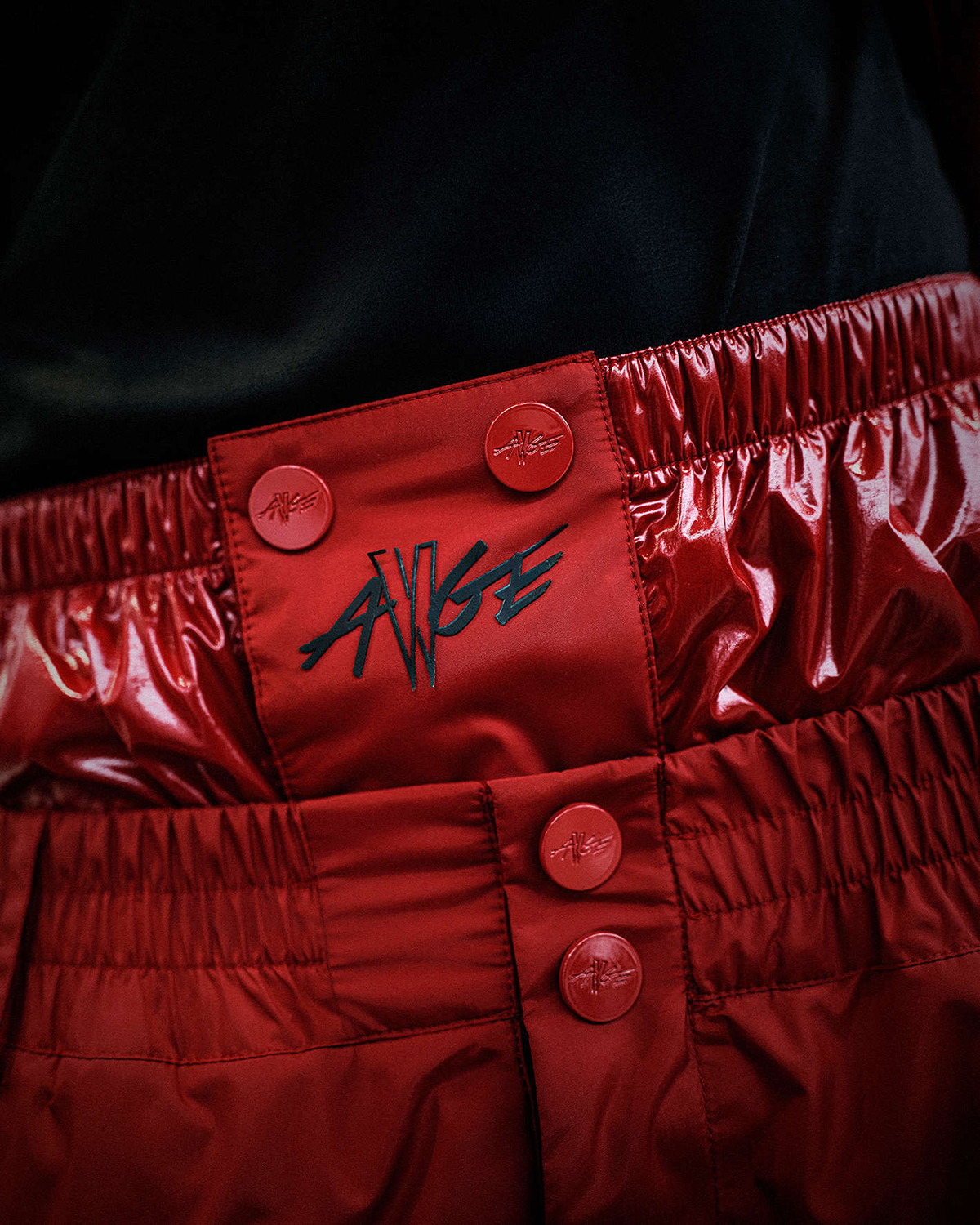 また、バックパッチにはA$AP Rockyのニューアルバム『Don’t Be Dum』のタイトルをあしらい、レイヤード仕様のウエストバンドパンツにはAWGEとMONCLERのロゴを配置。
