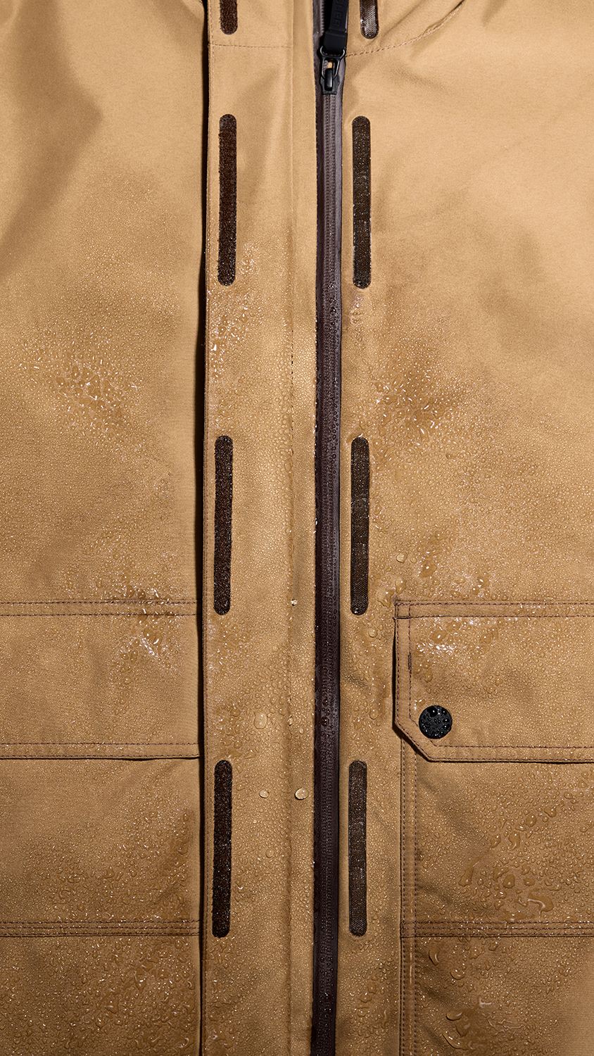 デニム、スウェード、フランネル、ギャバジンといったシティファブリックは、MONCLER GRENOBLEのリサーチと熟練の技術によって、マウンテン仕様のテクニカルな素材へと進化。