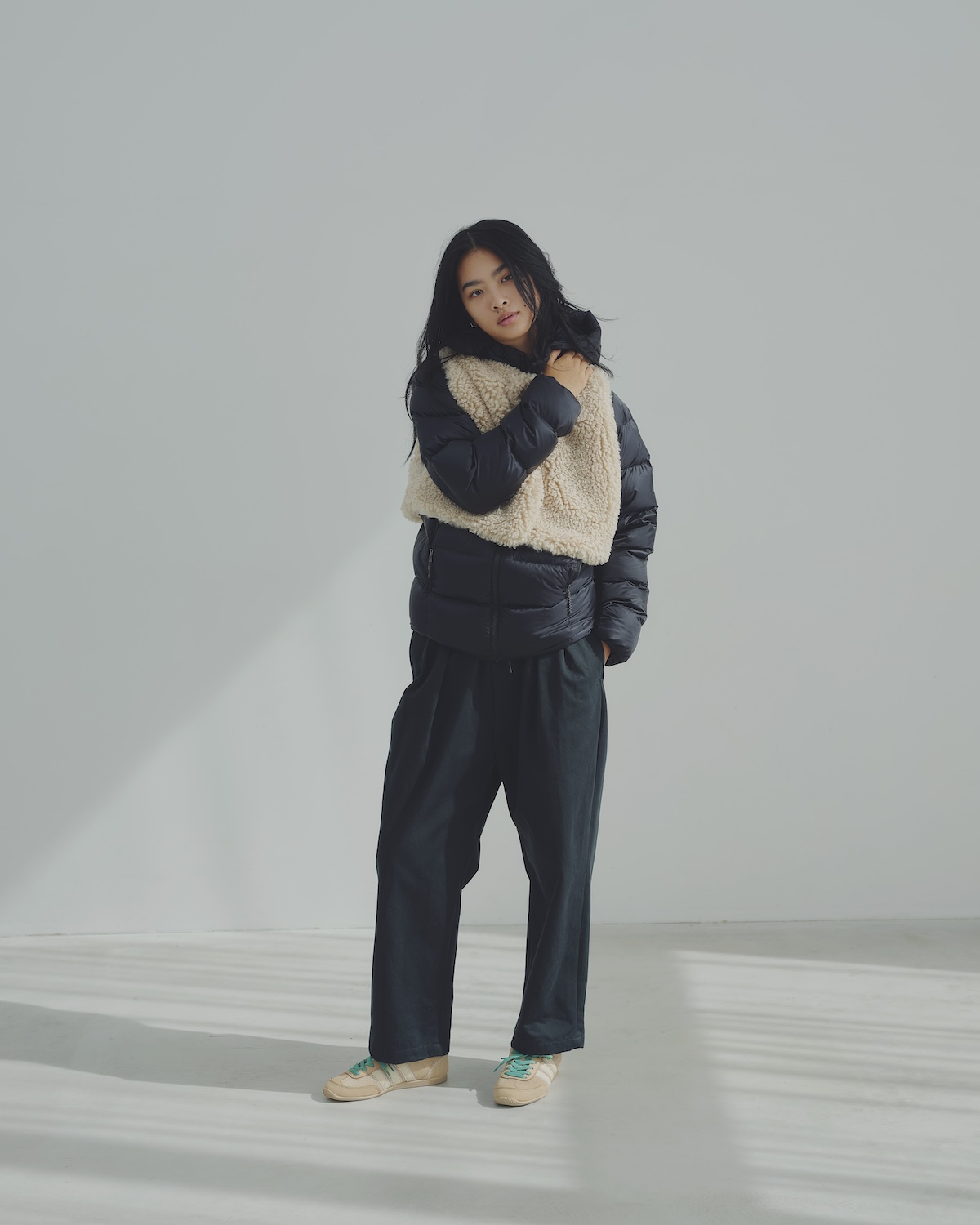 ブランドの定番である『NEAT CHINO』をベースとした『EASY NEAT CHINO』は、ウエスト部分にゴムとドローコードを備えた仕様に変更。マーベルトも省略し、極力シンプルなデザインに仕上げた。