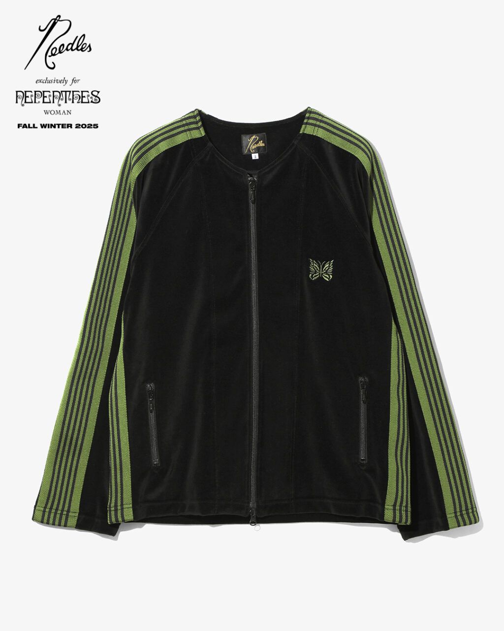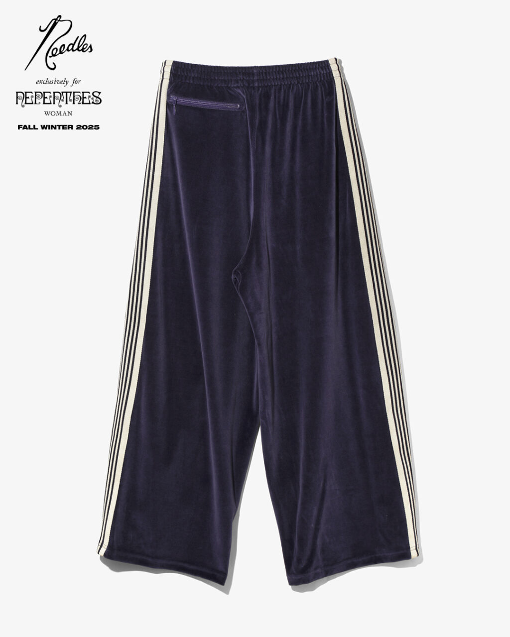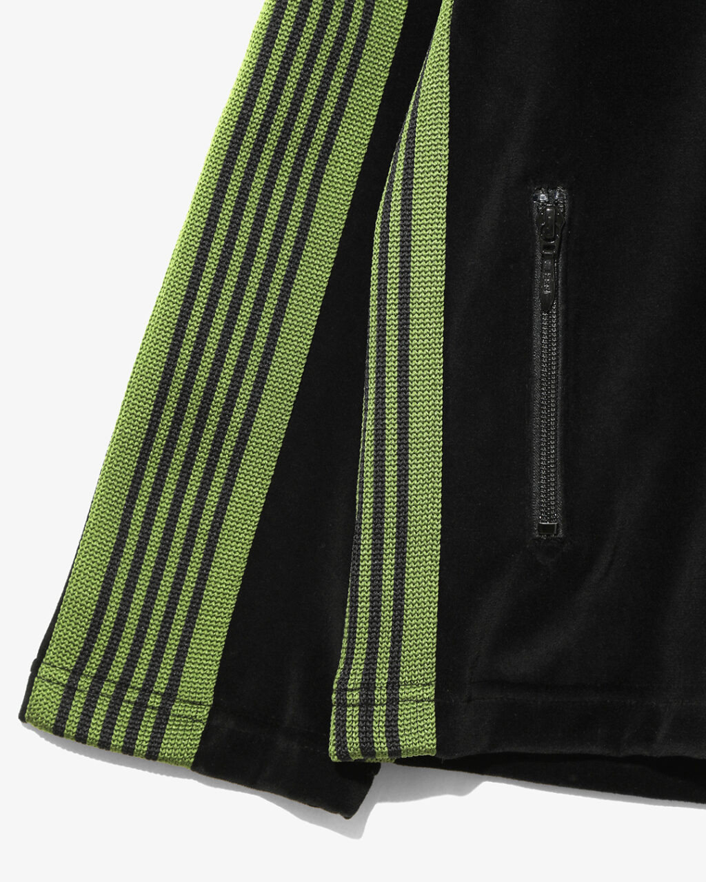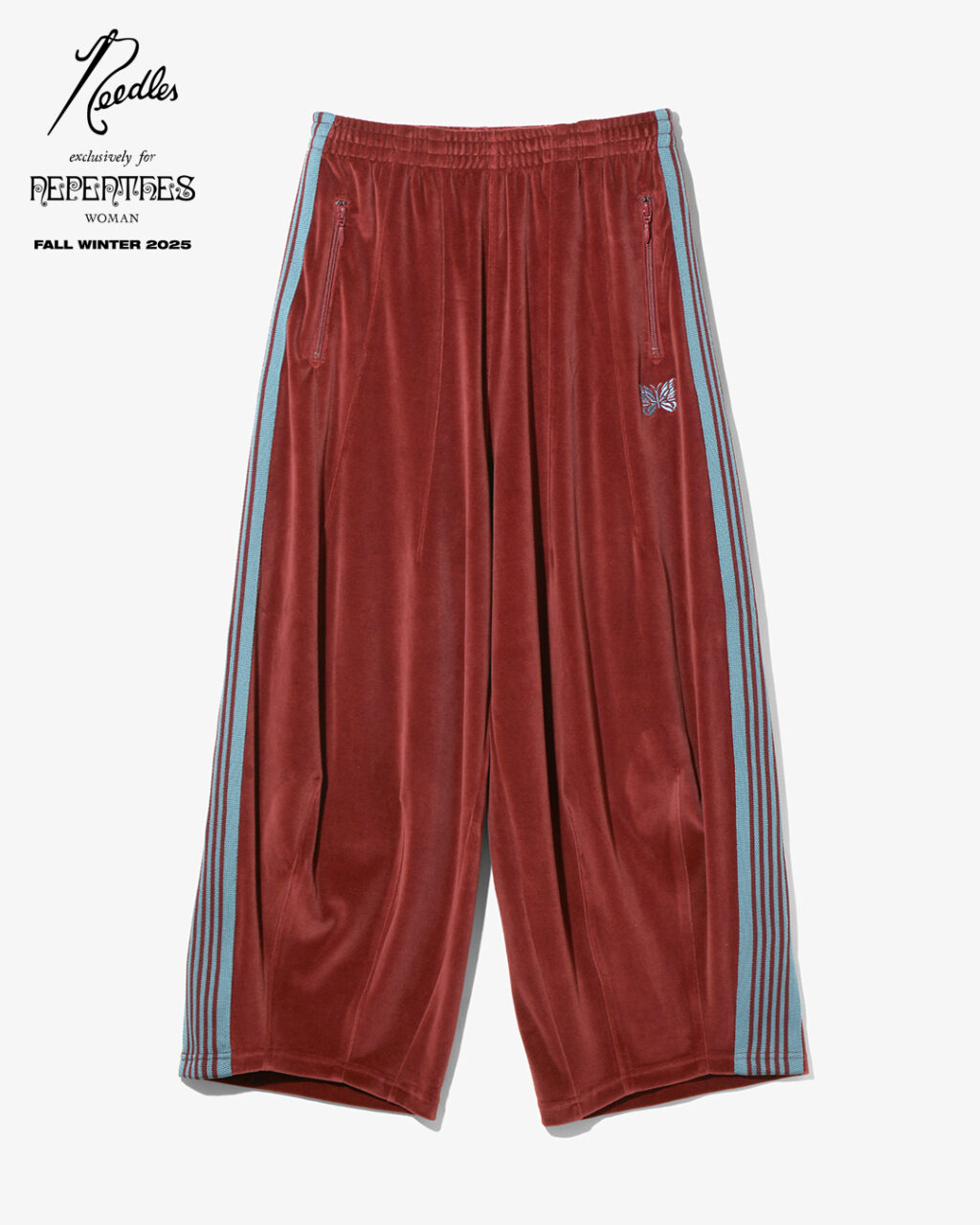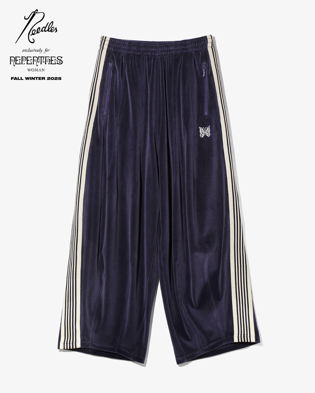 今季は、NEEDLESを象徴するトラックシリーズを、艶やかな光沢と滑らかな質感をもつレオパード柄のベロア素材で製作。